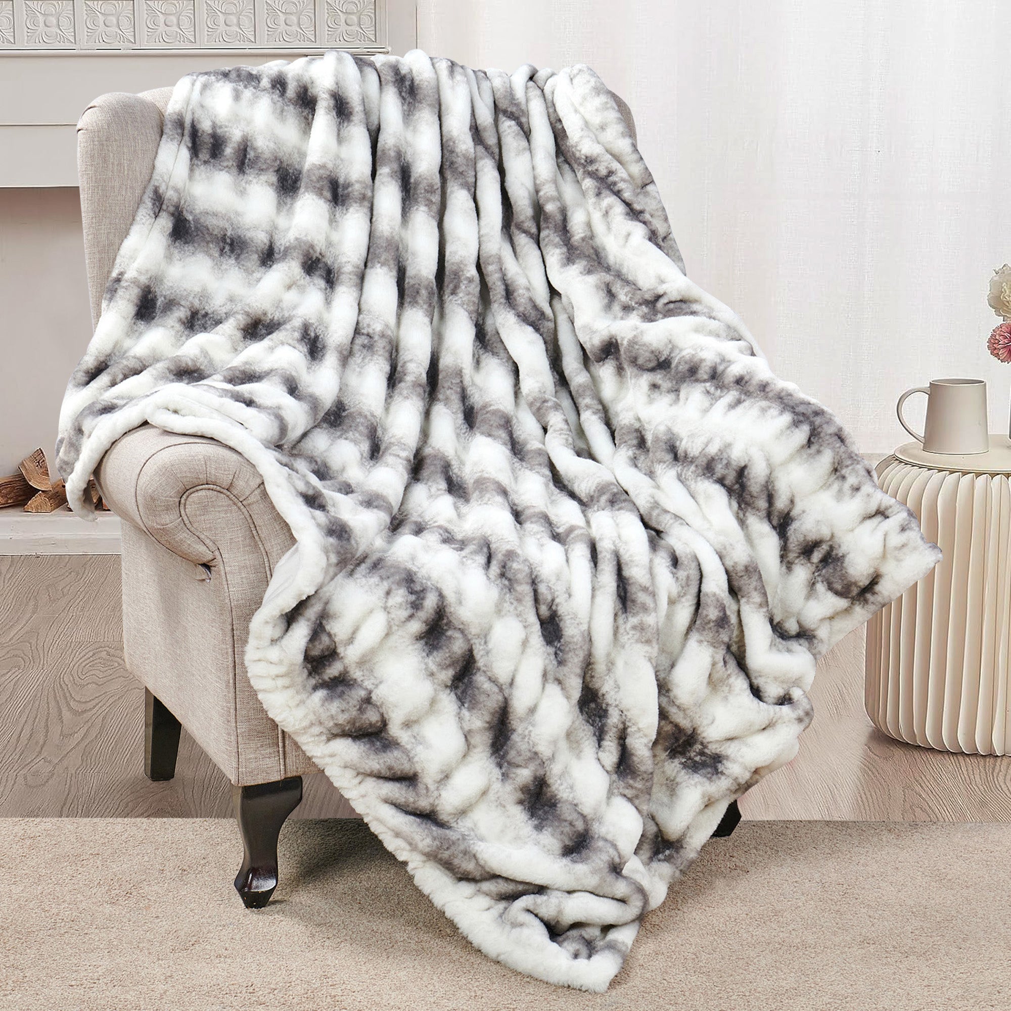 Face side of this elegantly designed throw is made of 100% premium polyester faux fur, back side material is micromink, bringing you more breathable and cozy feeling than regular cotton blanket to keep your body relax and warm enough in fall and winter.