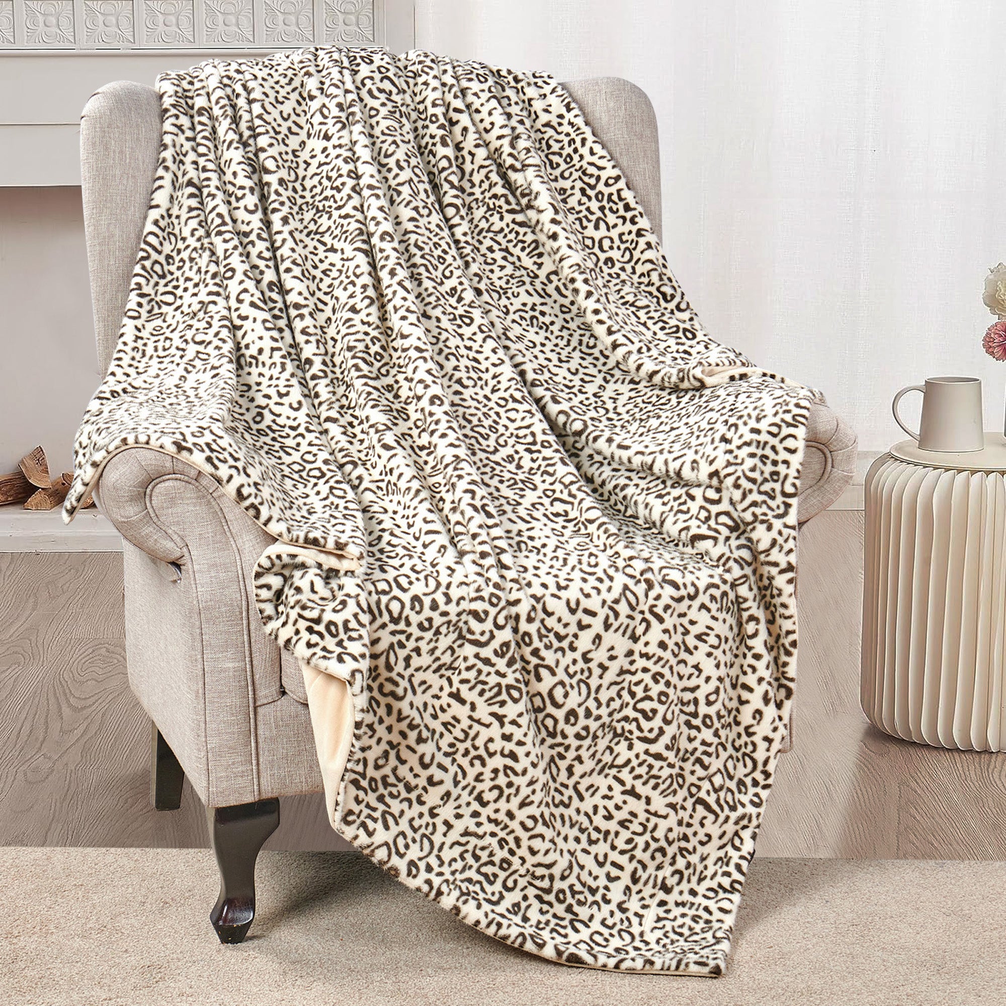 This high grade faux fur throw blanket is designed for luxurious feel and elegance. Chic, elegant and trendy snow leopard design makes the plush blanket easily coordinate with your home decor. They will upgrade your room and infuse personality to your home. Simply drape it over a sofa, couch, chair or across the end of beds to add extra texture to your living room or bed room.