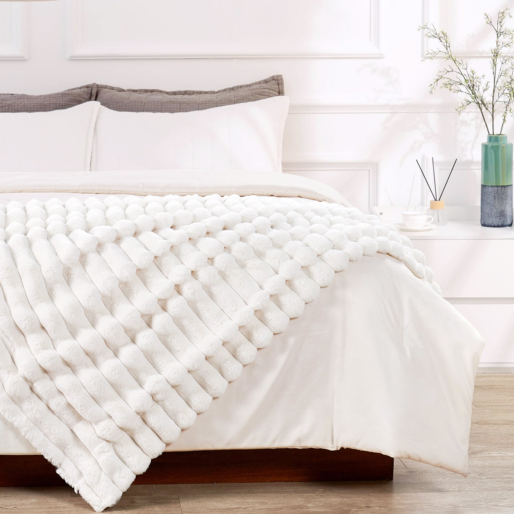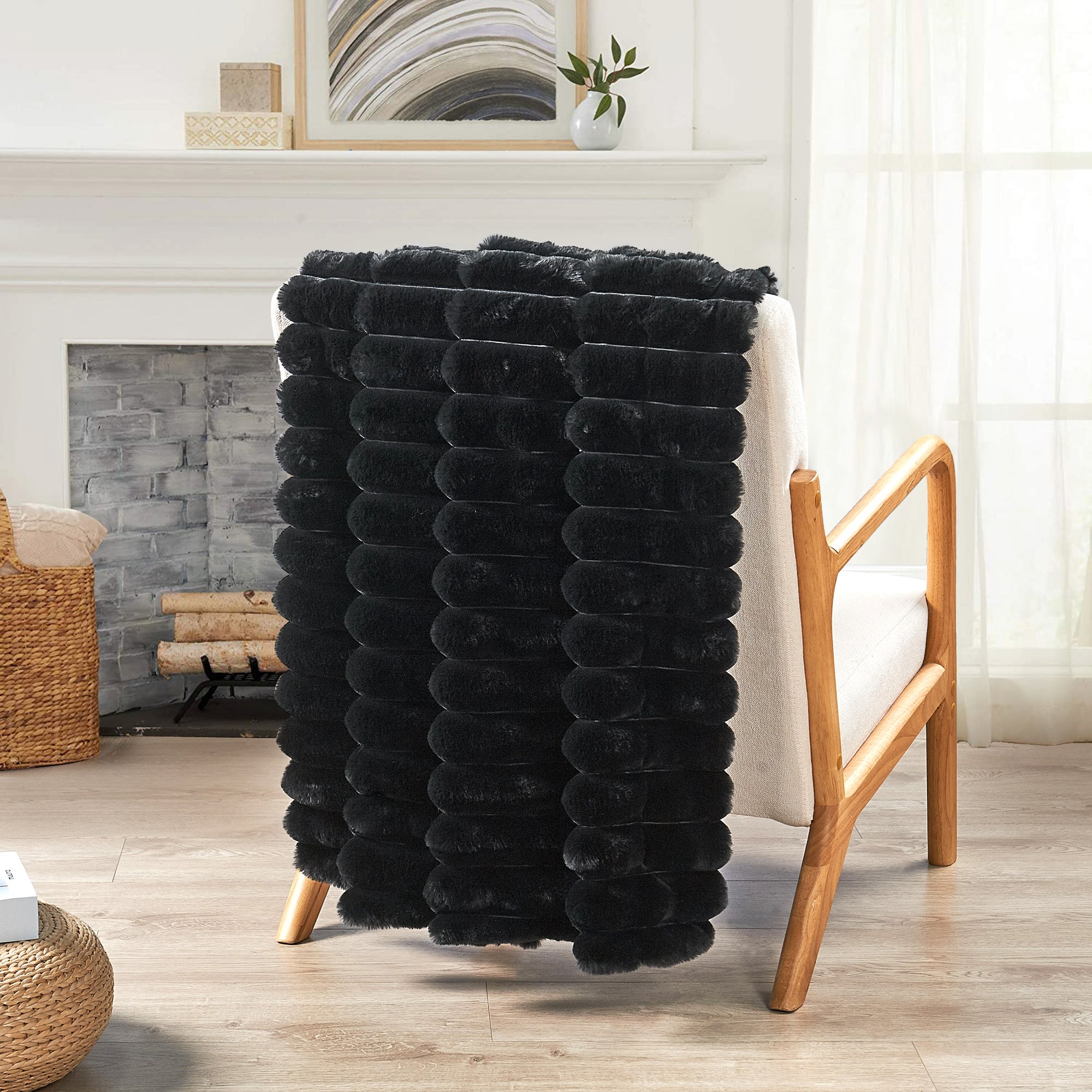 - Elegant Design: This thick, plush blanket features a unique ribbed design with evenly spaced folds, giving it a modern, luxurious look. Its soft texture and cozy appearance make it perfect for stylish warmth.
