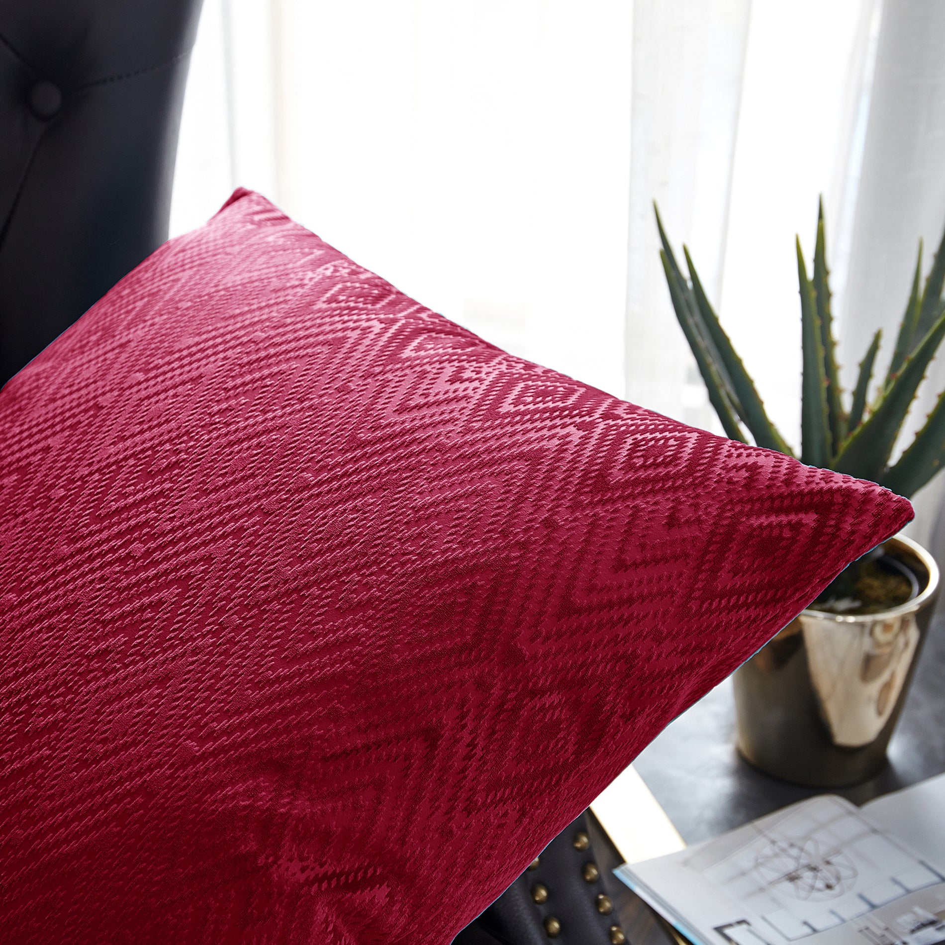 Add a pop of color and texture to your home decor with this Tonopah Ikat Velvet Pillow Cover Set. Featuring a subtle ikat pattern, these pillow covers are crafted from high-quality polyester, available in multiple fashionable colors to match your style. With a hidden zipper closure, these covers are easy to remove and machine washable for hassle-free maintenance.