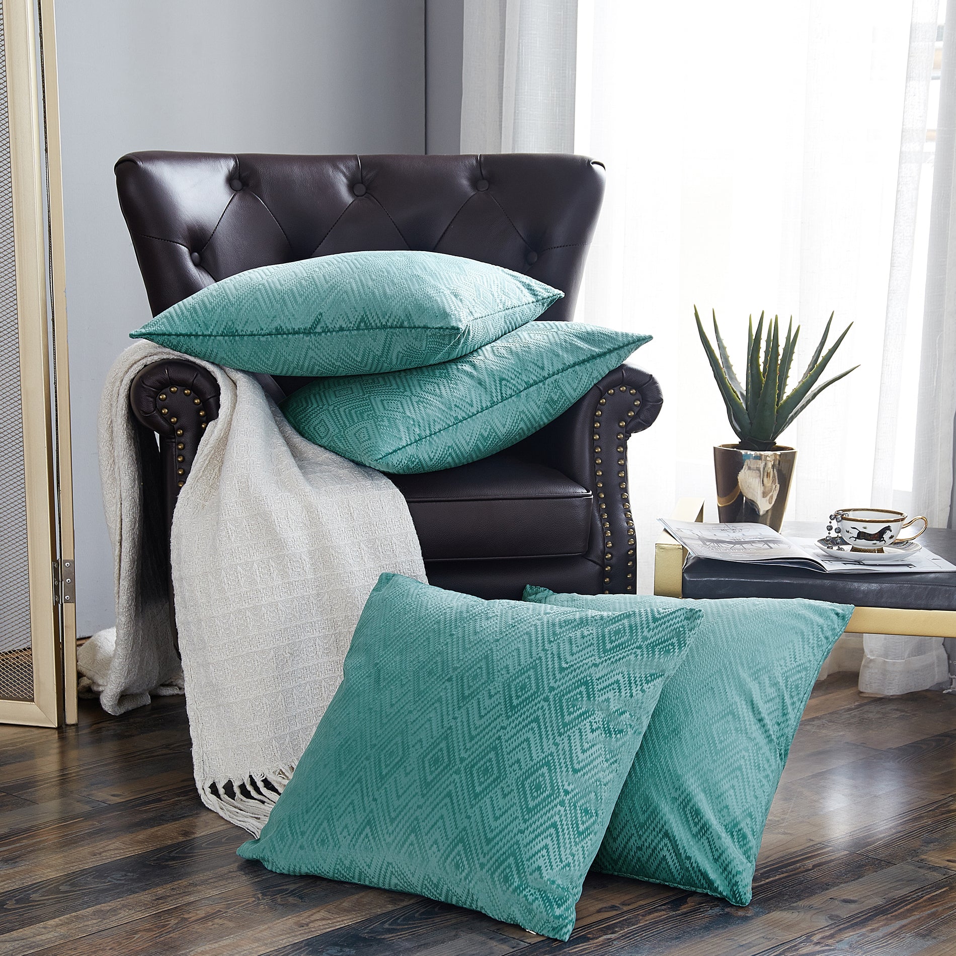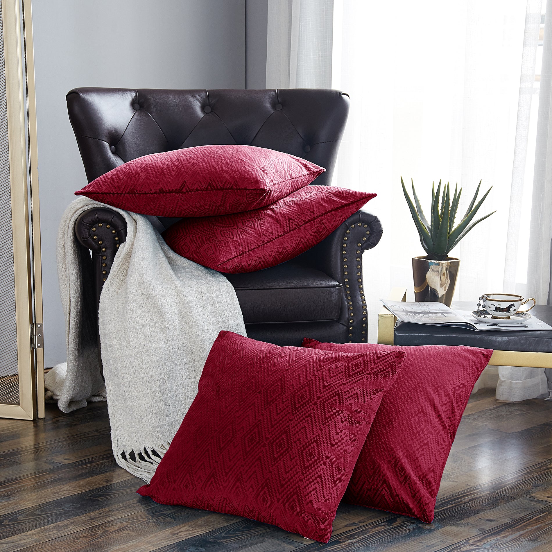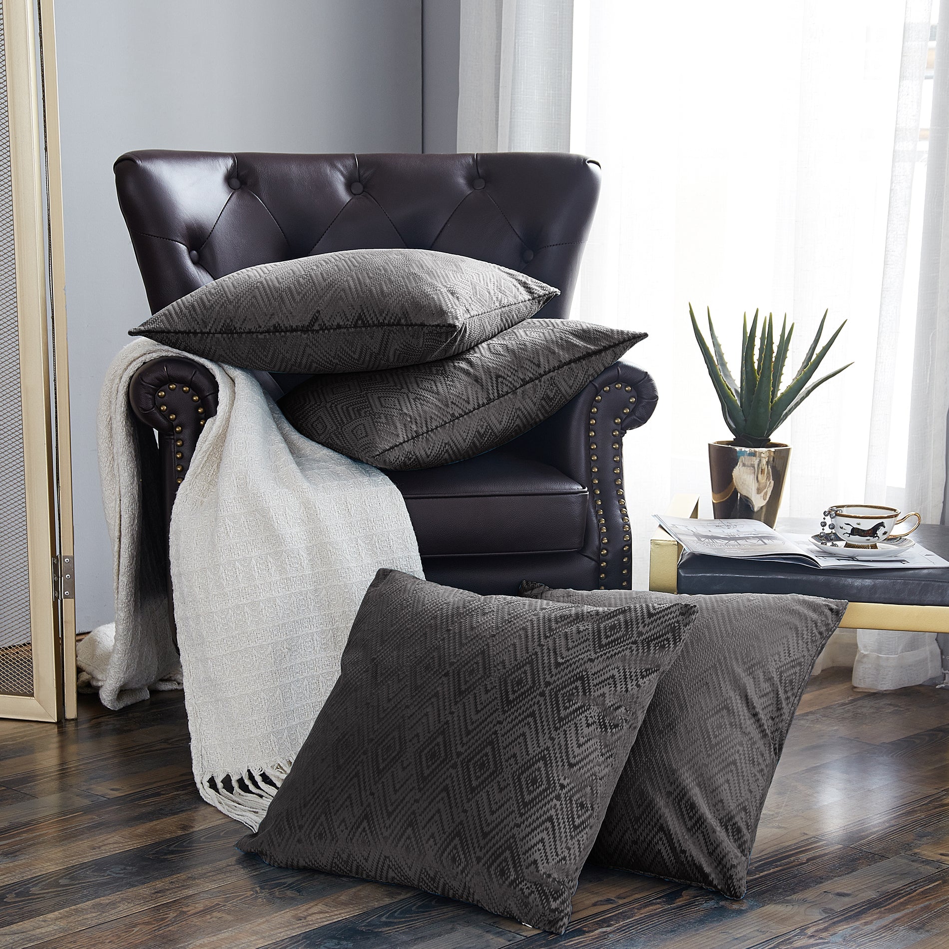 Ikat Velvet 4 Piece Decorative Pillow Covers (20" x 20")