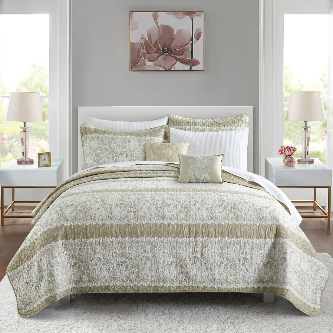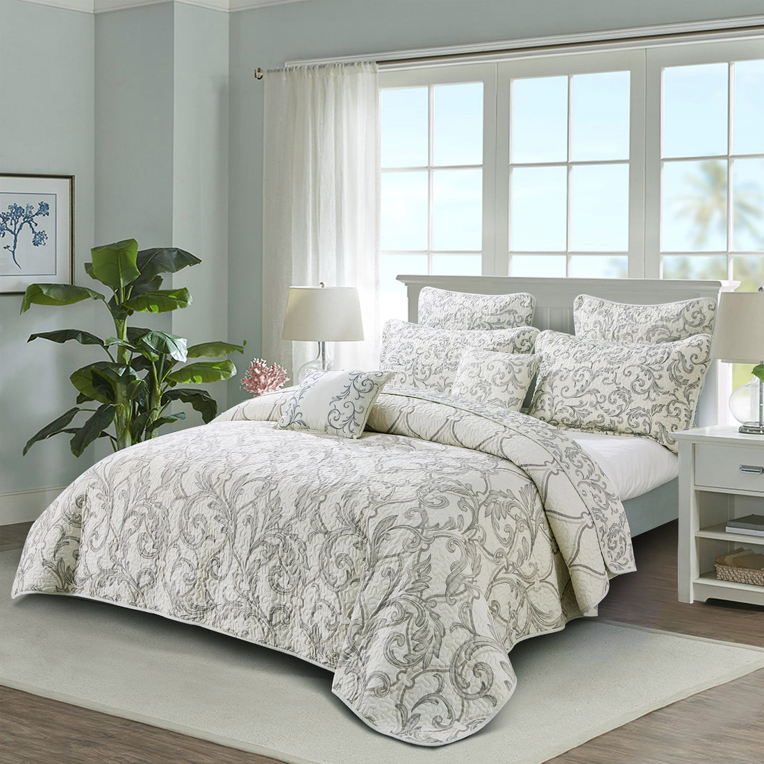5 Piece Kingston Damask Printed Microfiber Quilt Bedspread Set5 Piece Kingston Damask Printed Microfiber Quilt Bedspread Set- Regular price