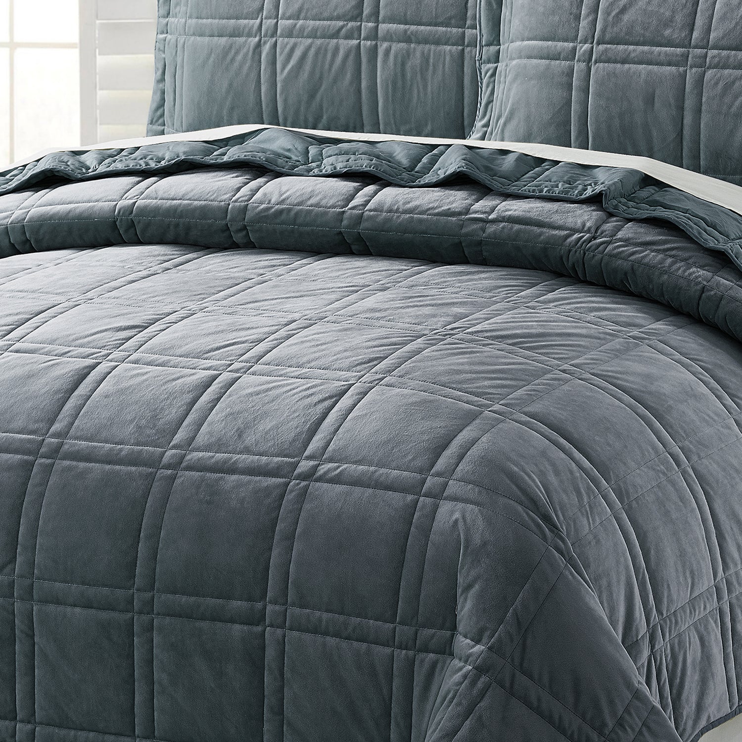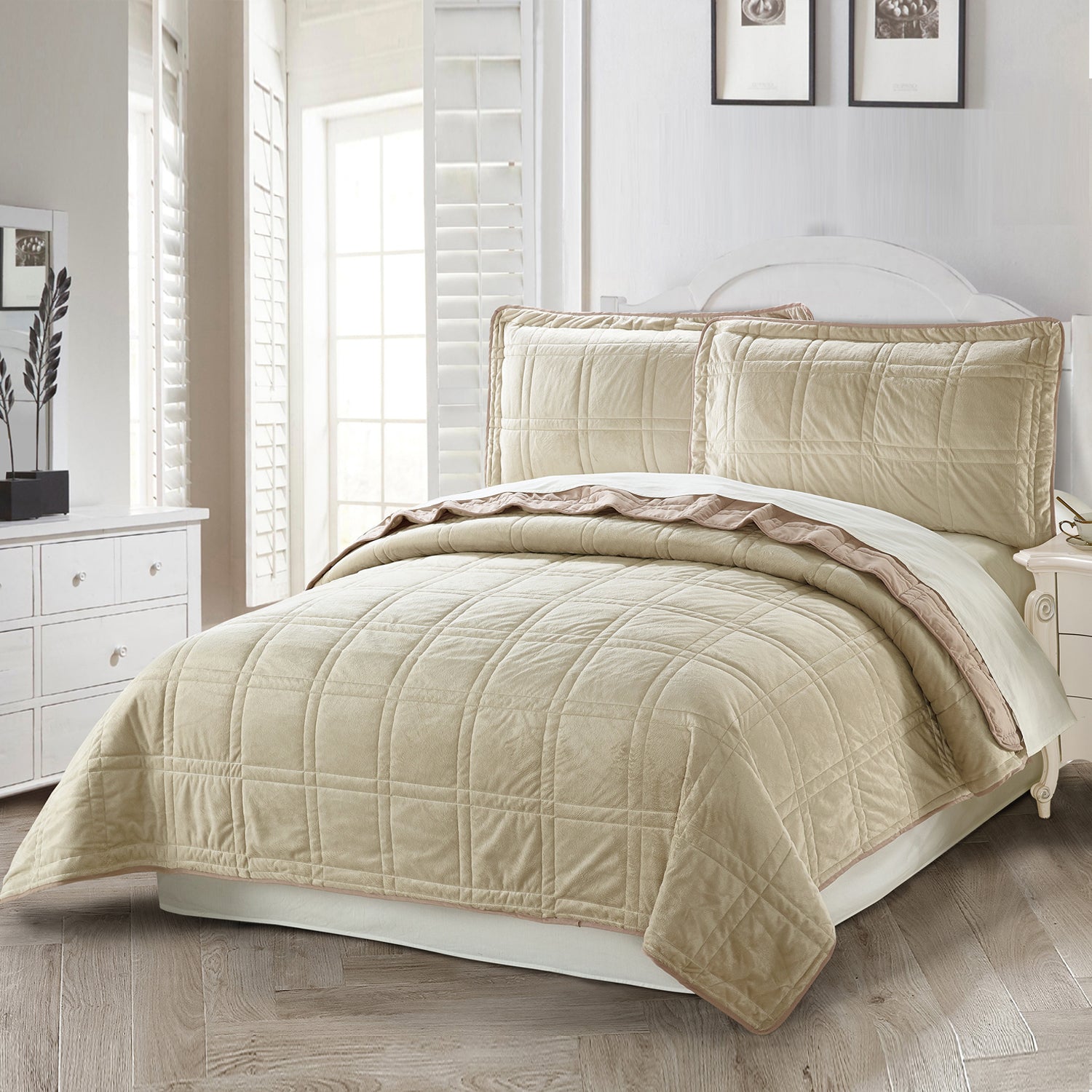 3 Piece Box Quilted Micromink Bedspread Set (King 102"x90“)