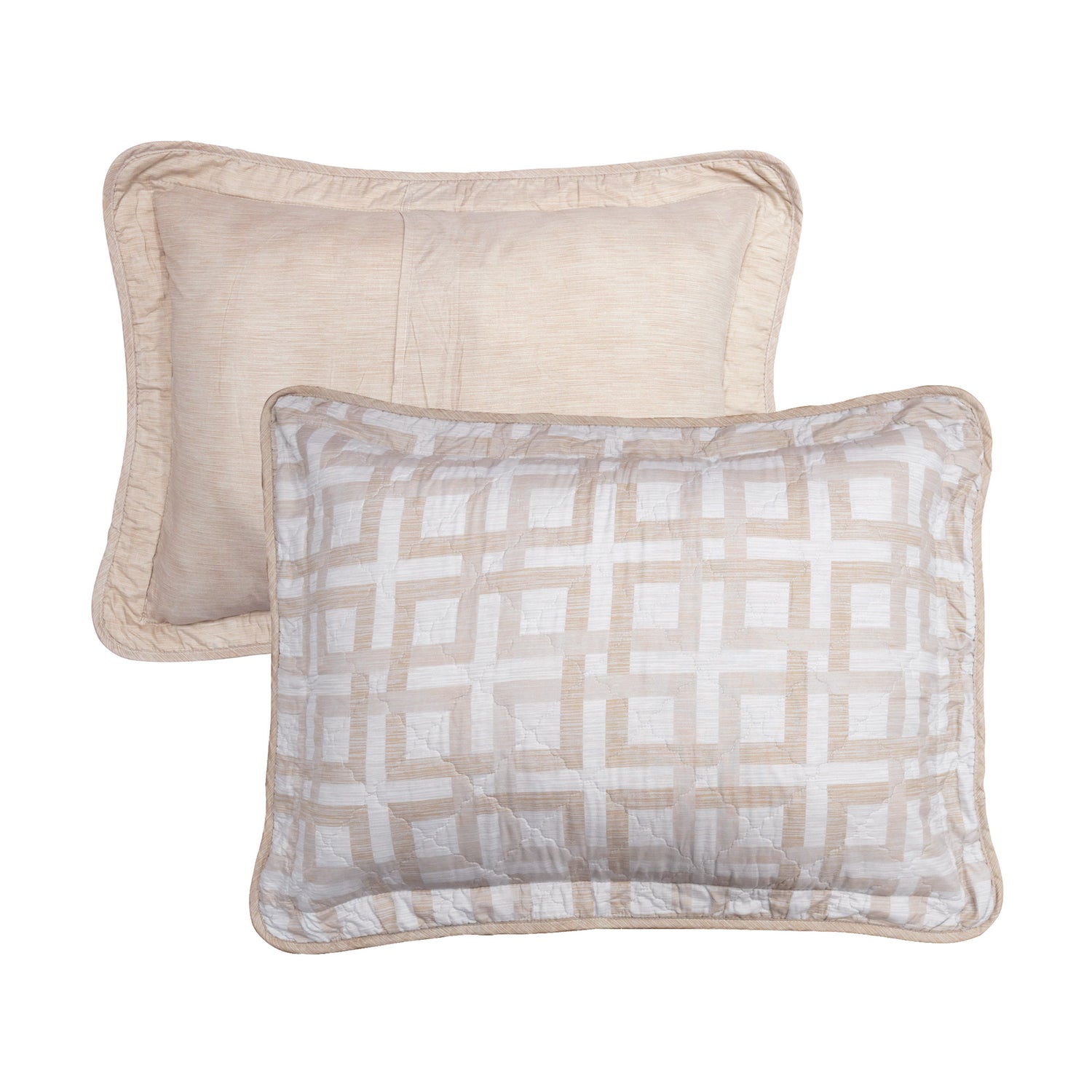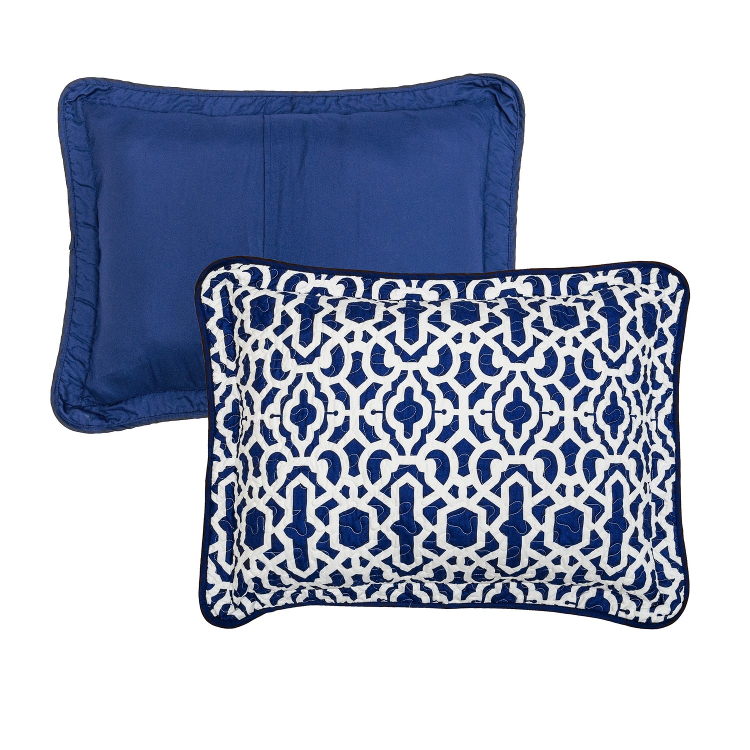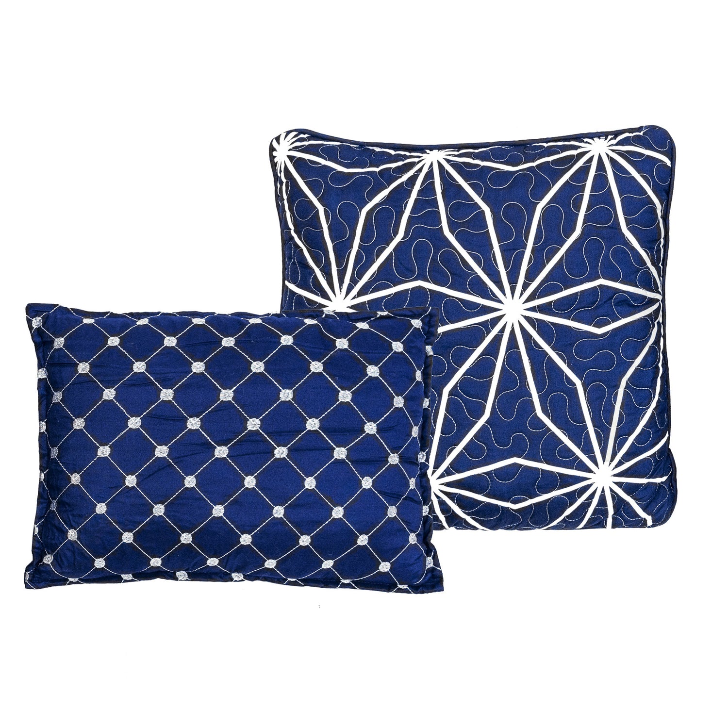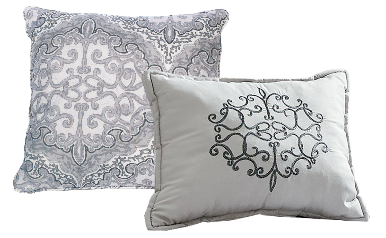 - QUILT SET - PLEASE CHECK DIMENSIONS FOR SPECIFIC SIZE. Oversize includes: Oversized King Coverlet: 122" x 106"; (2) King Shams - 20" x 36"; (2) Euro Shams - 26" x 26"; (1) Medium Accent Pillow: 16 x 16 Inches ; (1) Small Accent Pillow: 12" x 16". King size includes: King Coverlet - 102 x 90 Inches - (2) Shams - 20 x 36 Inches - (2) Euro Shams: 26 x 26 Inches - Medium Accent Pillow: 16 x 16 Inches - Small Accent Pillow: 12 x 16 Inches. Queen size includes: Queen Coverlet - 90 x 90 Inches - (2) Shams - 20 x 26 Inches - (2) Euro Shams: 26 x 26 Inches - Medium Accent Pillow: 16 x 16 Inches - Small Accent Pillow: 12 x 16 Inches.
