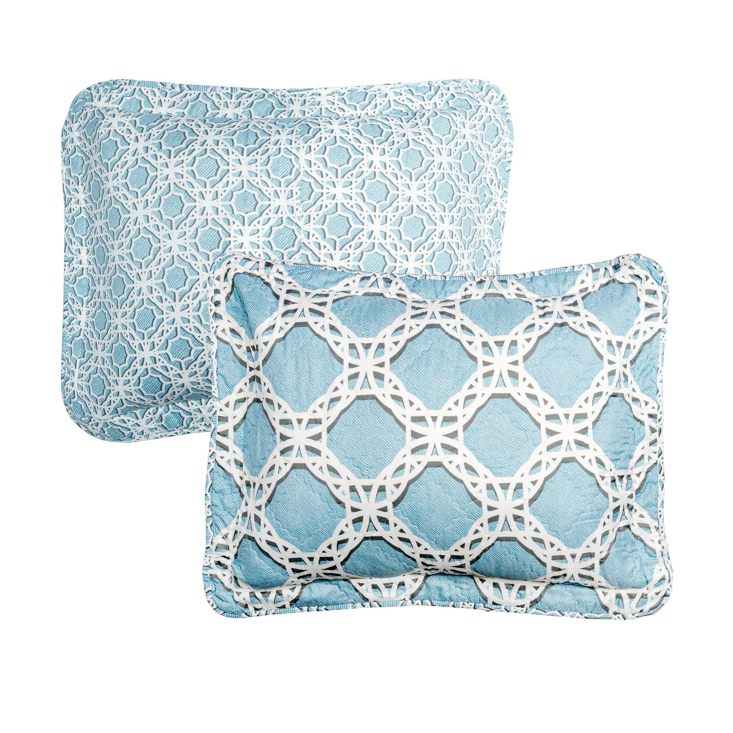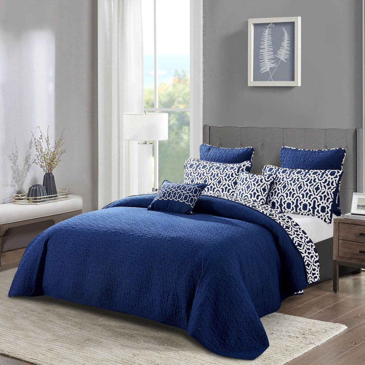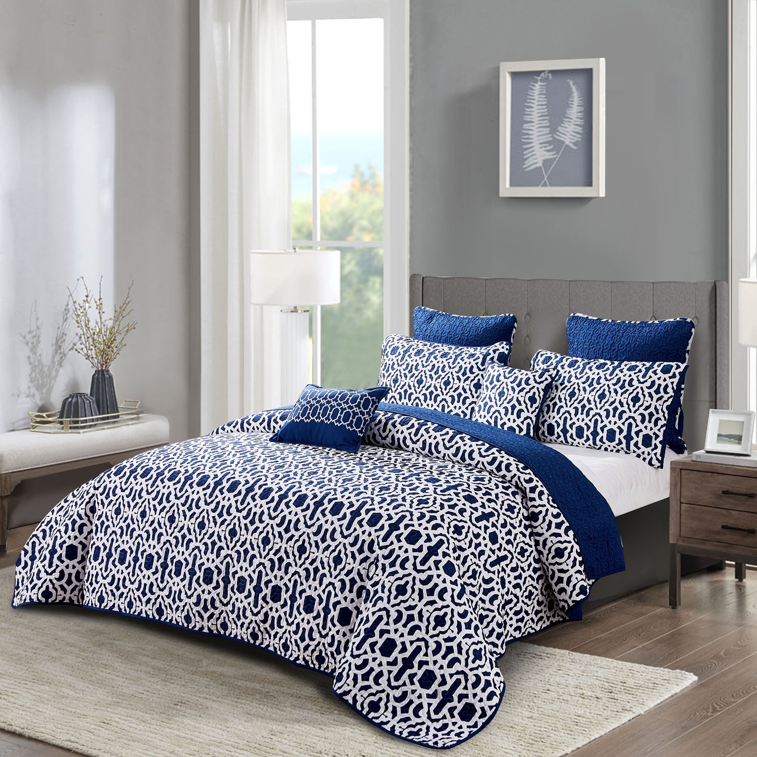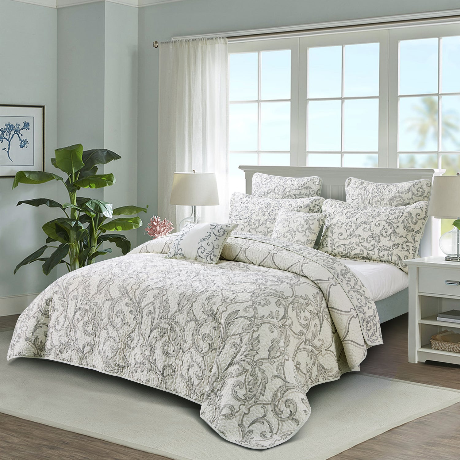 - QUILT SET - PLEASE CHECK DIMENSIONS FOR SPECIFIC SIZE. Oversize includes: Oversized King Coverlet: 122" x 106"; (2) King Shams - 20" x 36"; (2) Euro Shams - 26" x 26"; (1) Medium Accent Pillow: 16 x 16 Inches ; (1) Small Accent Pillow: 12" x 16". King size includes: King Coverlet - 102 x 90 Inches - (2) Shams - 20 x 36 Inches - (2) Euro Shams: 26 x 26 Inches - Medium Accent Pillow: 16 x 16 Inches - Small Accent Pillow: 12 x 16 Inches. Queen size includes: Queen Coverlet - 90 x 90 Inches - (2) Shams - 20 x 26 Inches - (2) Euro Shams: 26 x 26 Inches - Medium Accent Pillow: 16 x 16 Inches - Small Accent Pillow: 12 x 16 Inches.