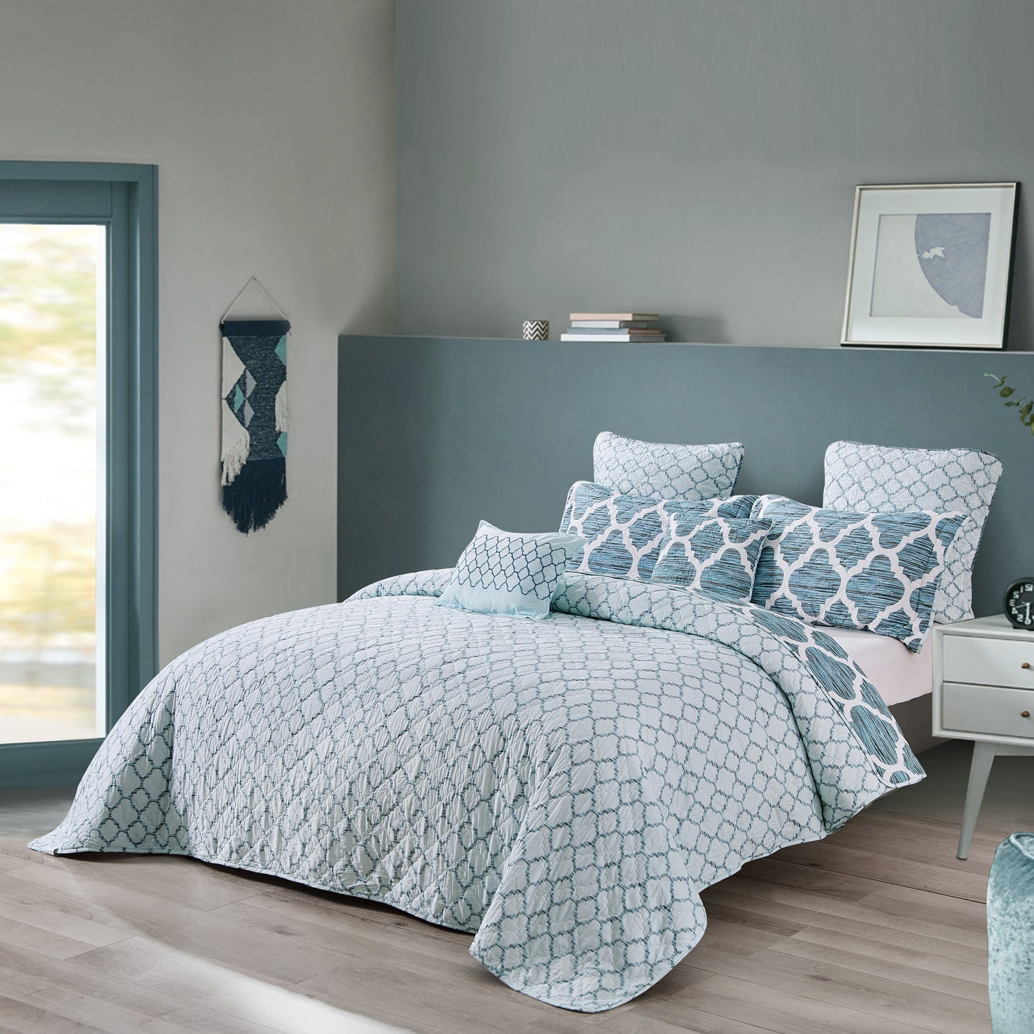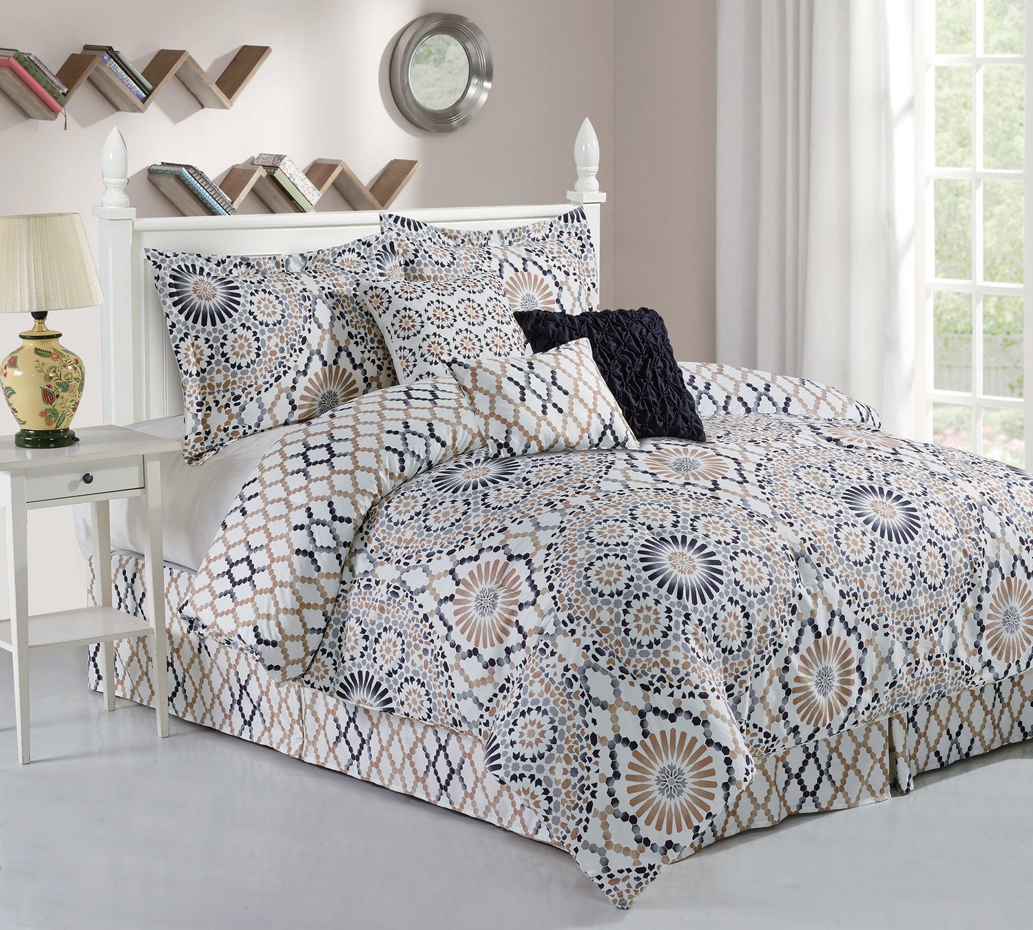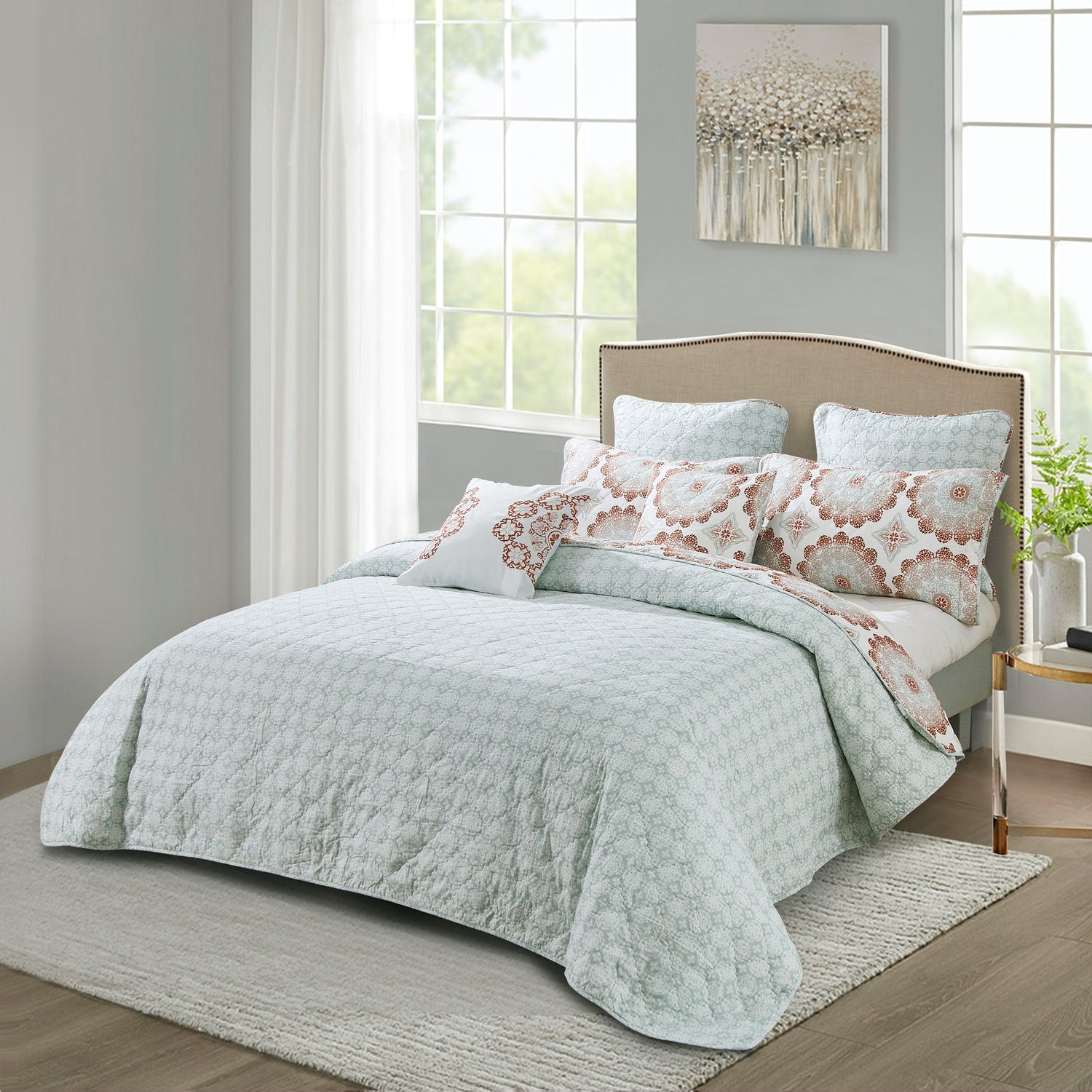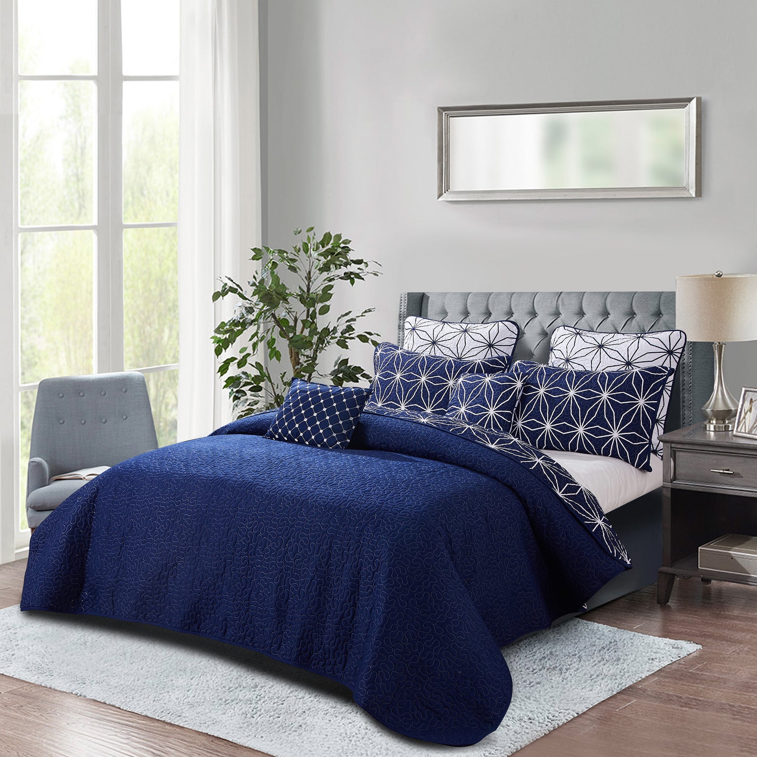 - QUILT SET - PLEASE CHECK DIMENSIONS FOR SPECIFIC SIZE. Oversize includes: Oversized King Coverlet: 122" x 106"; (2) King Shams - 20" x 36"; (2) Euro Shams - 26" x 26"; (1) Medium Accent Pillow: 16 x 16 Inches ; (1) Small Accent Pillow: 12" x 16". King size includes: King Coverlet - 102 x 90 Inches - (2) Shams - 20 x 36 Inches - (2) Euro Shams: 26 x 26 Inches - Medium Accent Pillow: 16 x 16 Inches - Small Accent Pillow: 12 x 16 Inches. Queen size includes: Queen Coverlet - 90 x 90 Inches - (2) Shams - 20 x 26 Inches - (2) Euro Shams: 26 x 26 Inches - Medium Accent Pillow: 16 x 16 Inches - Small Accent Pillow: 12 x 16 Inches.