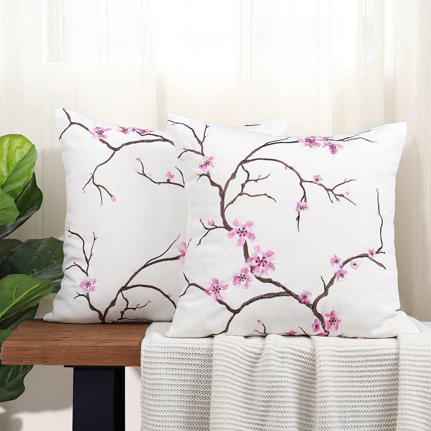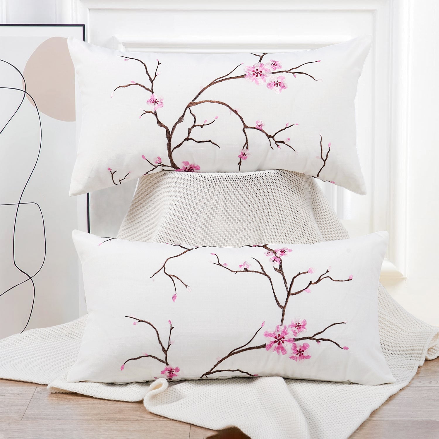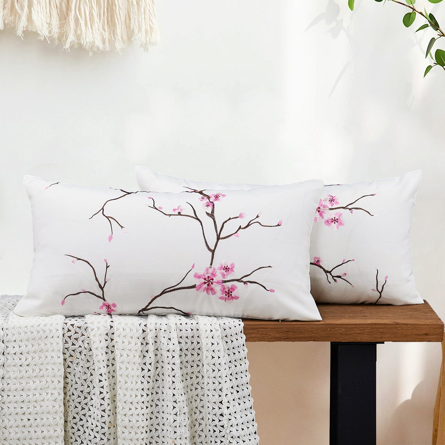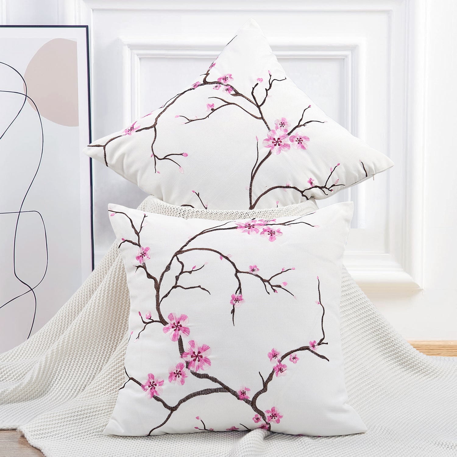 Embroidery Canvas 2 Piece Decorative Pillow Covers - Cherry Blossom