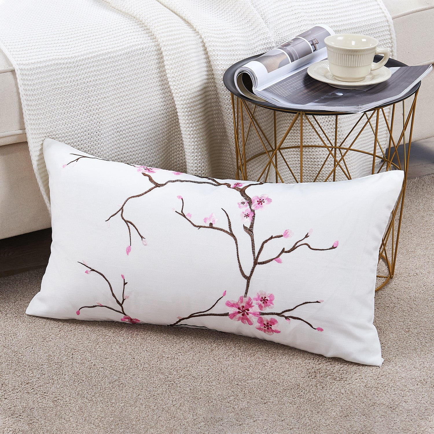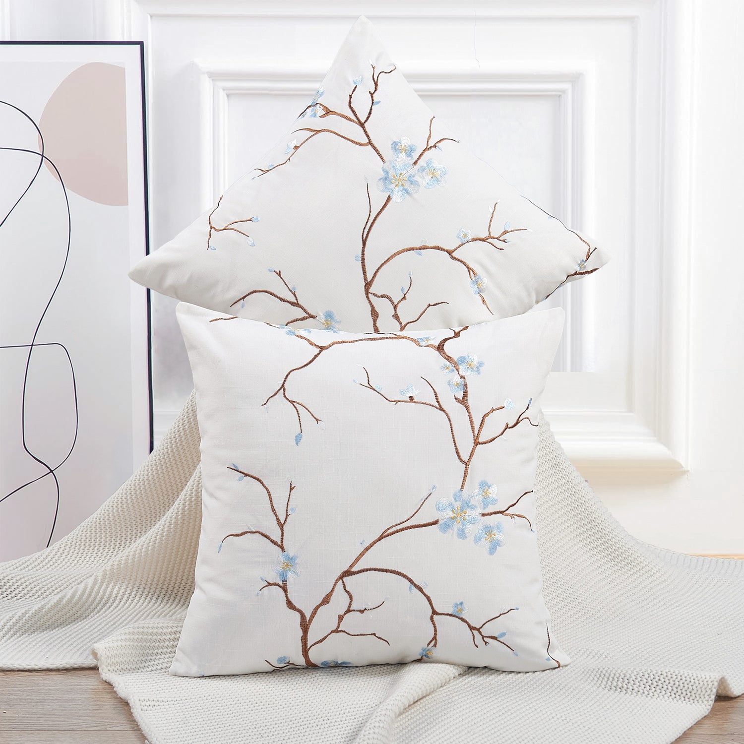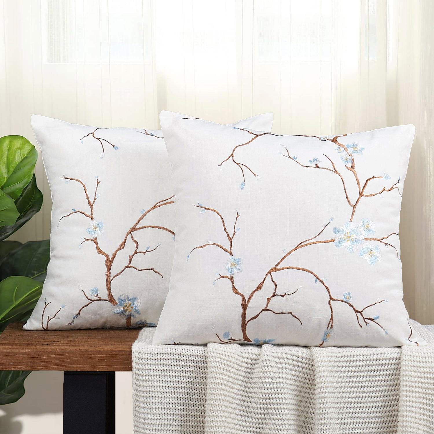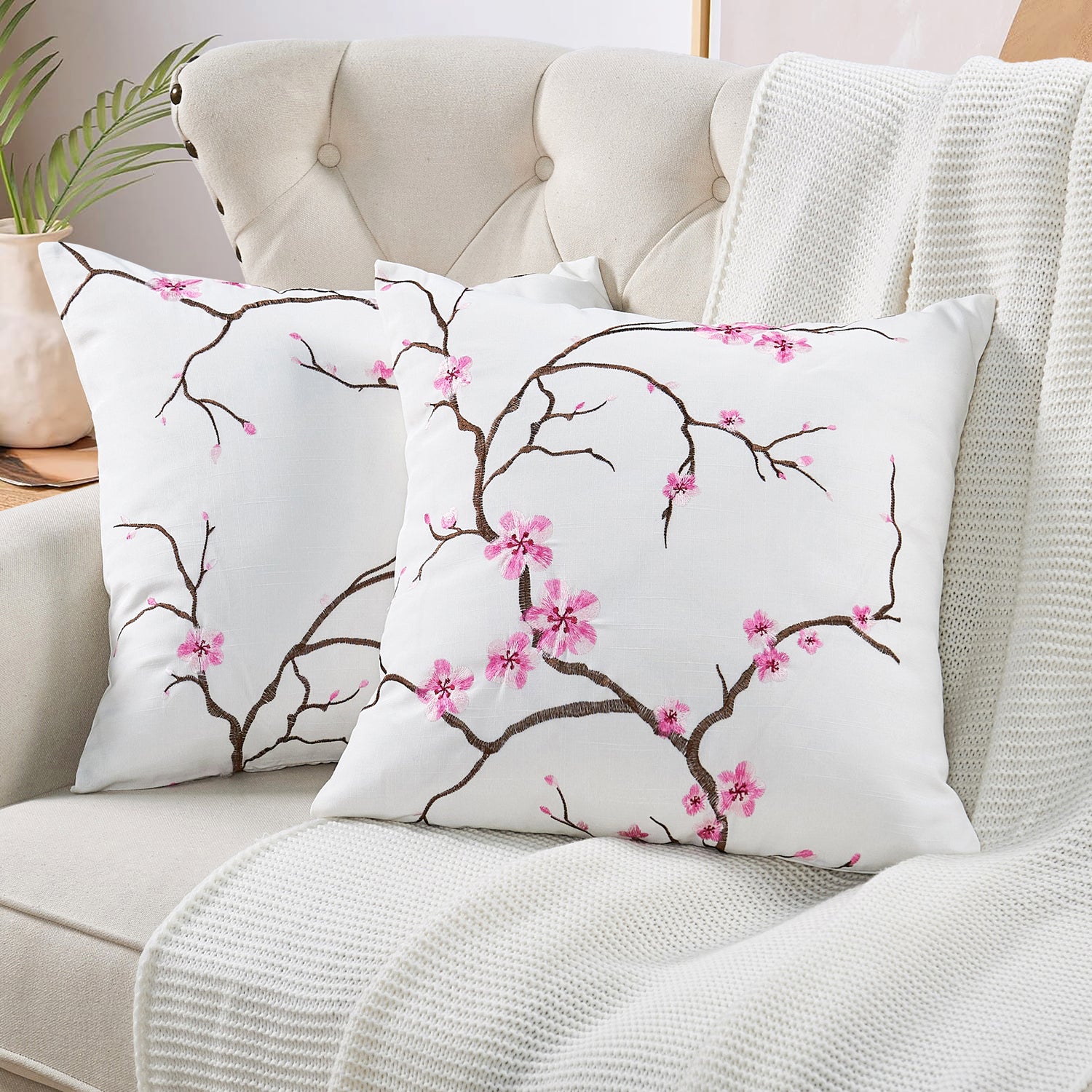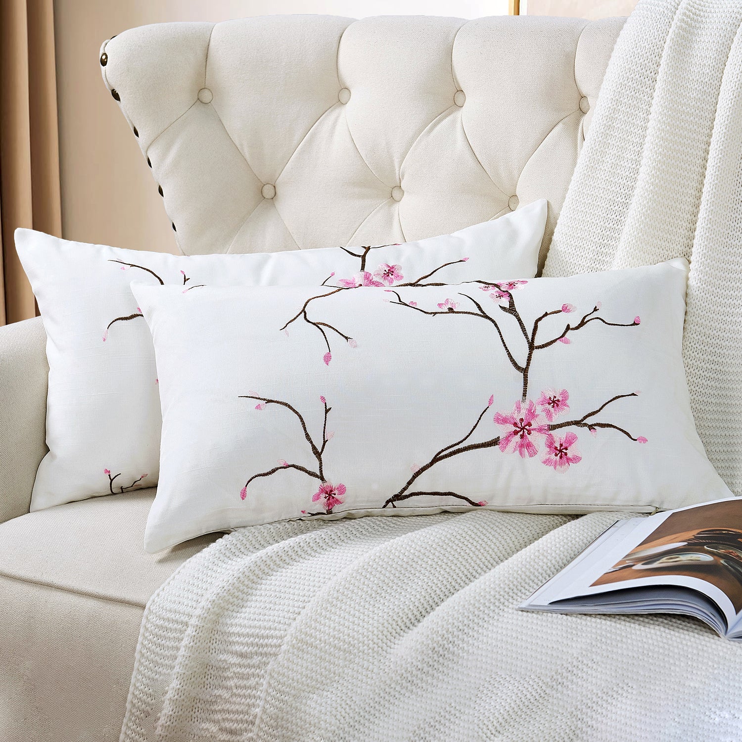 Embroidery Canvas 2 Piece Decorative Pillow Covers - Cherry Blossom