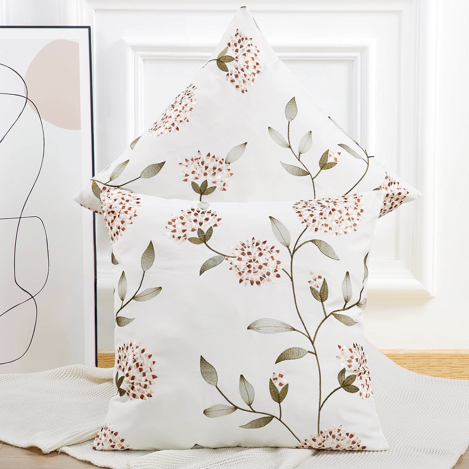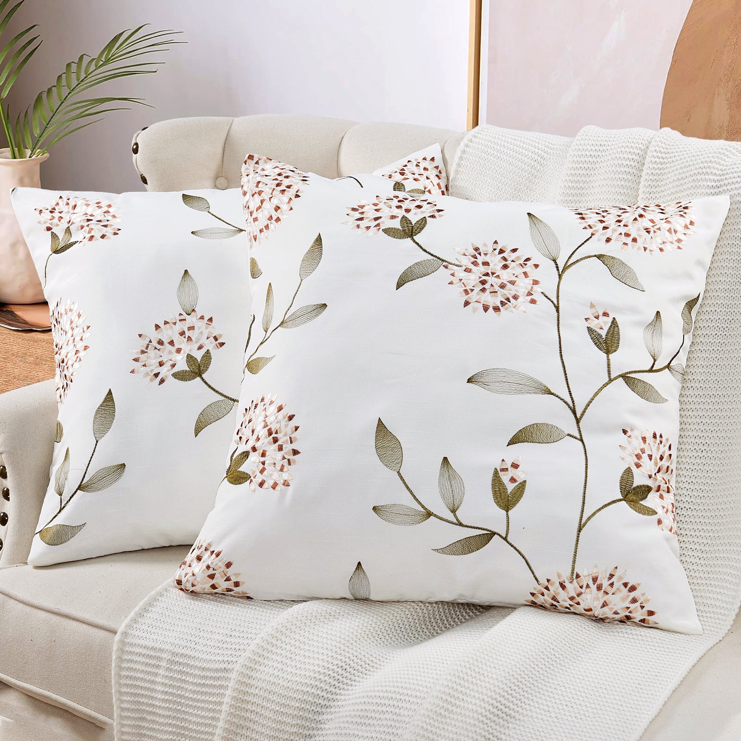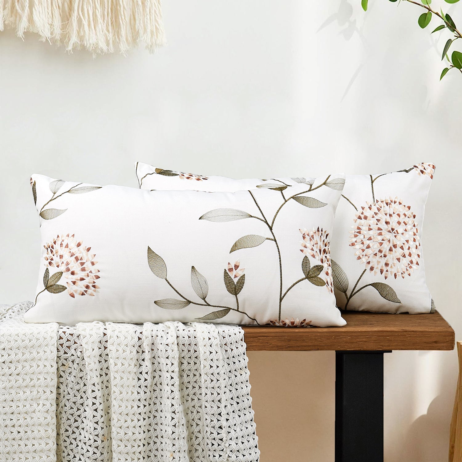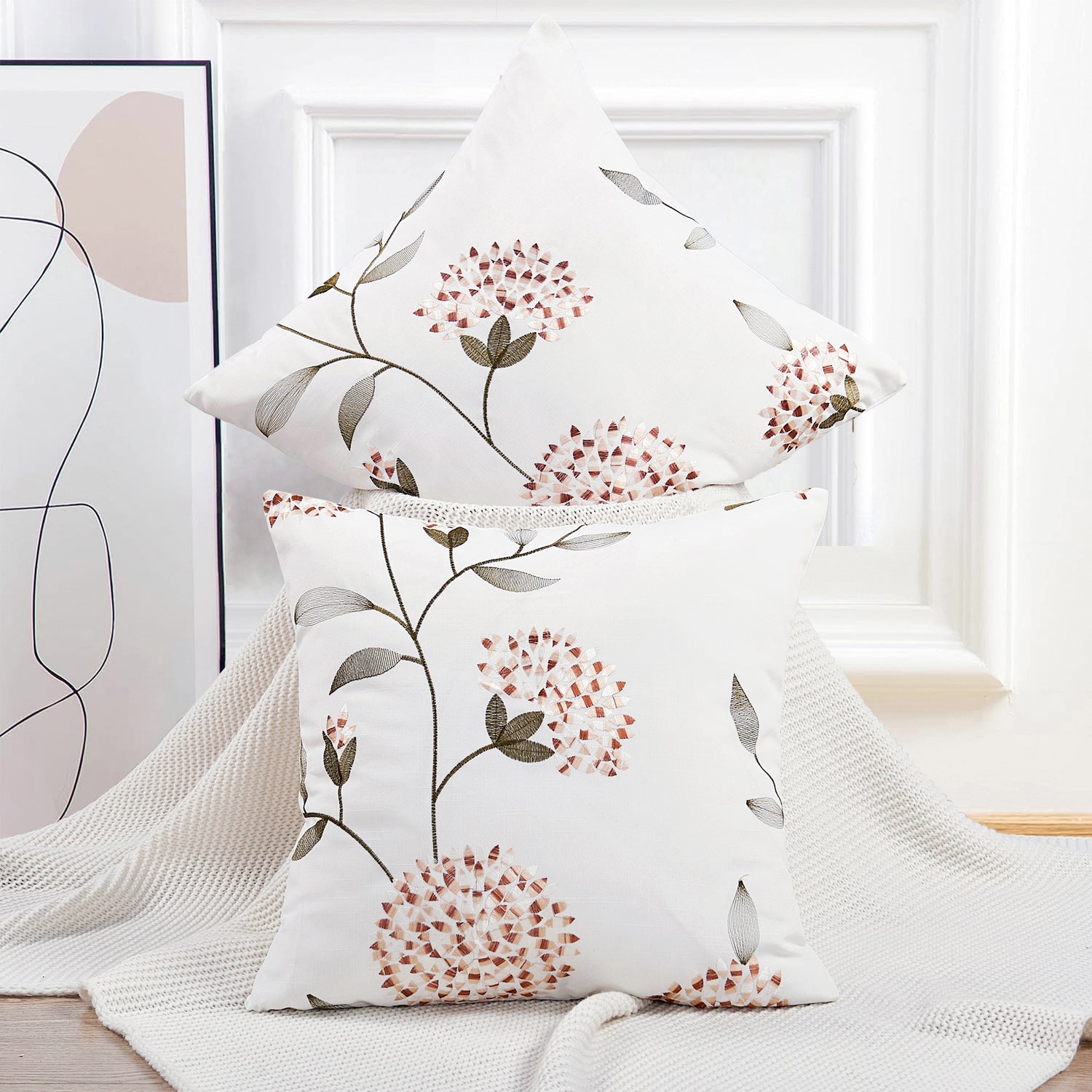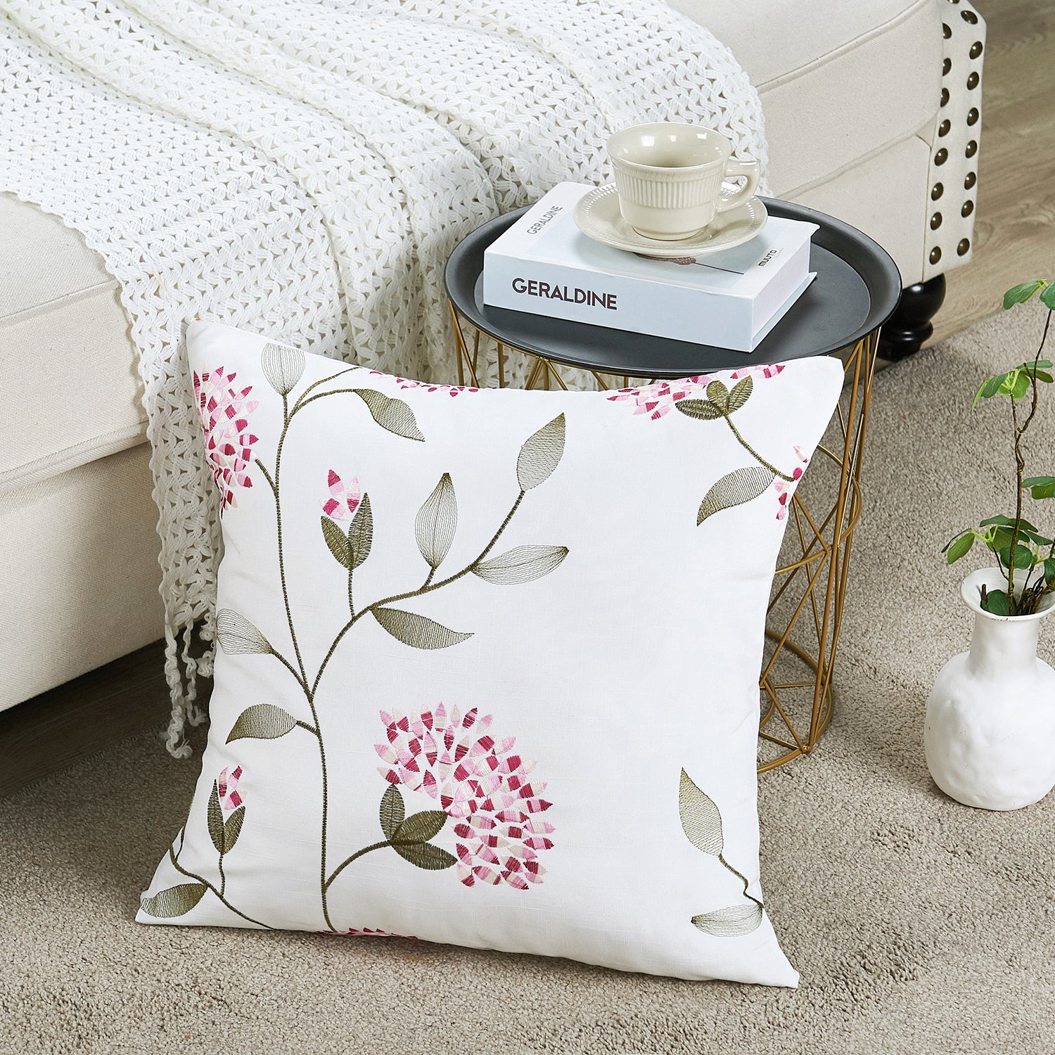 Ensure that your pillows are safe and sound, while offering a stylish pop of cheer to your living space. These delicate, floral canvas pillow shells are an easy, inexpensive way to upgrade your room's decor. Solid cream canvas pillow shells feature sweet, meticulously embroidered floral designs on the front with a plain back.