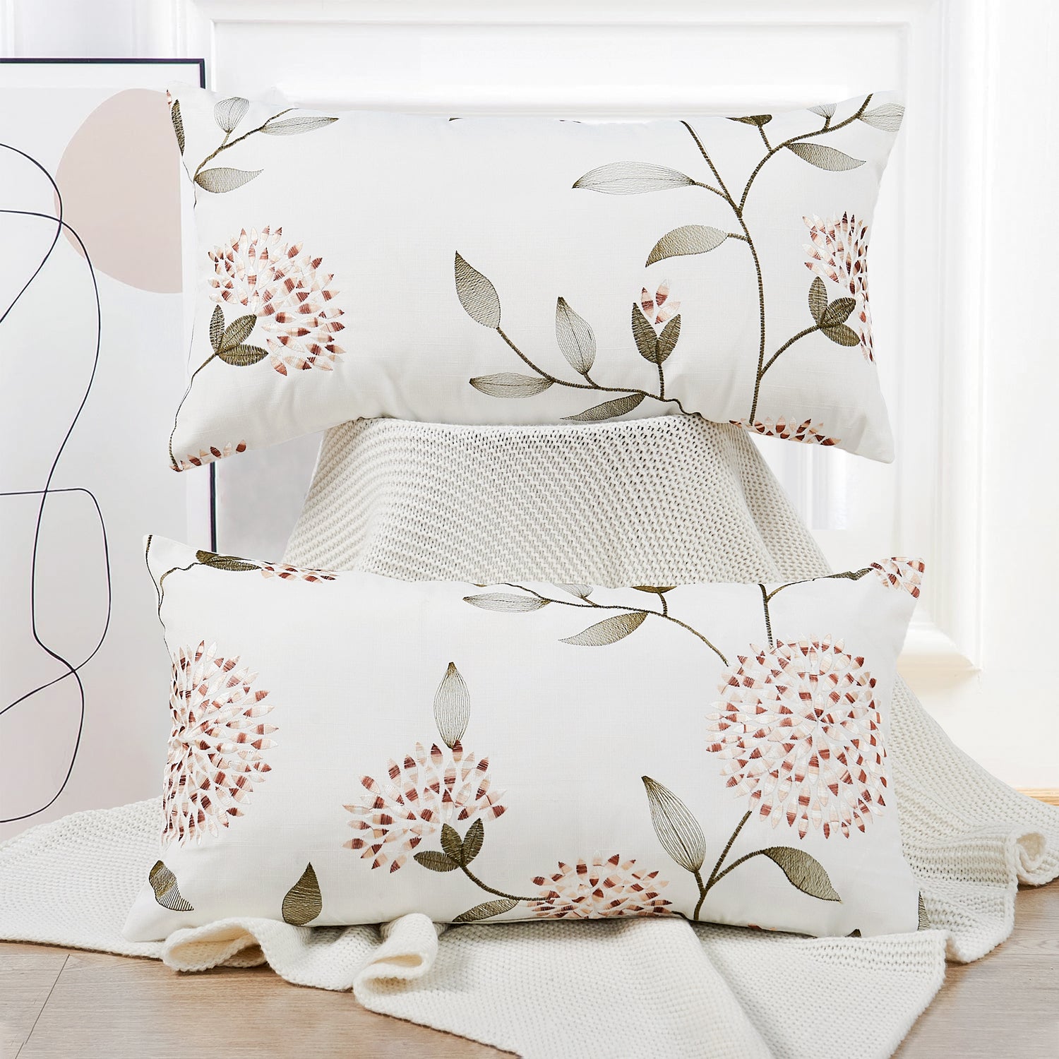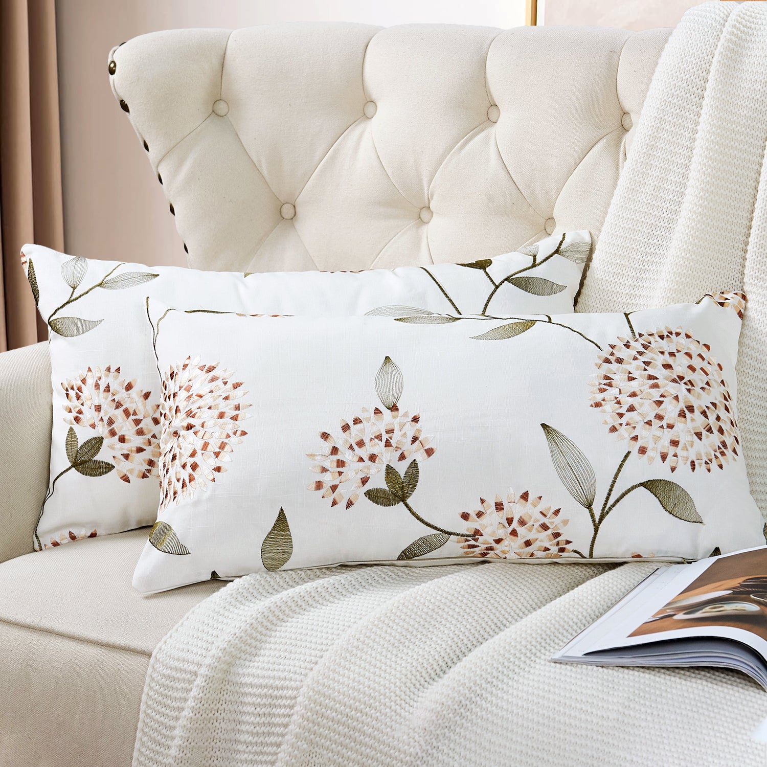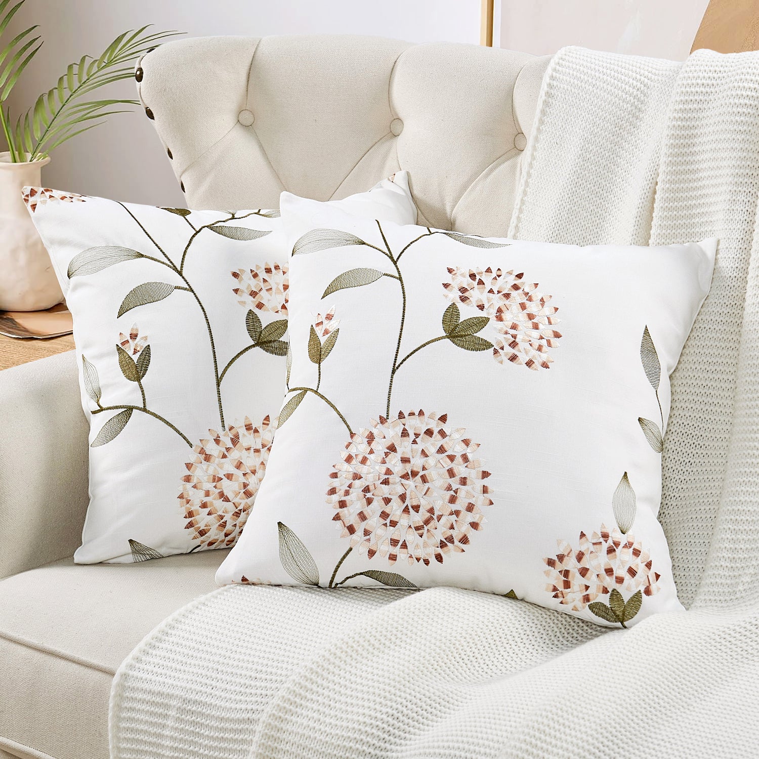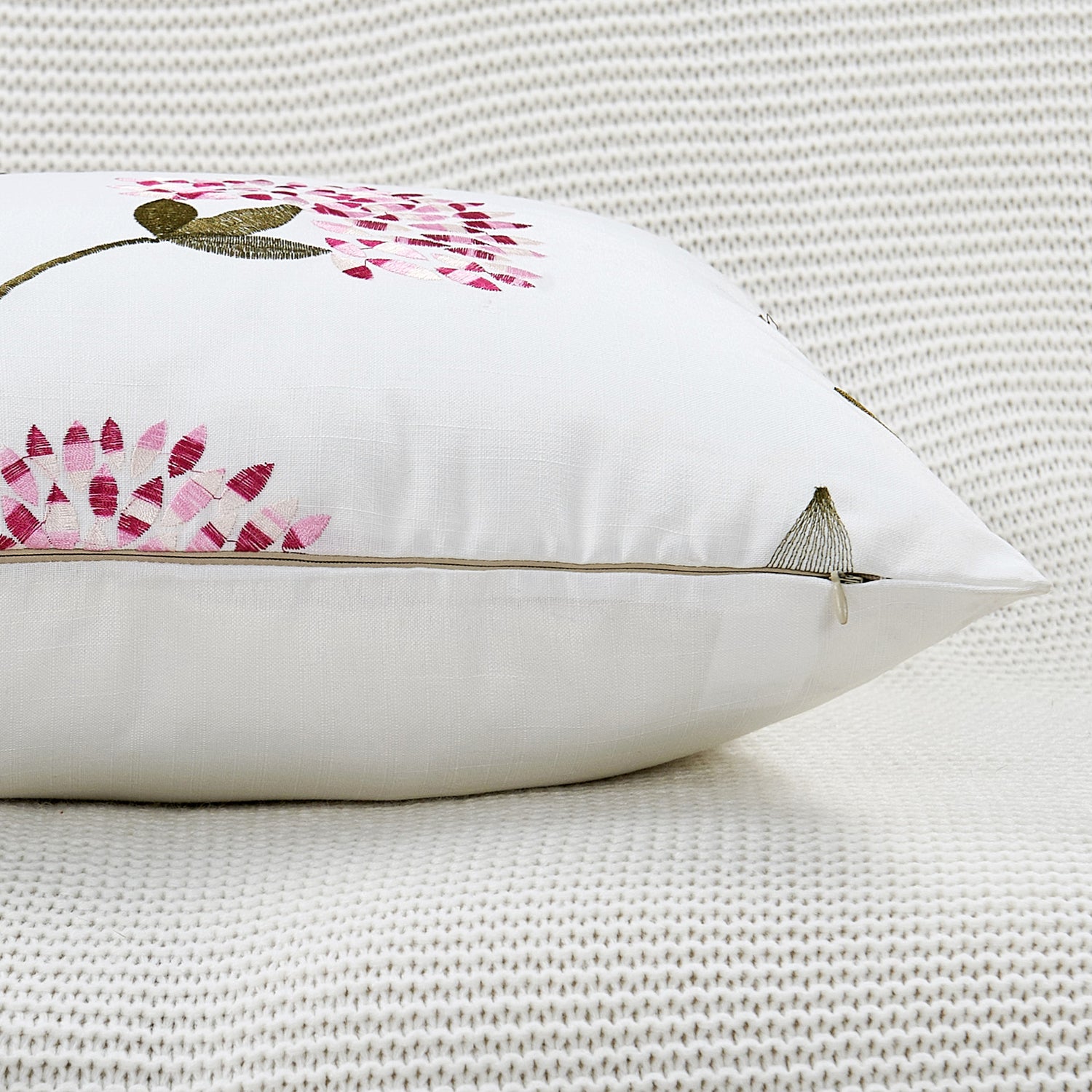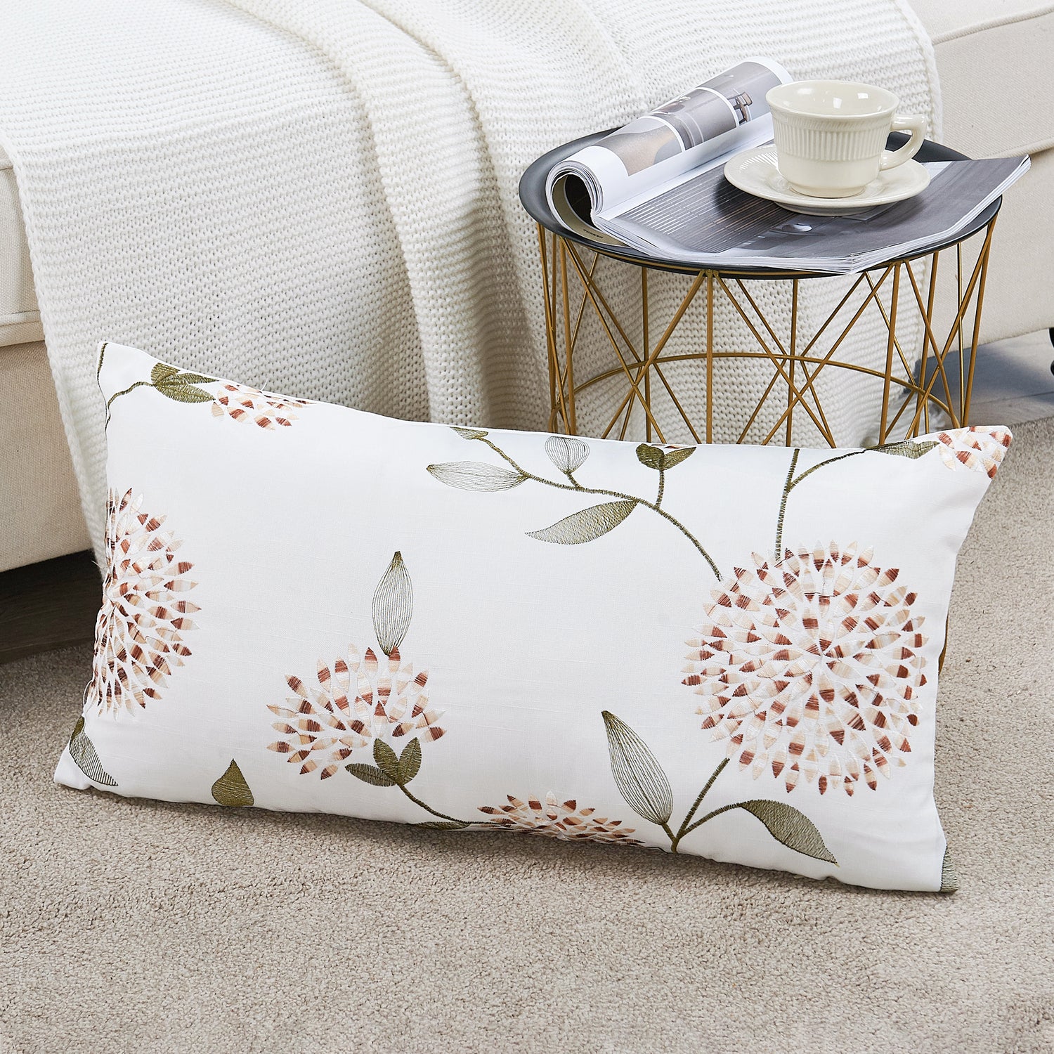 Ensure that your pillows are safe and sound, while offering a stylish pop of cheer to your living space. These delicate, floral canvas pillow shells are an easy, inexpensive way to upgrade your room's decor. Solid cream canvas pillow shells feature sweet, meticulously embroidered floral designs on the front with a plain back.