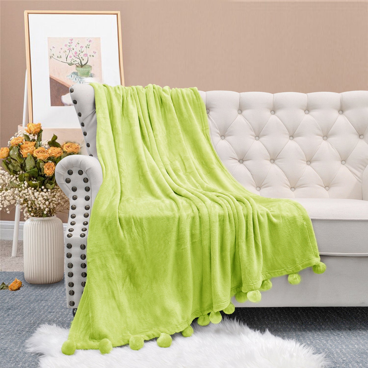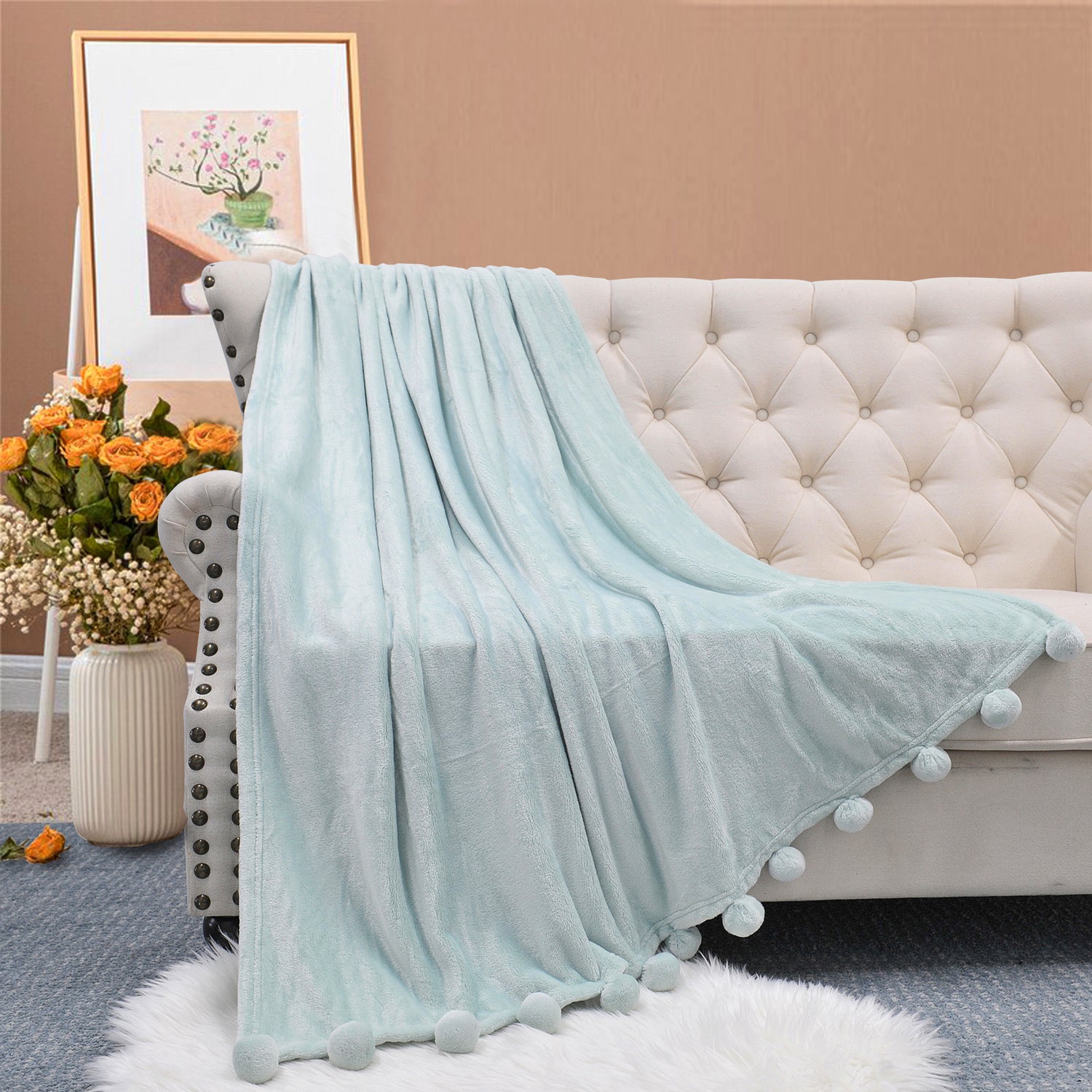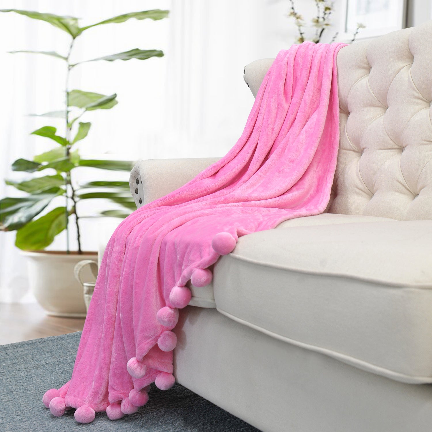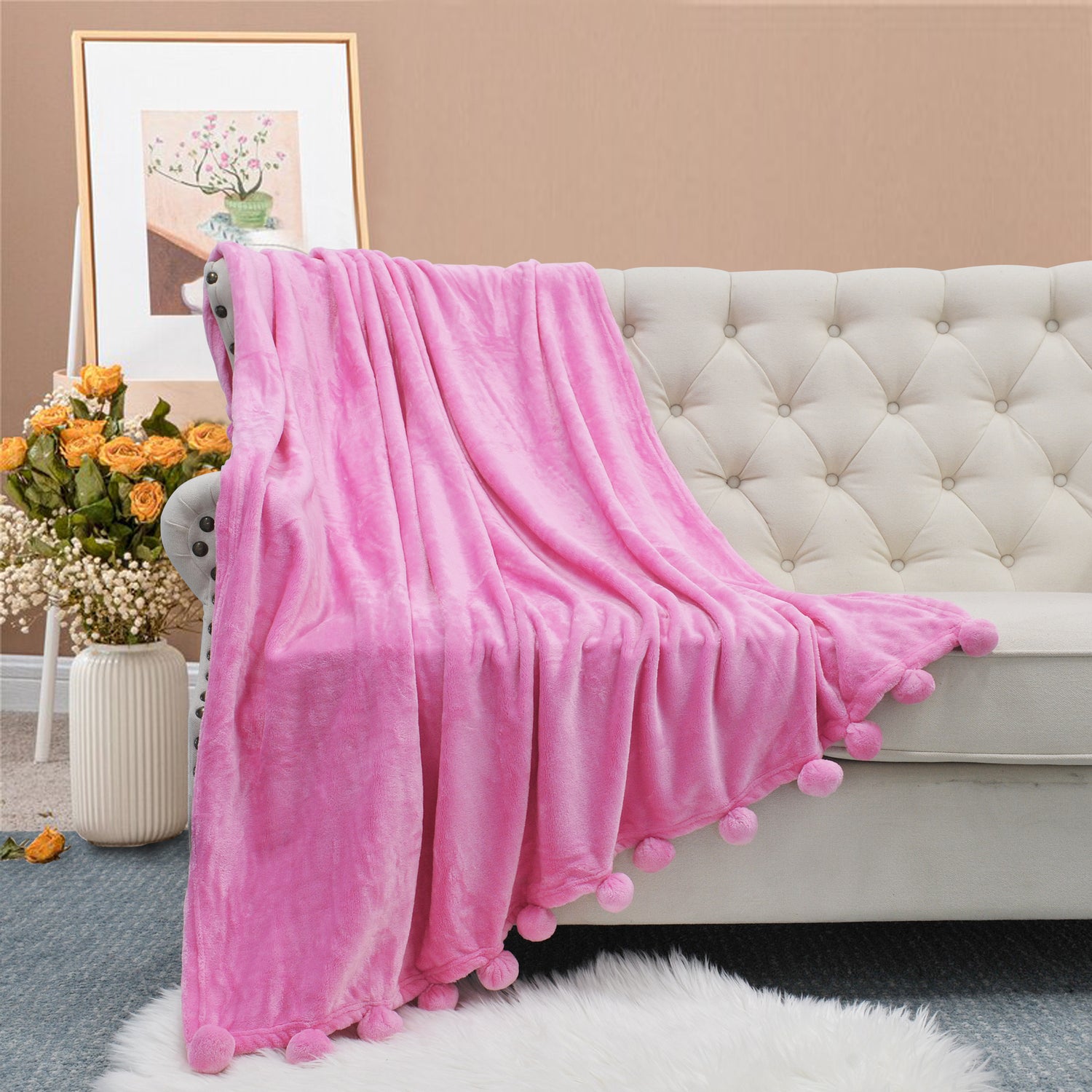 Cuddle up and enjoy a good read with our Pompom Flannel Fleece Throw. The fluffy pompom accents add a playful touch to this luxuriously plush throw, crafted from soft flannel fleece. Its machine-washable design ensures effortless cleaning and maintenance. Available in various colors.