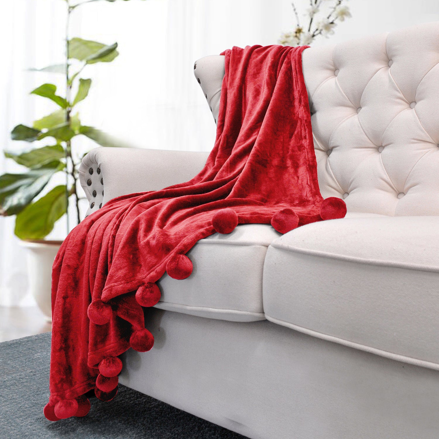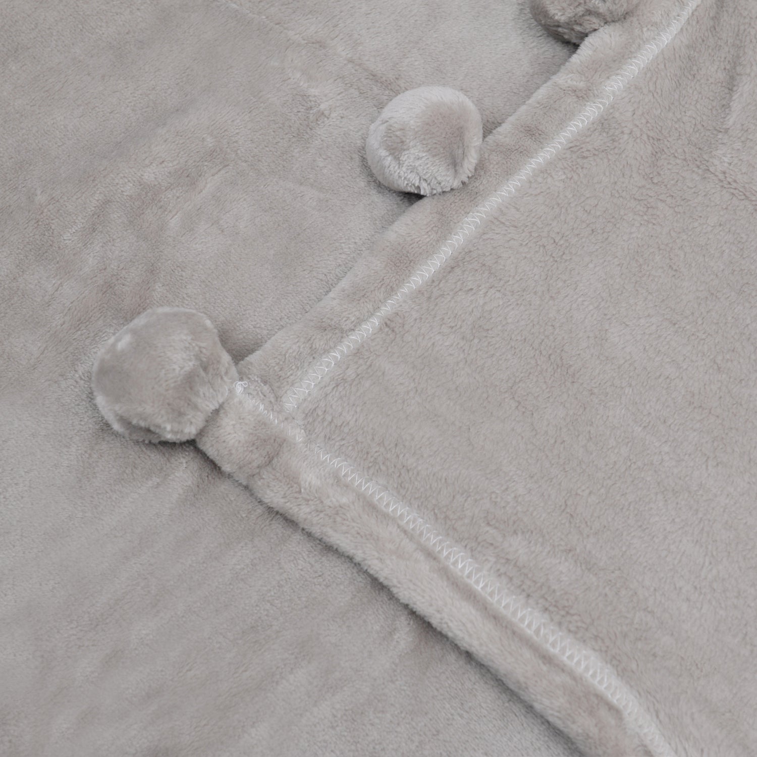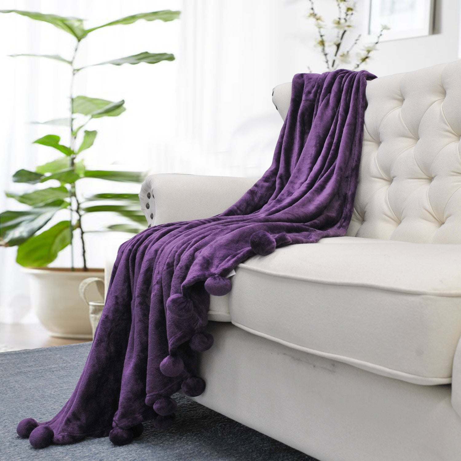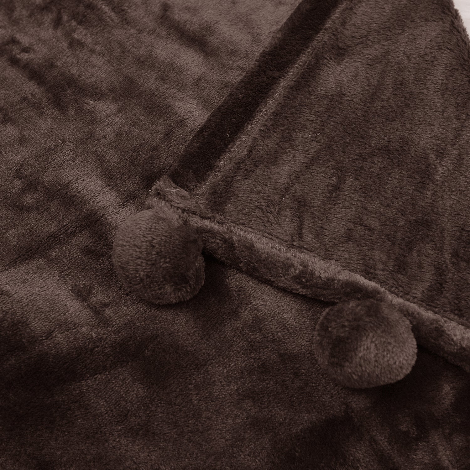 Cuddle up and enjoy a good read with our Pompom Flannel Fleece Throw. The fluffy pompom accents add a playful touch to this luxuriously plush throw, crafted from soft flannel fleece. Its machine-washable design ensures effortless cleaning and maintenance. Available in various colors.