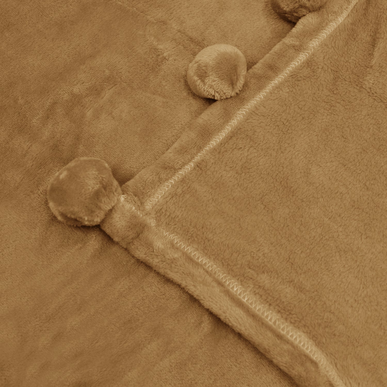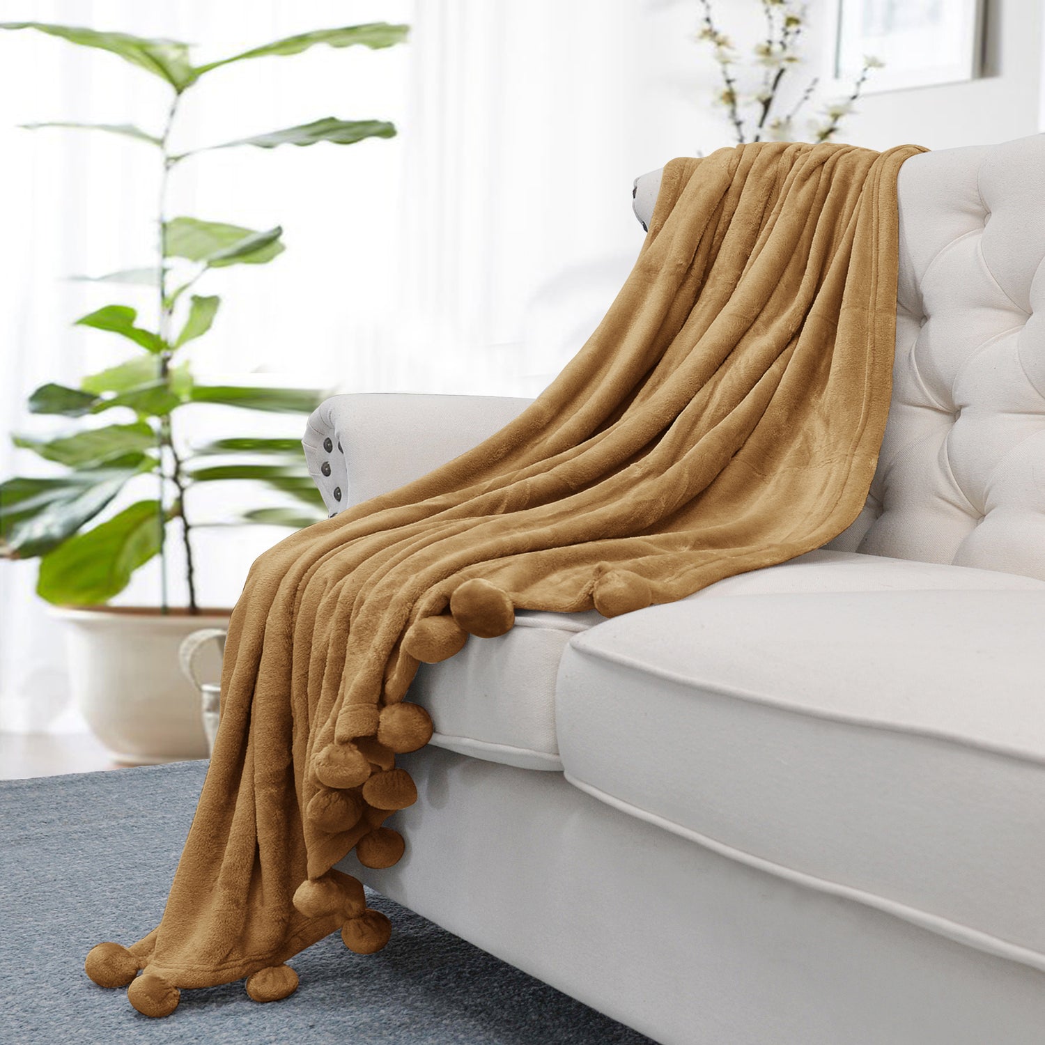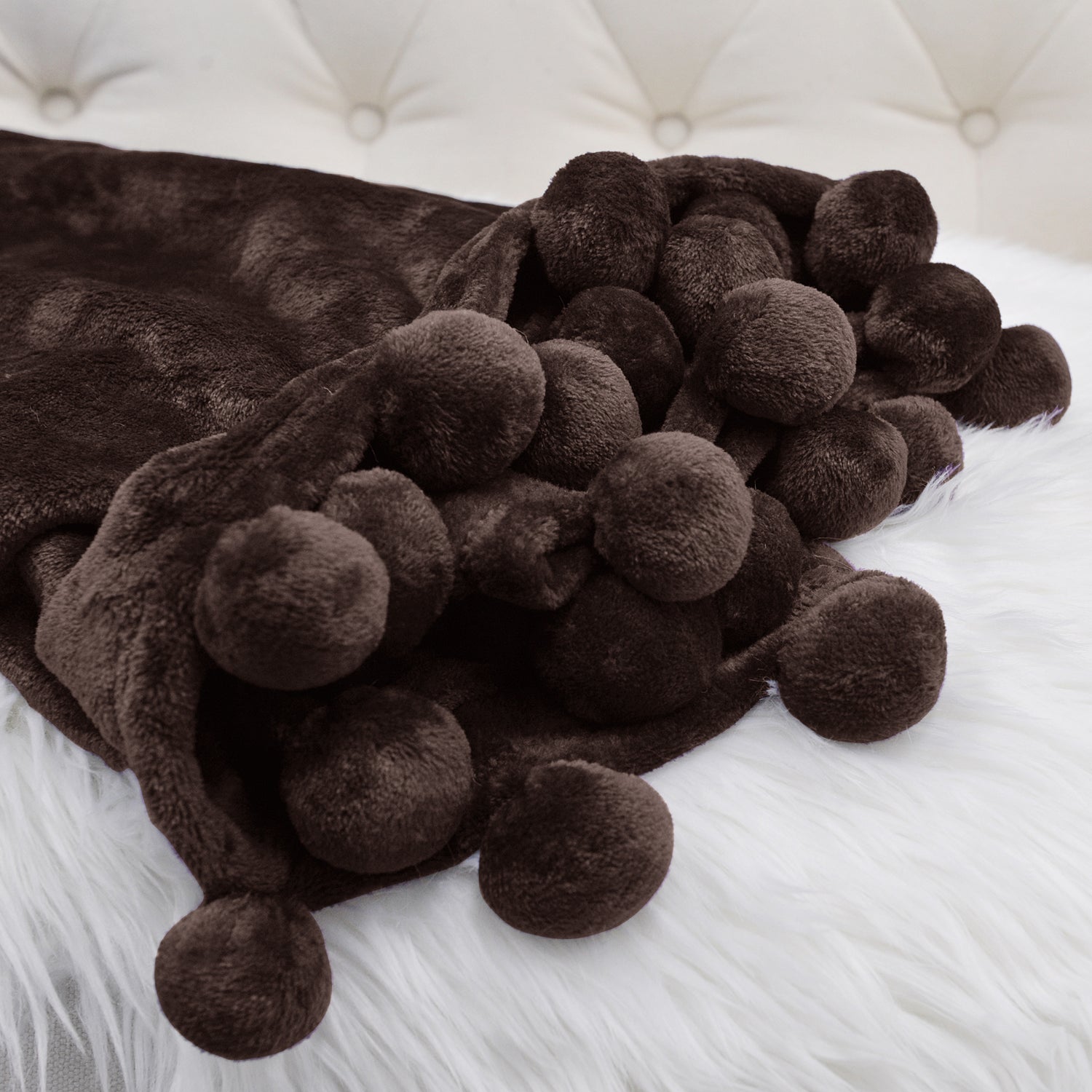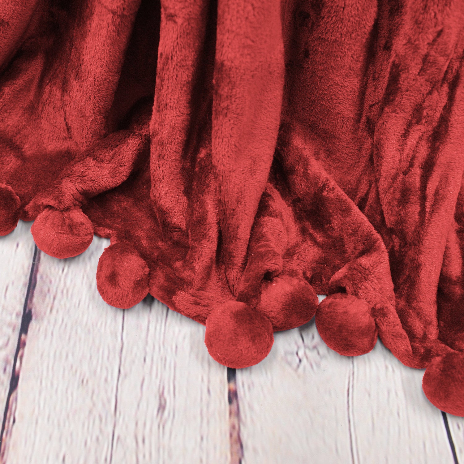 Cuddle up and enjoy a good read with our Pompom Flannel Fleece Throw. The fluffy pompom accents add a playful touch to this luxuriously plush throw, crafted from soft flannel fleece. Its machine-washable design ensures effortless cleaning and maintenance. Available in various colors.