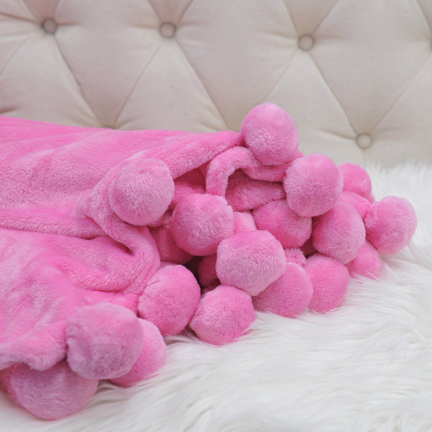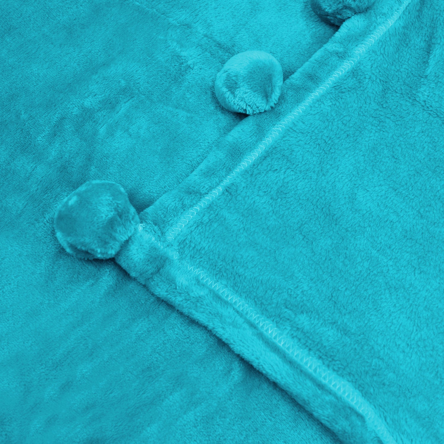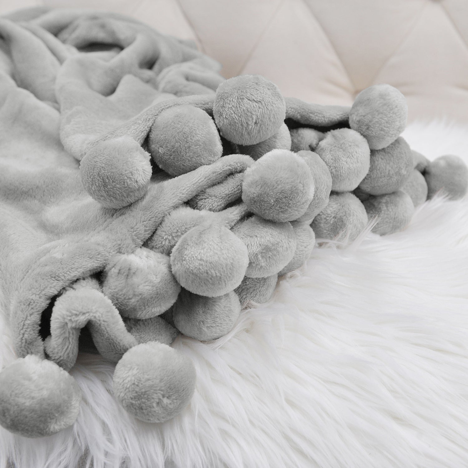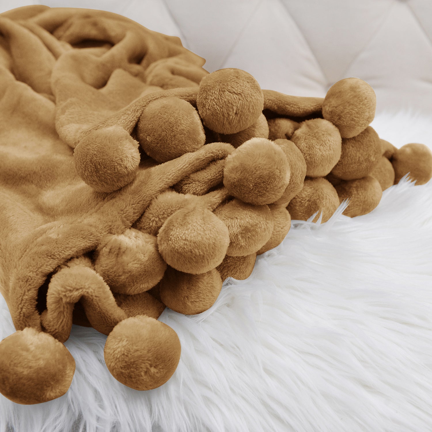 Cuddle up and enjoy a good read with our Pompom Flannel Fleece Throw. The fluffy pompom accents add a playful touch to this luxuriously plush throw, crafted from soft flannel fleece. Its machine-washable design ensures effortless cleaning and maintenance. Available in various colors.