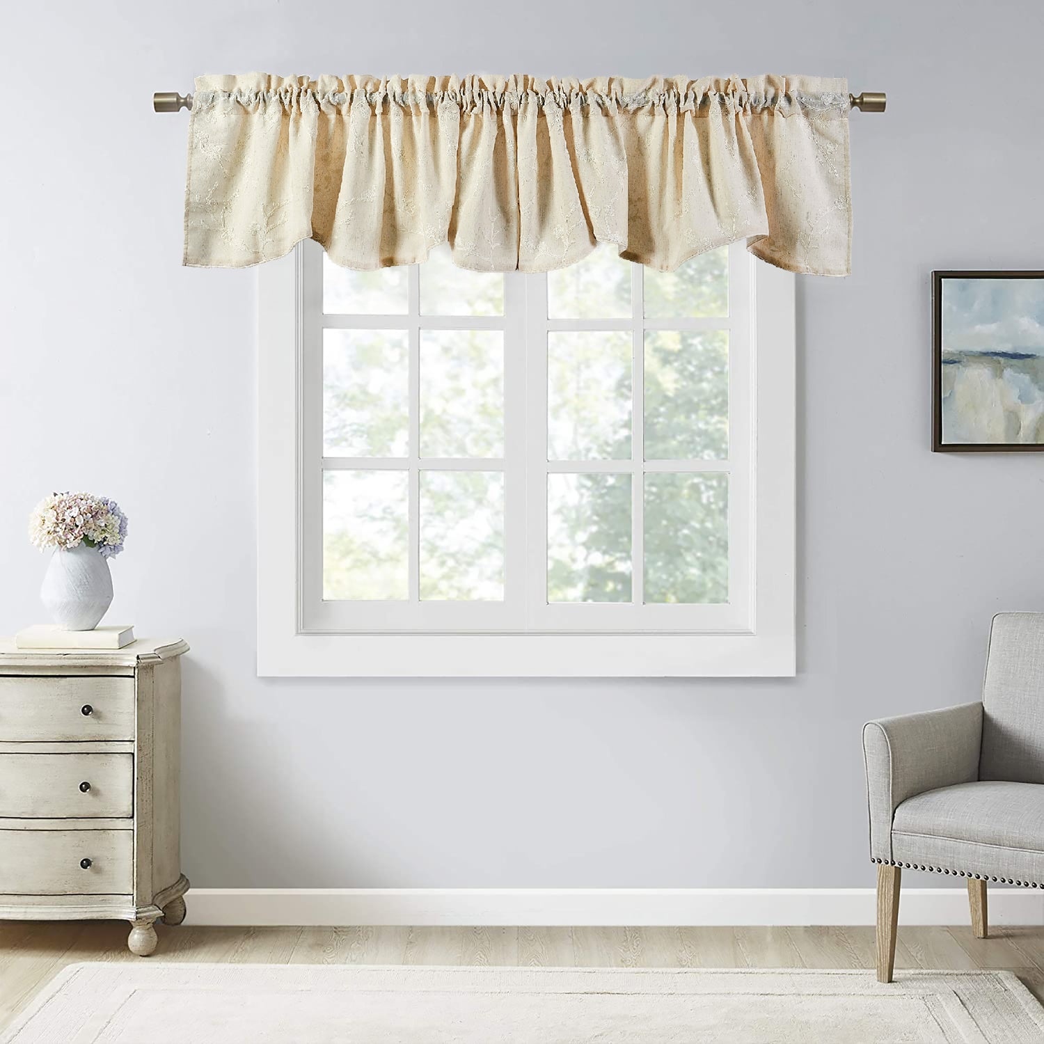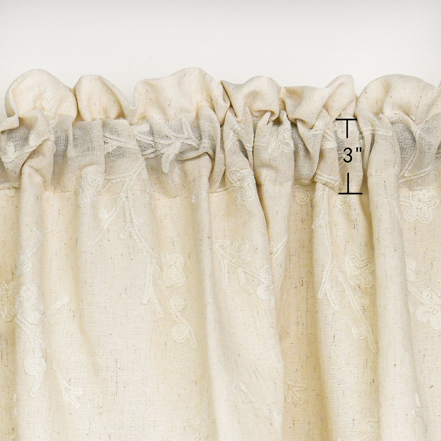 - One set Includes 2 Piece Valances. Each valance measures 60" width x 19" height. Header 1.5", rod pocket 3" so you can hung on your favorite curtain rod up to 2” diameter.