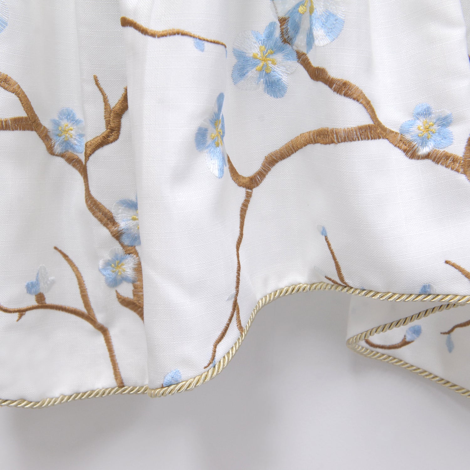 This Embroidered Pastoral Style Floral Window Valance features a graceful and peaceful pastoral style, highlighted by a delicate embroidery floral pattern design. Perfect for gifting, this valance adds an elegant touch to any room and is easy to wash for convenience. Enhance your home decor with its beauty and charm.