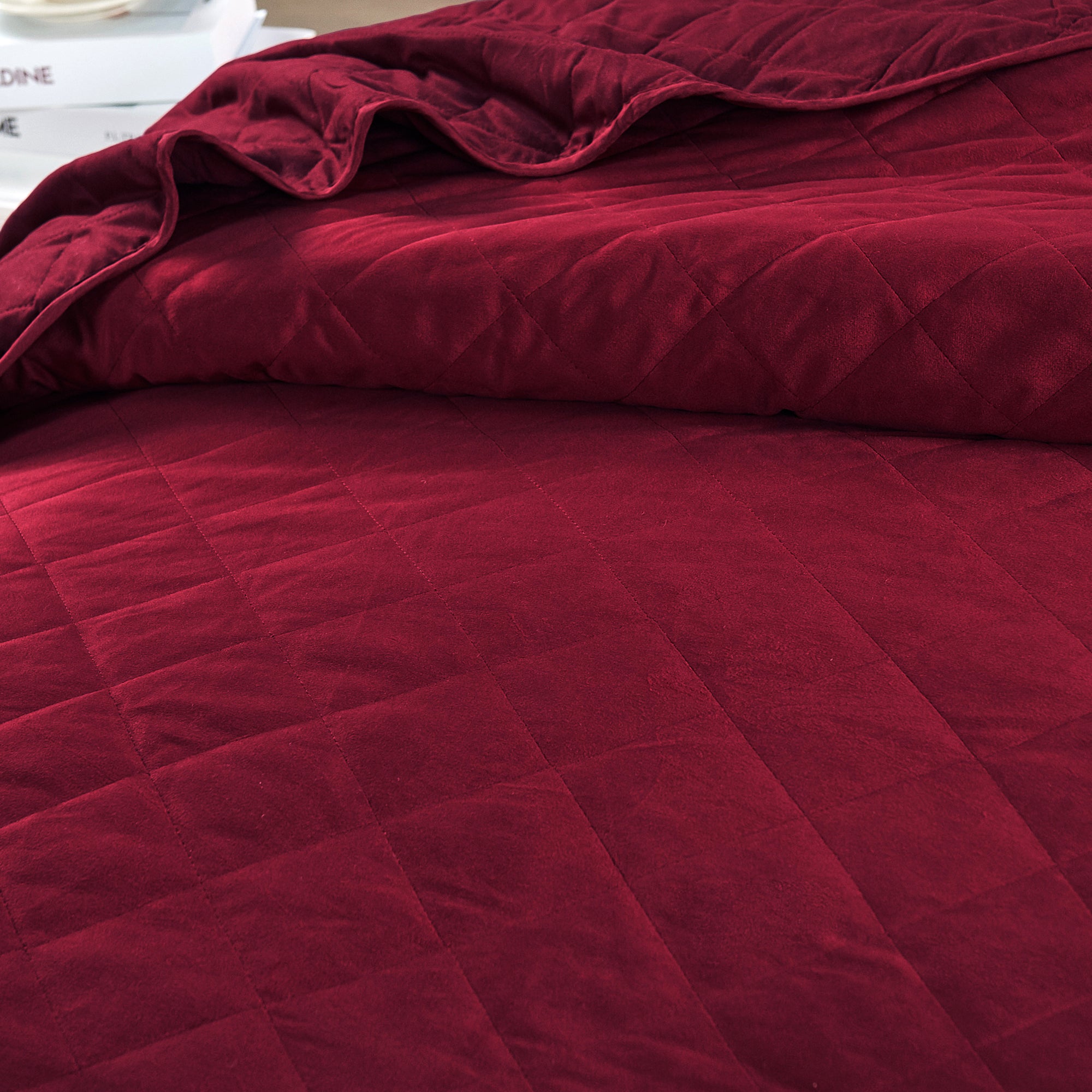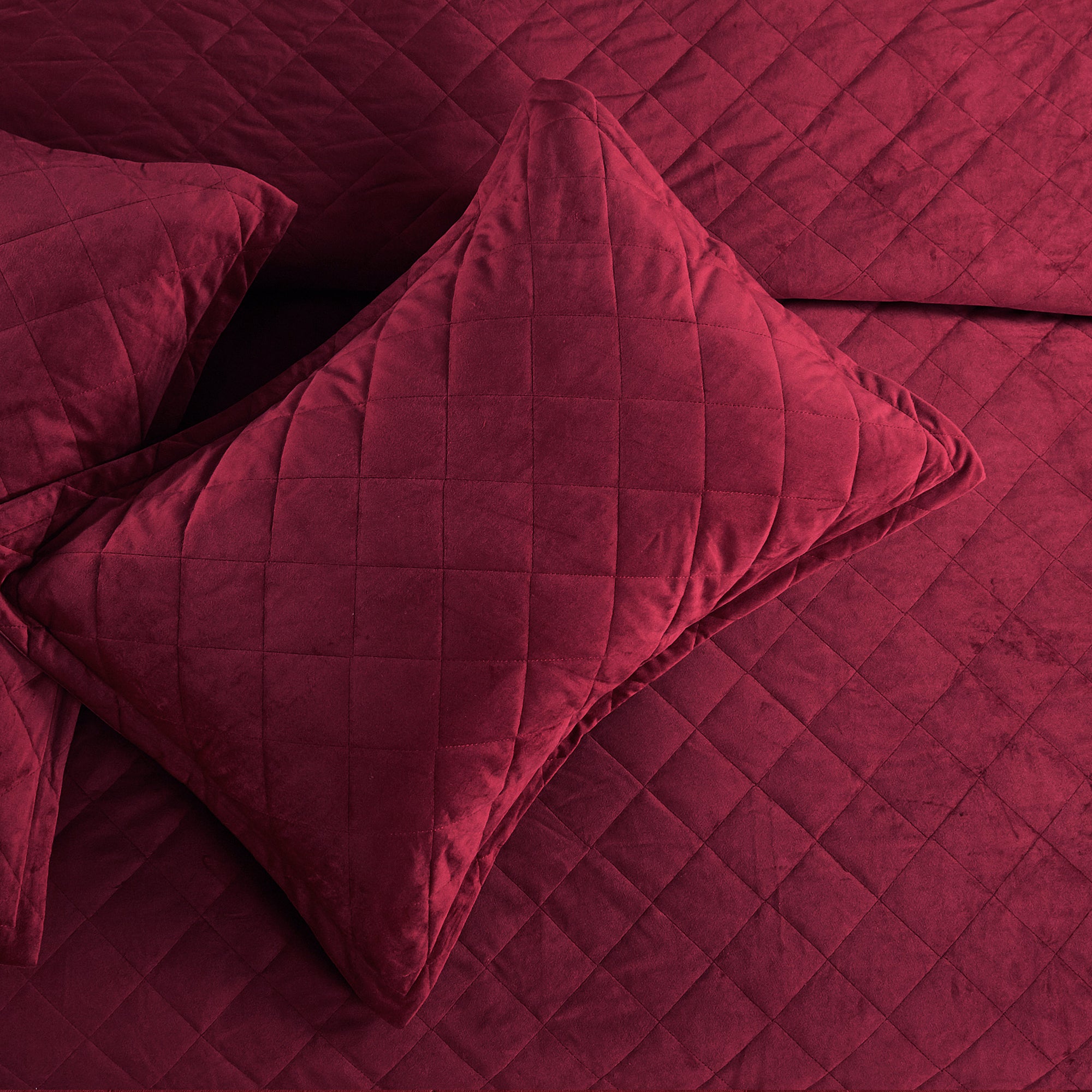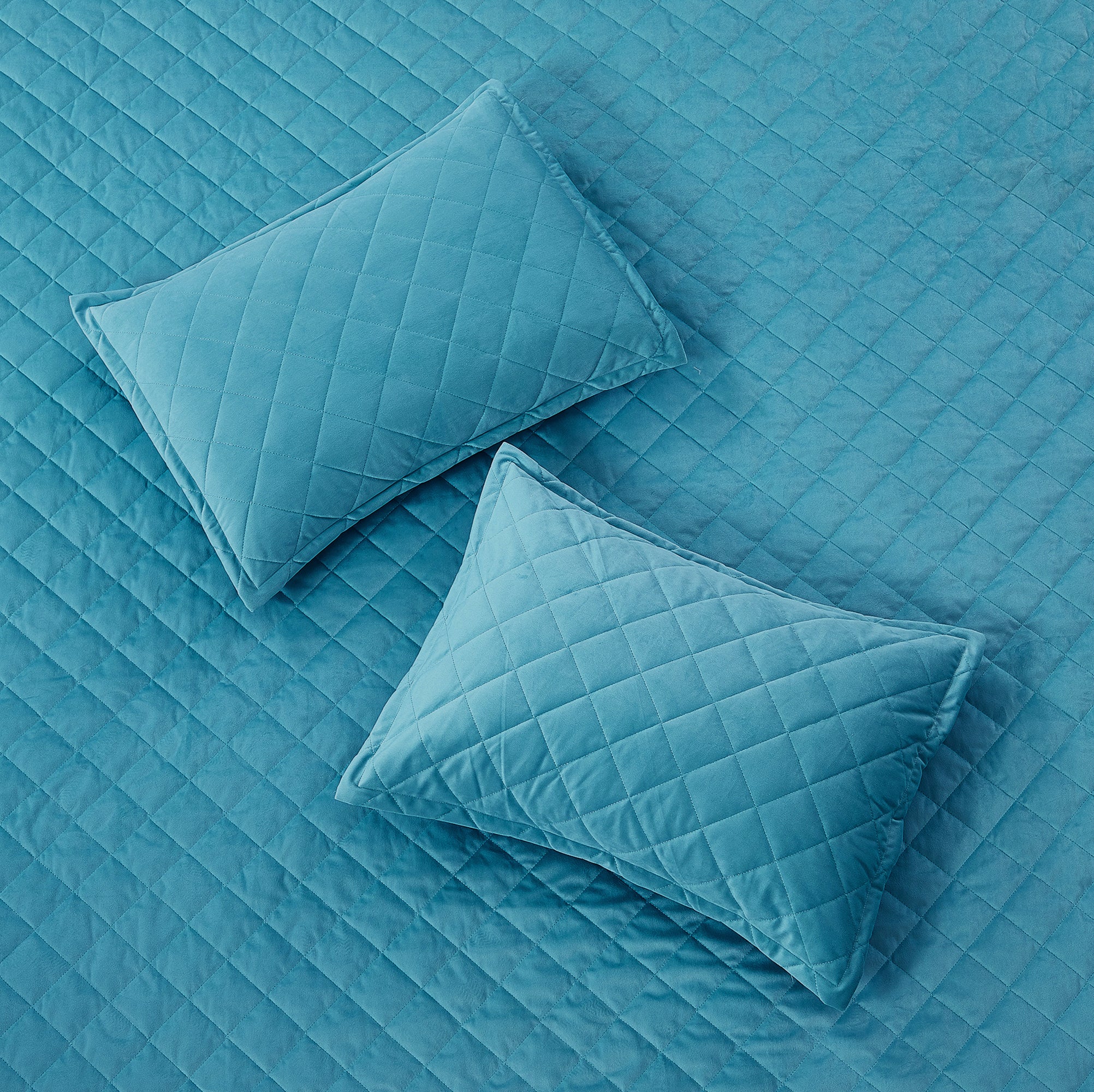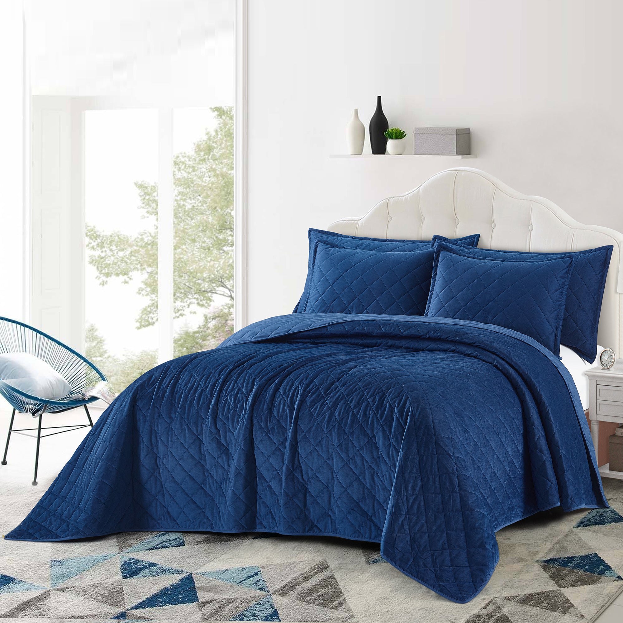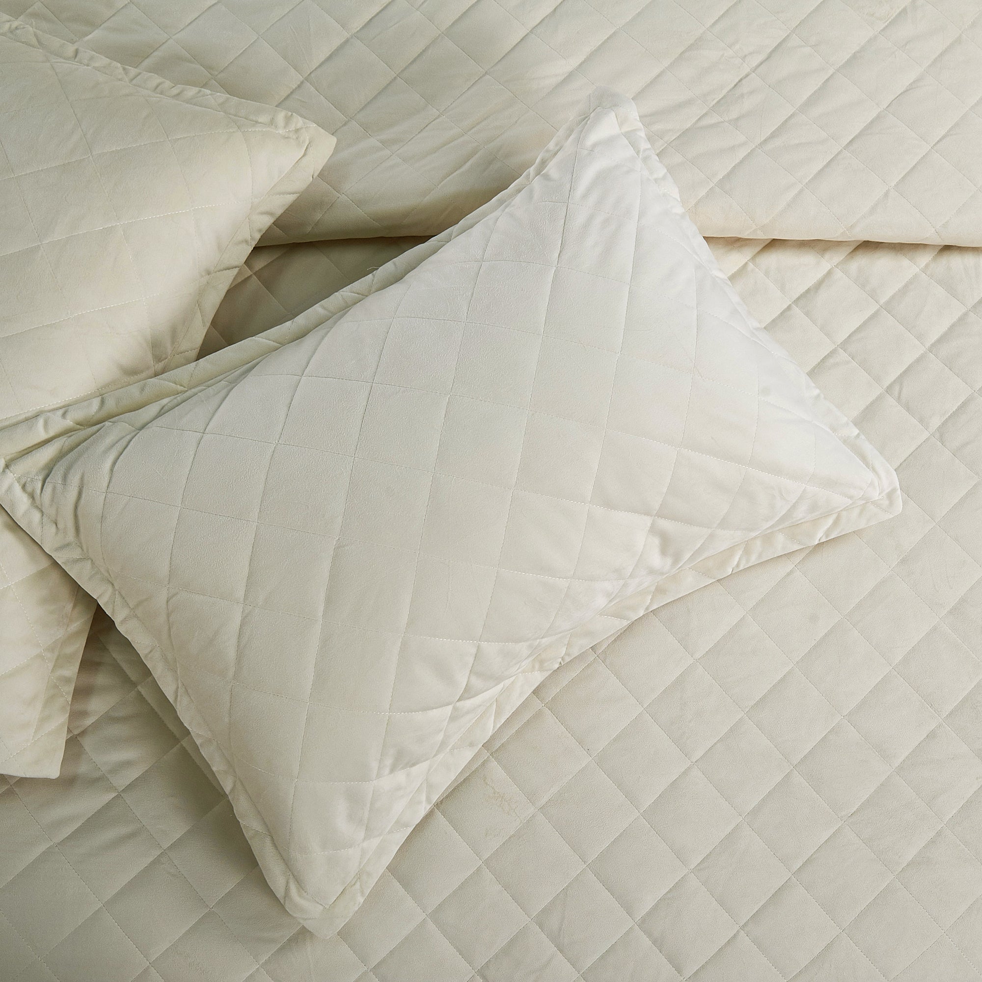 Super Soft Flannel Microfiber Velvet 5-Piece bedspread sets are designed for comfort, warmth, and class. The highly detailed diamond pattern quilting provides an elegant ambiance to your bedroom. A set includes 1 – Oversized Bedspread 122 inches x 106 inches, 2 - Shams 20 inches x 26 inches and 2 -Shams 20 inches x 36 inches. Simply machine wash, separately, using cold water on a gentle cycle. Tumble dry on lowest heat setting to avoid heat damage to your set.