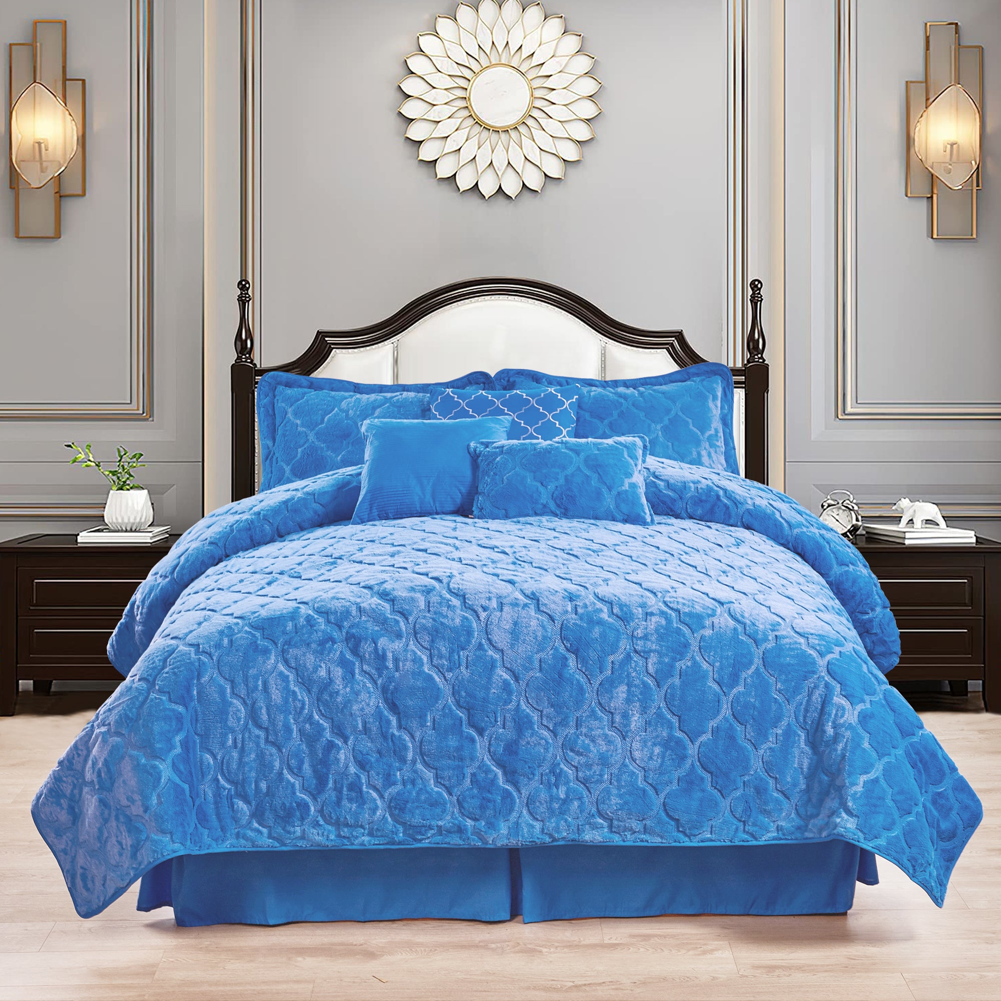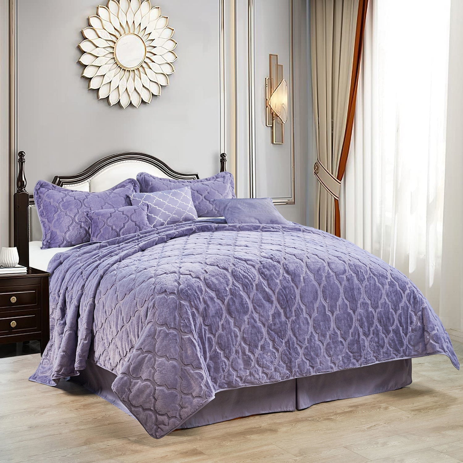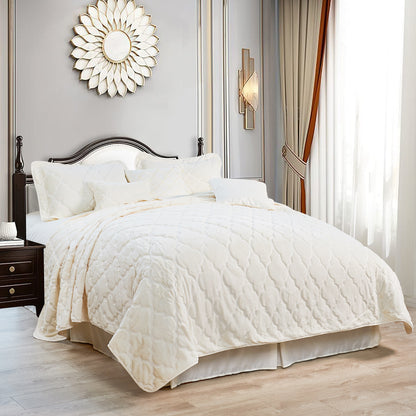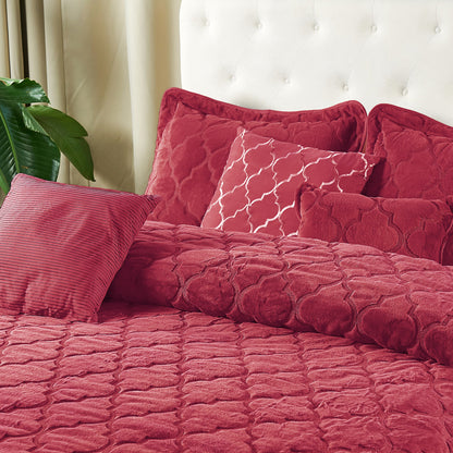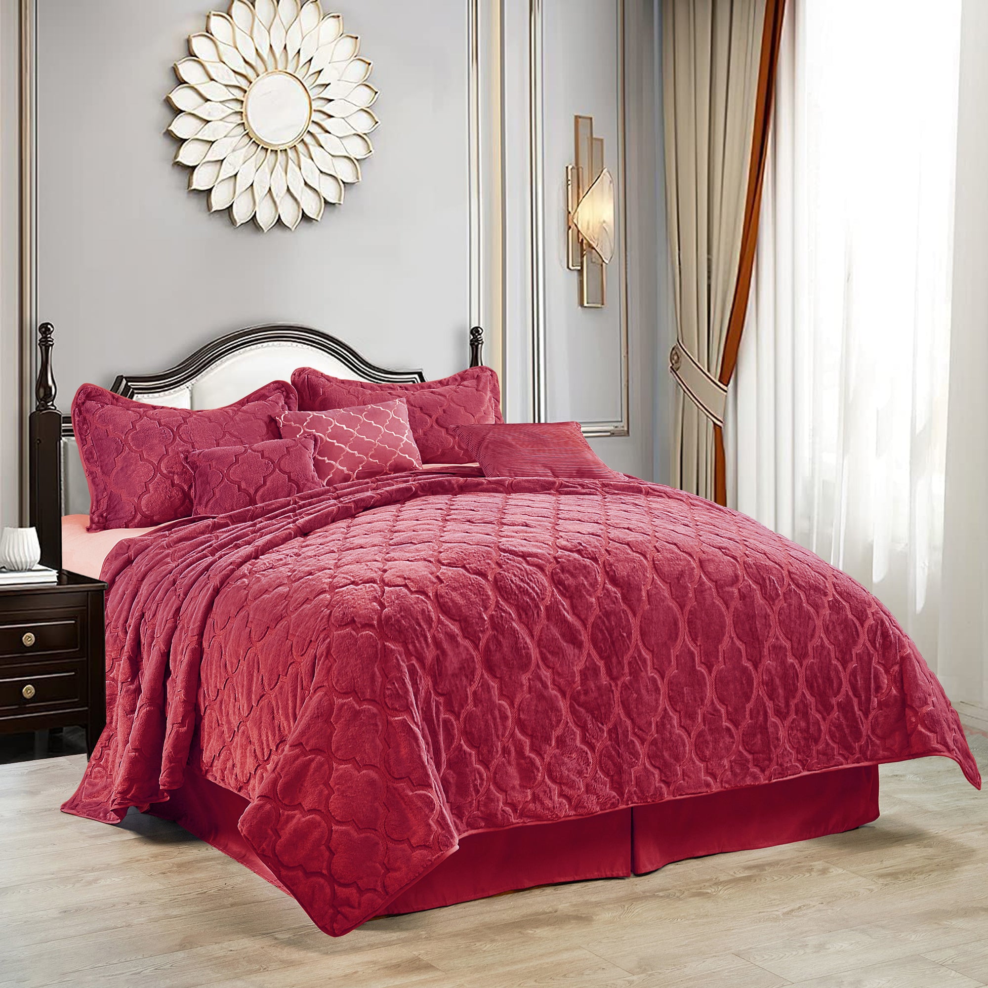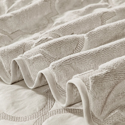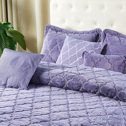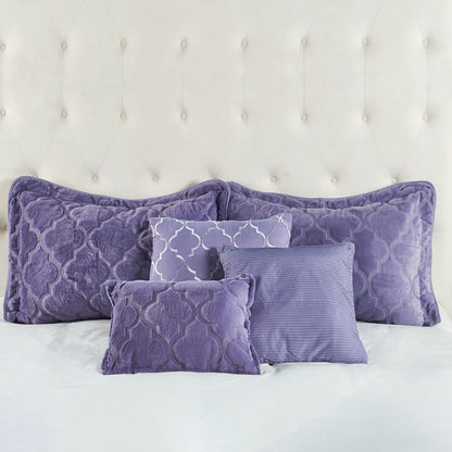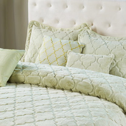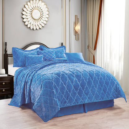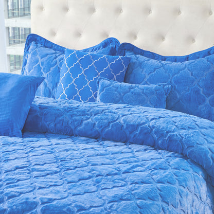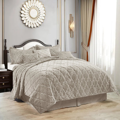 7 Piece Ogee Faux Fur Embroidery Bedspread Set