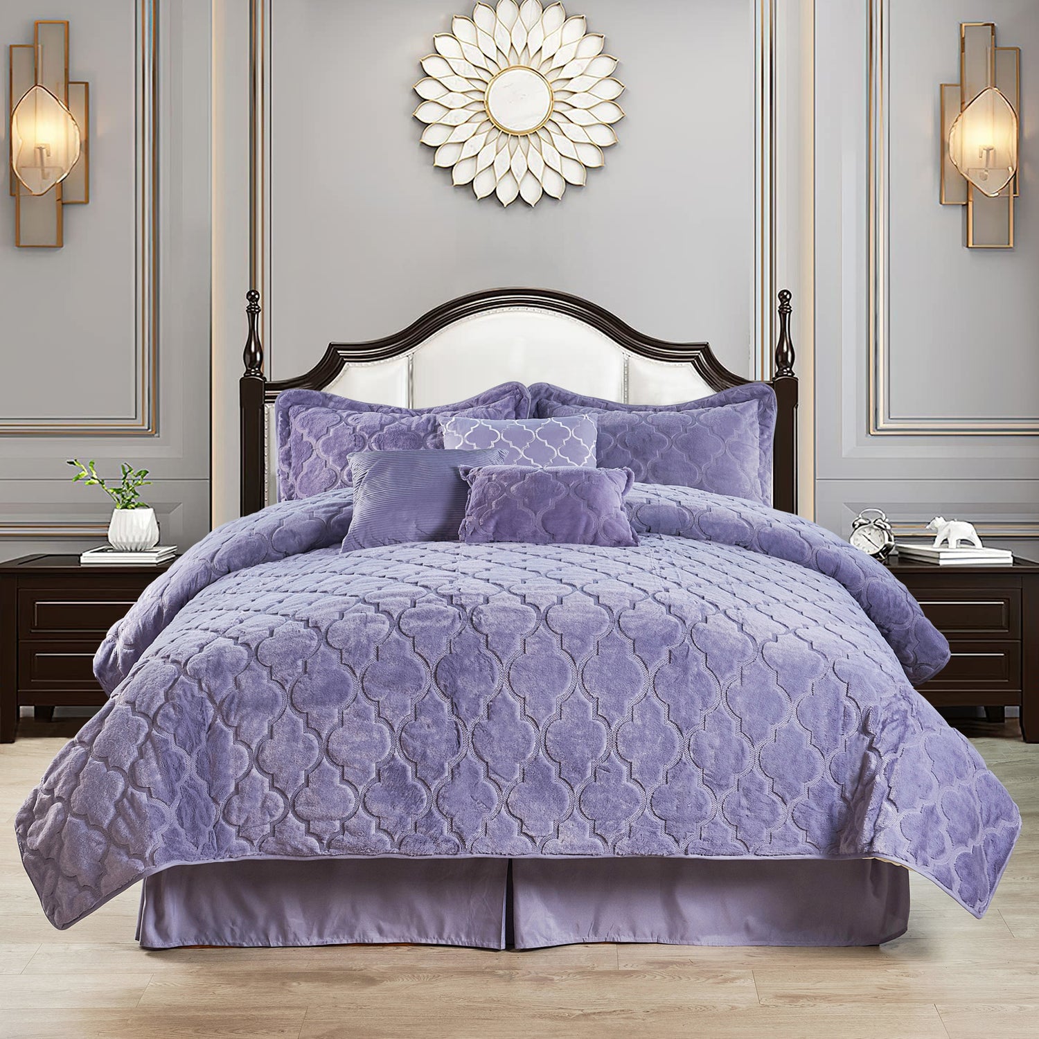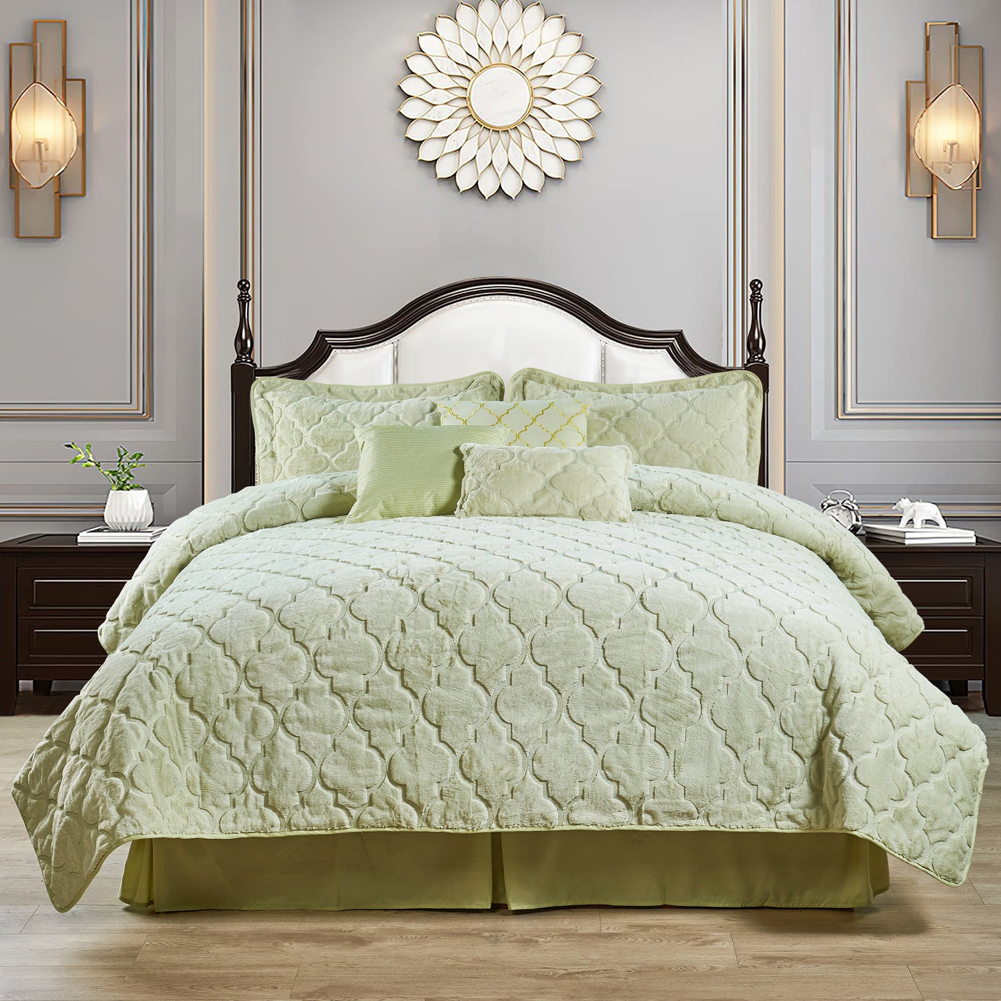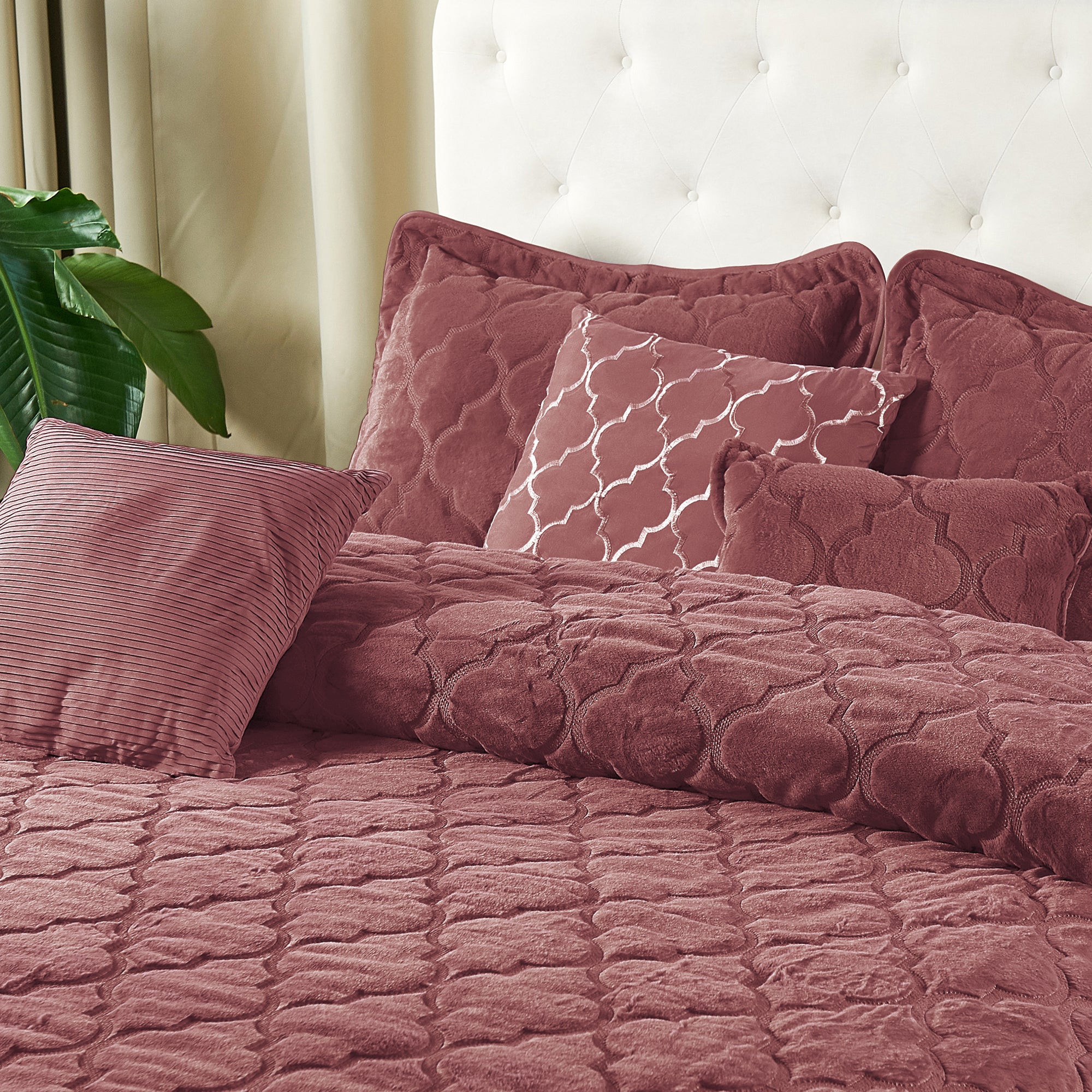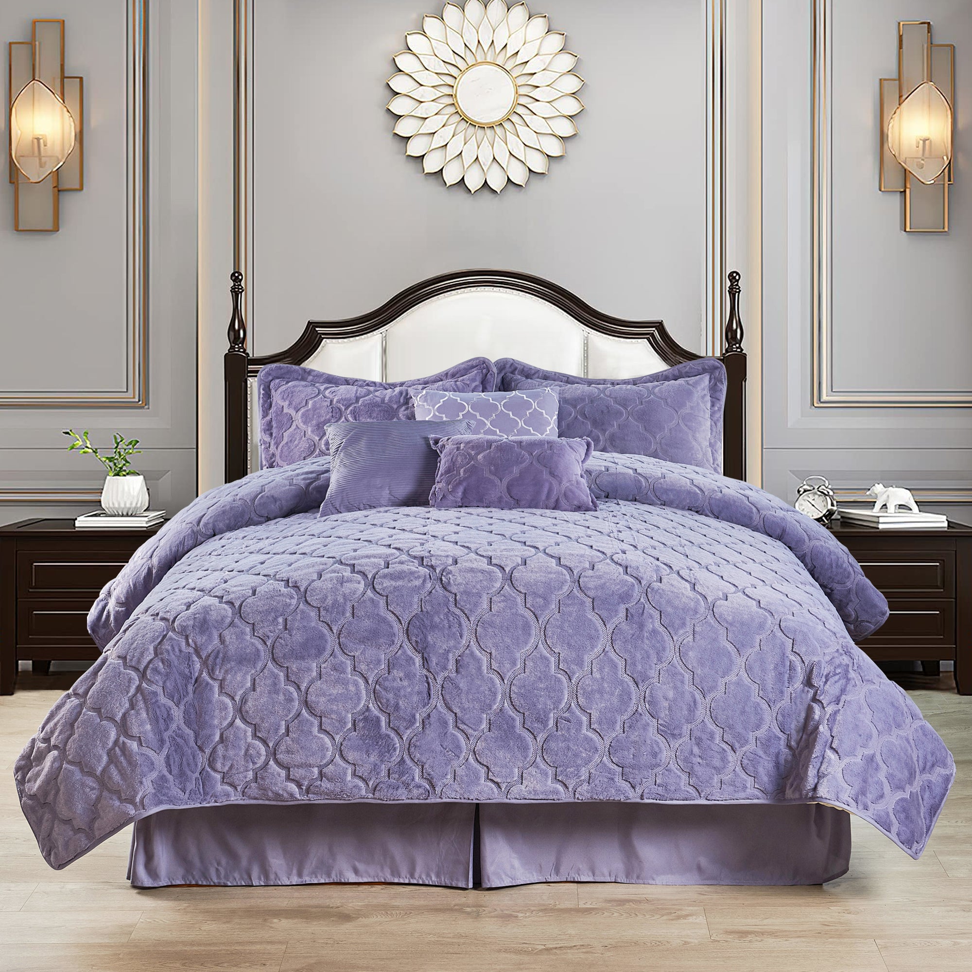 7 Piece Ogee Faux Fur Embroidery Bedspread Set