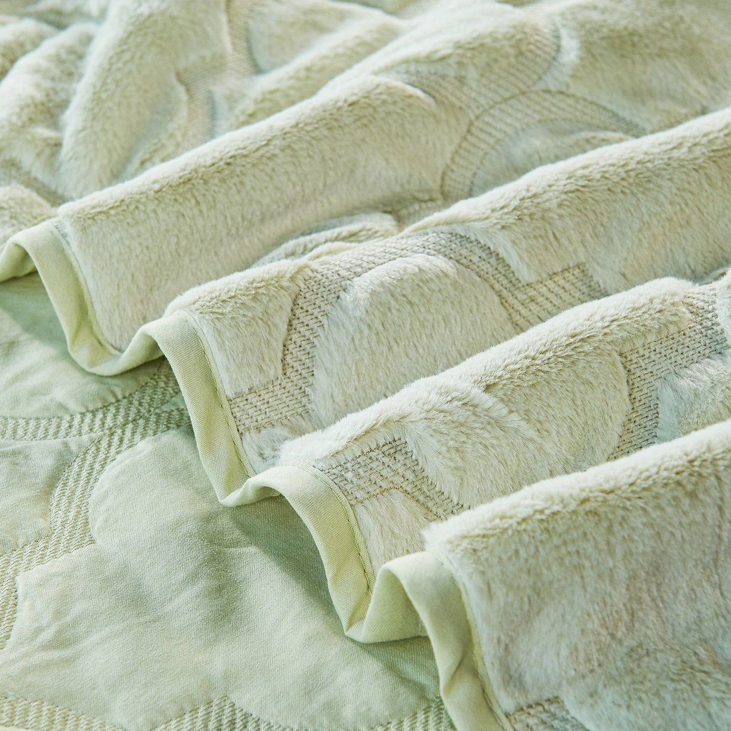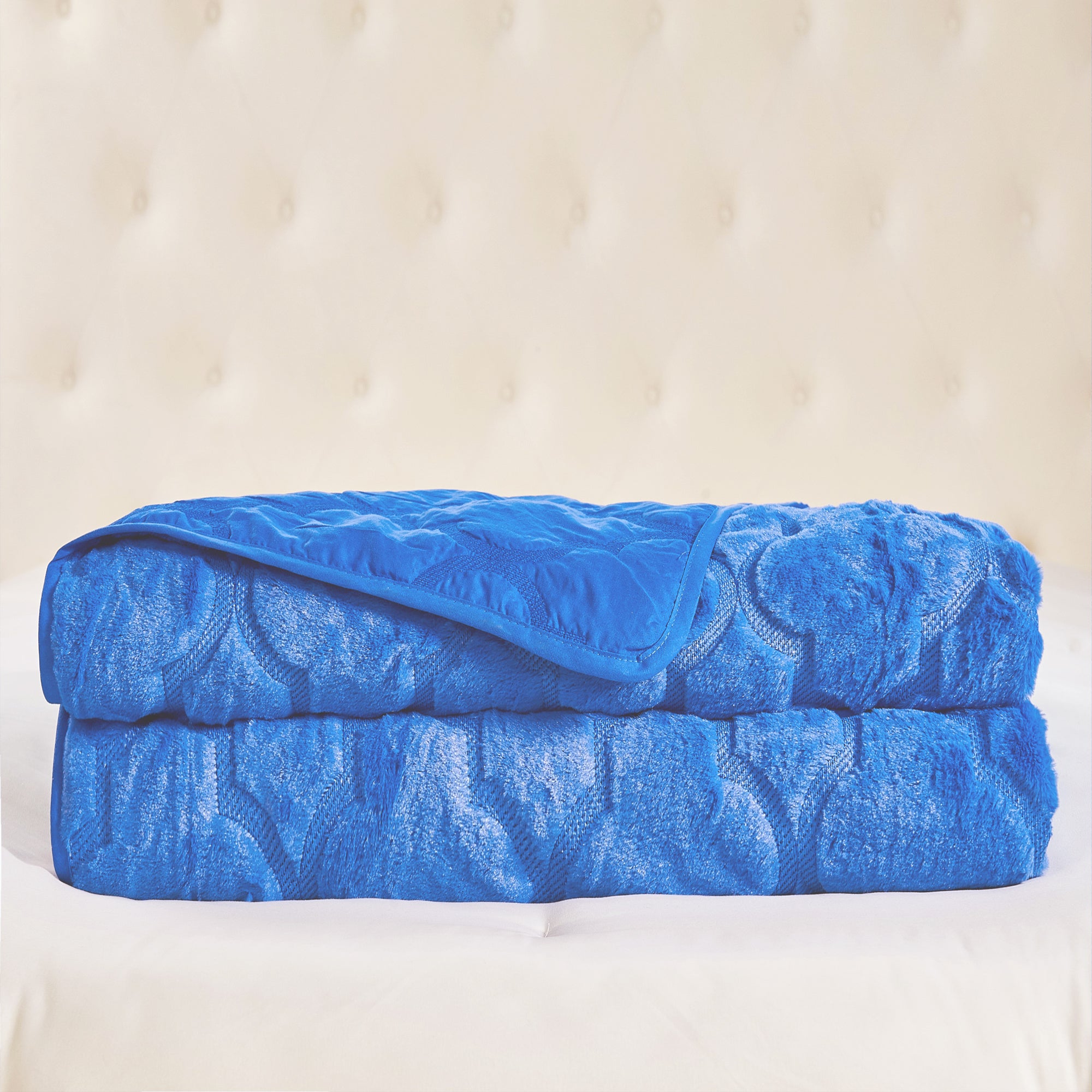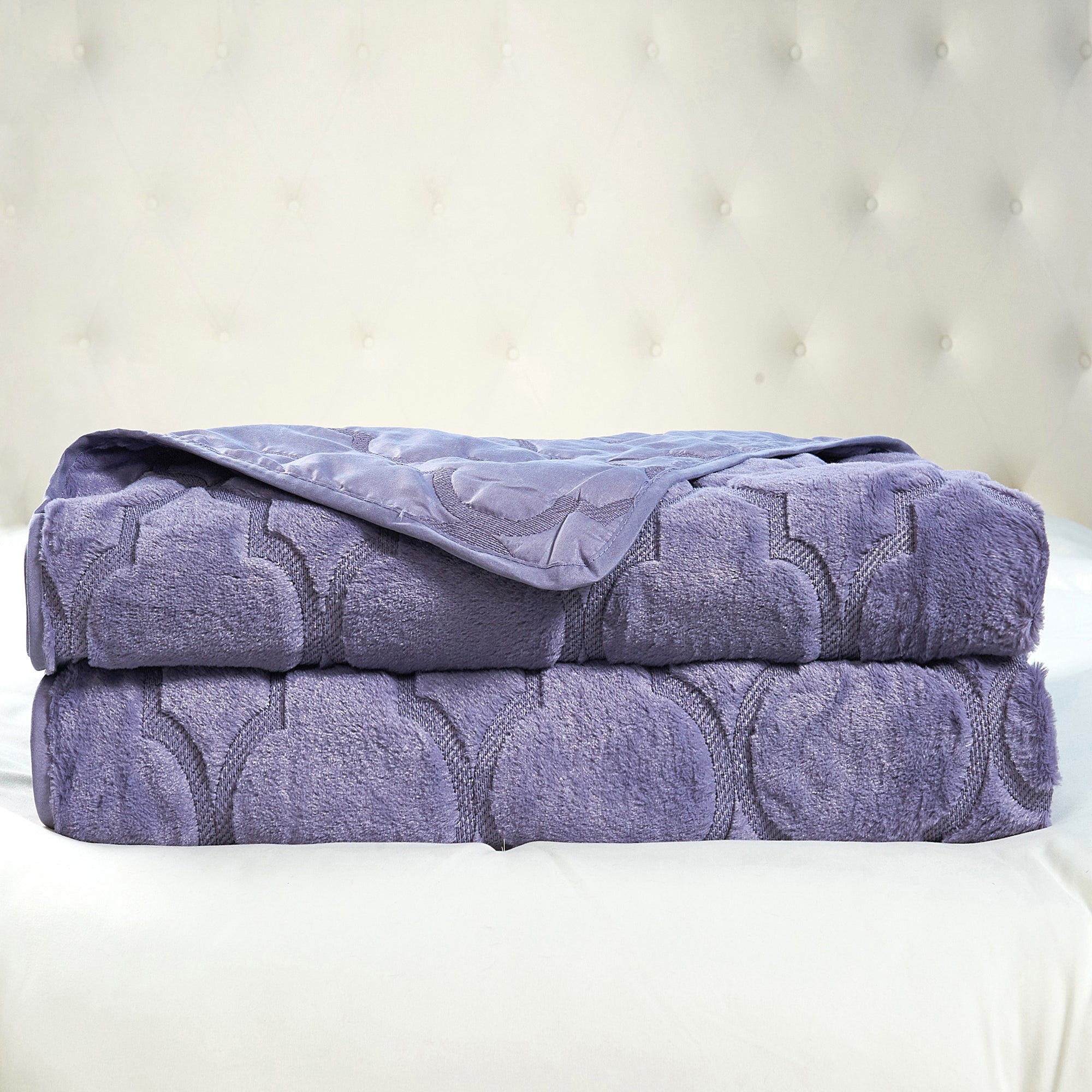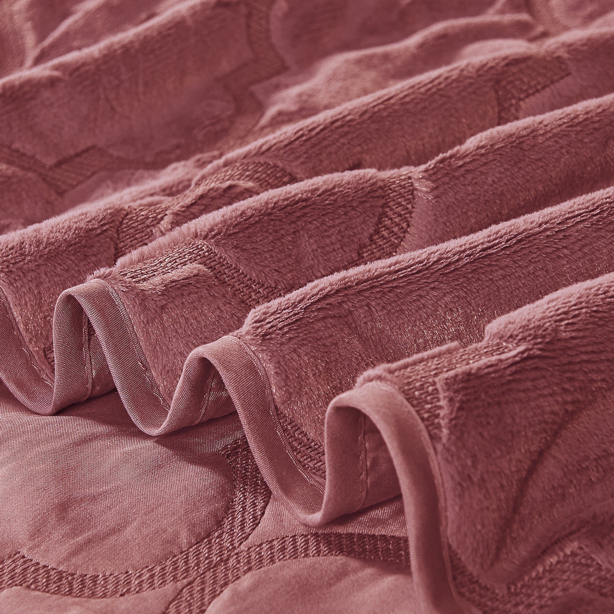 7 Piece Ogee Faux Fur Embroidery Bedspread Set