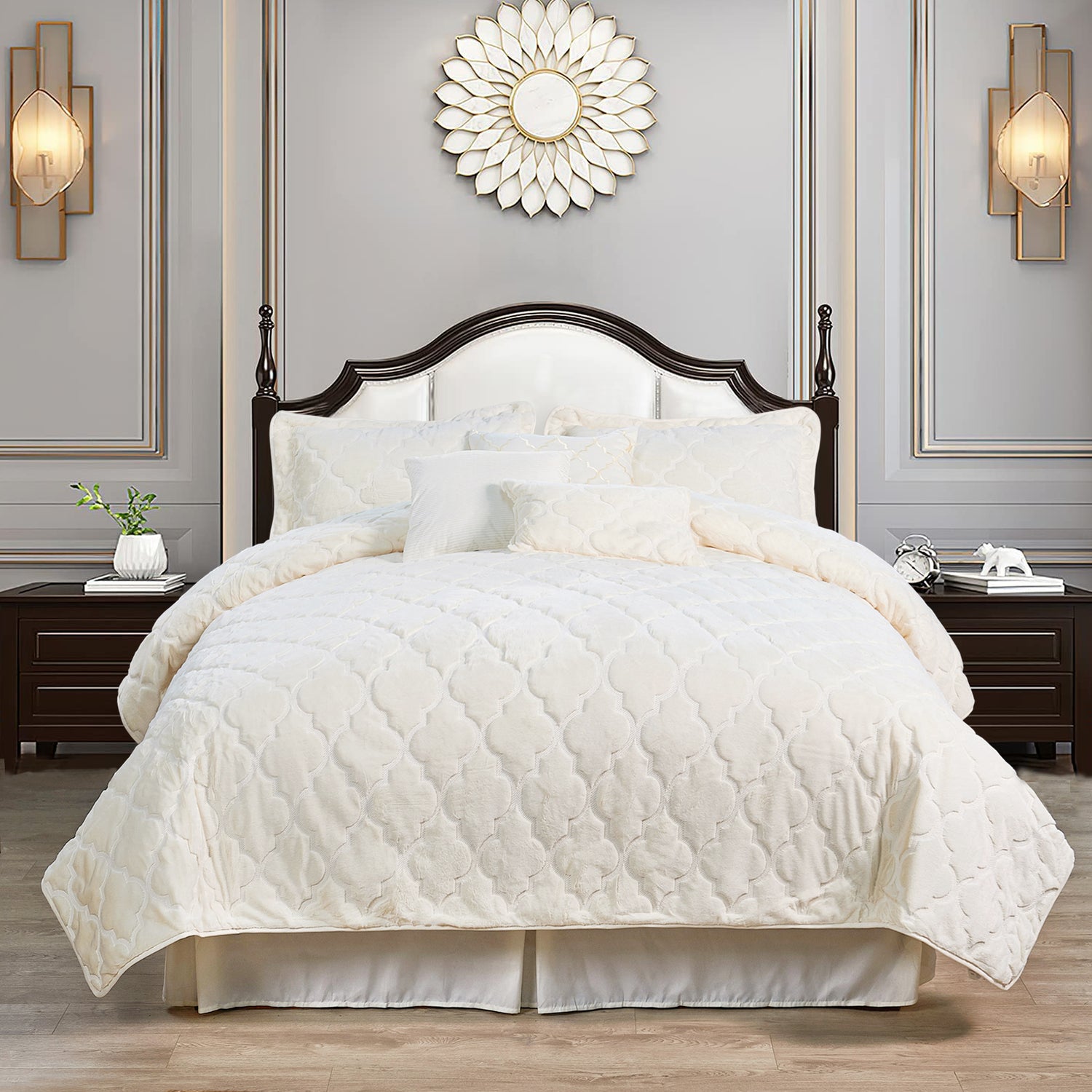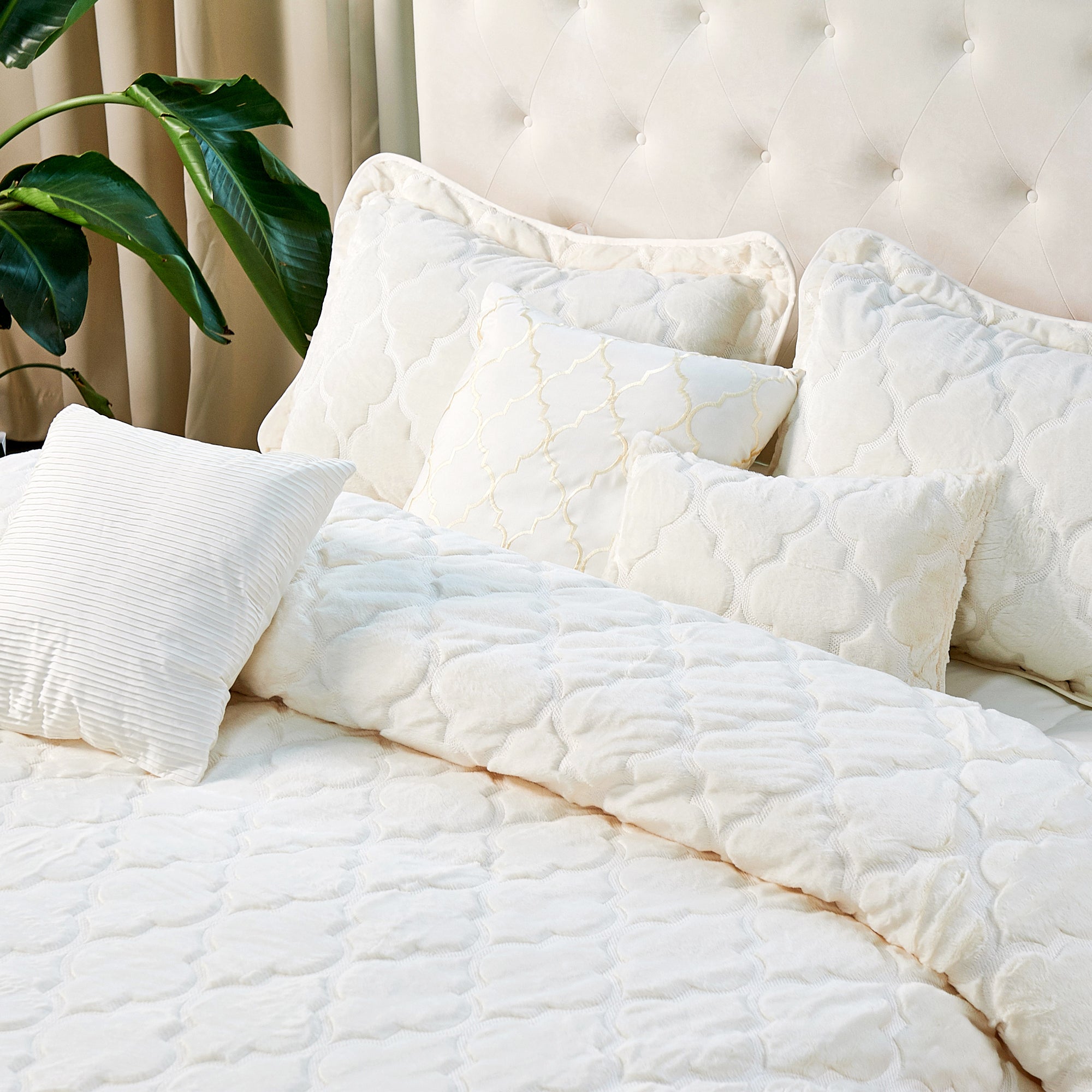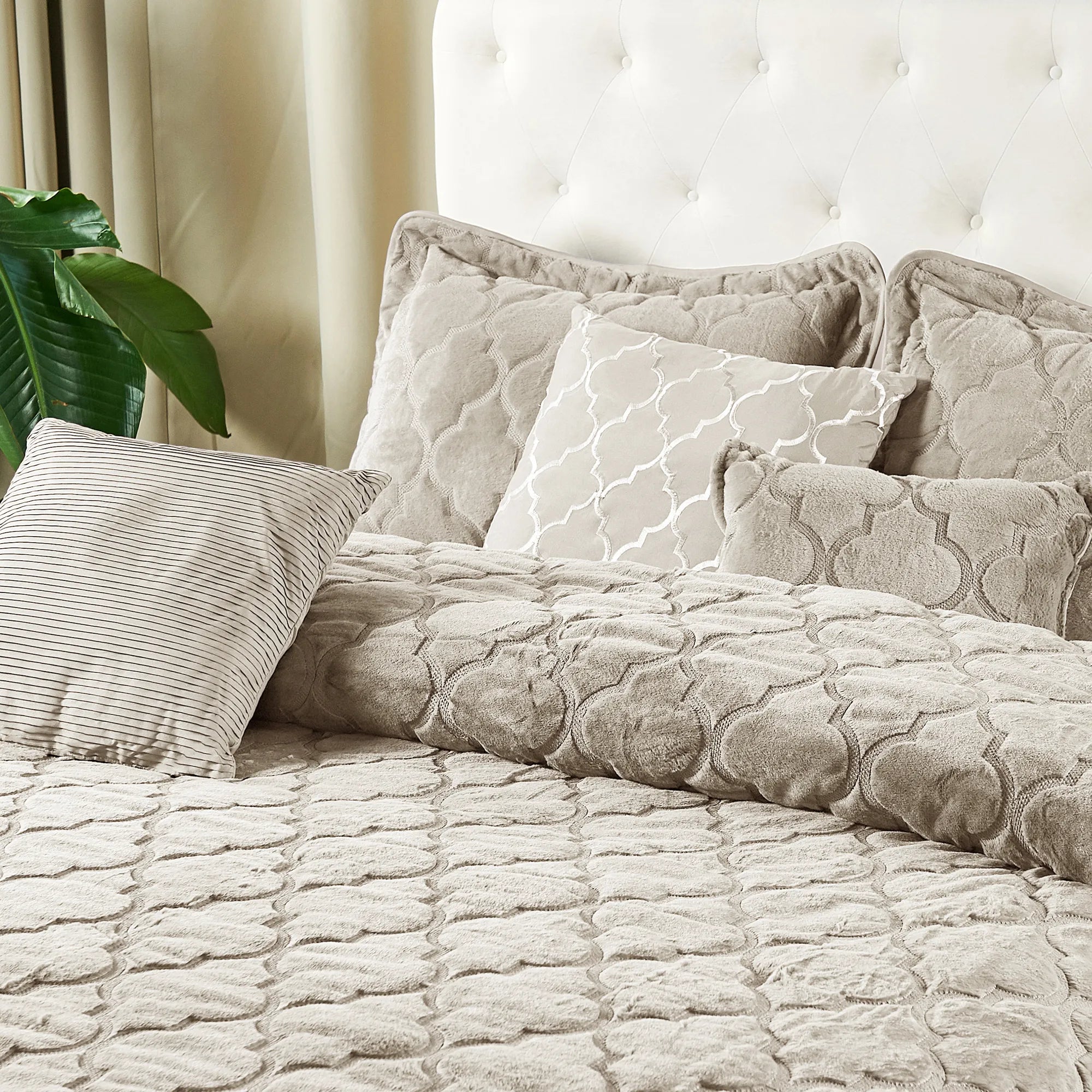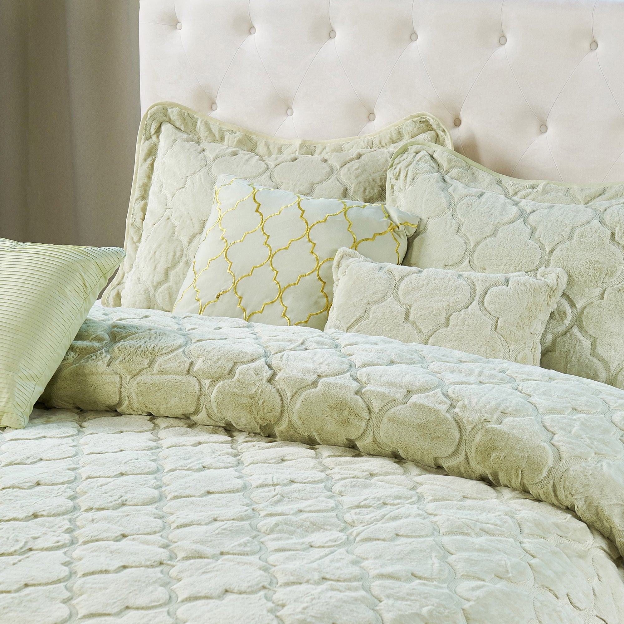 • ELEGANT GEOMETRIC OGEE DESIGN - The geometric classic quatrefoil pattern created by exquisite embroidery workmanship is easy to match your bedroom decor, offering you an elegant and classic feeling.