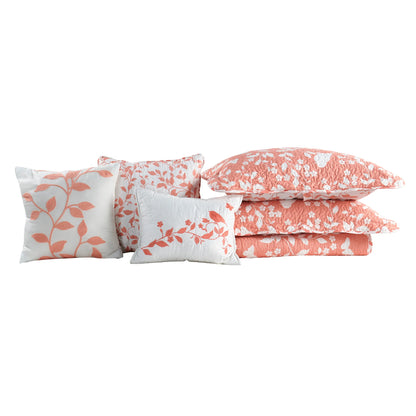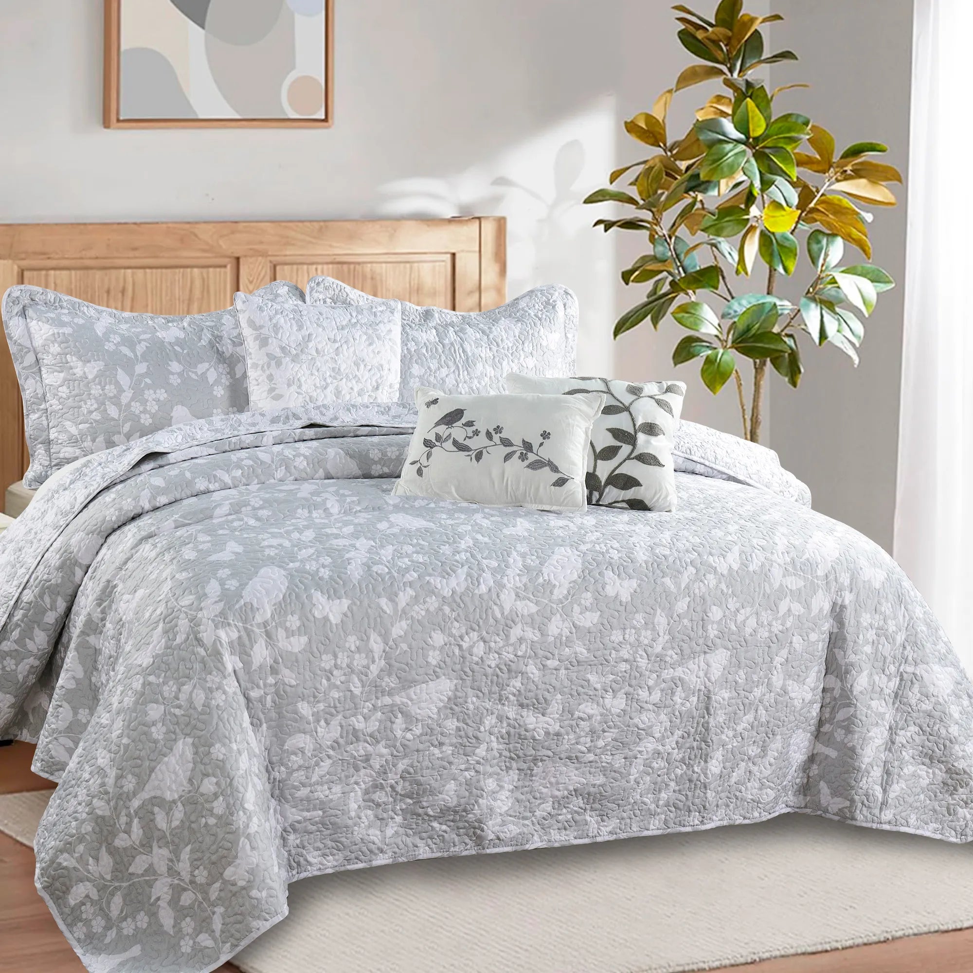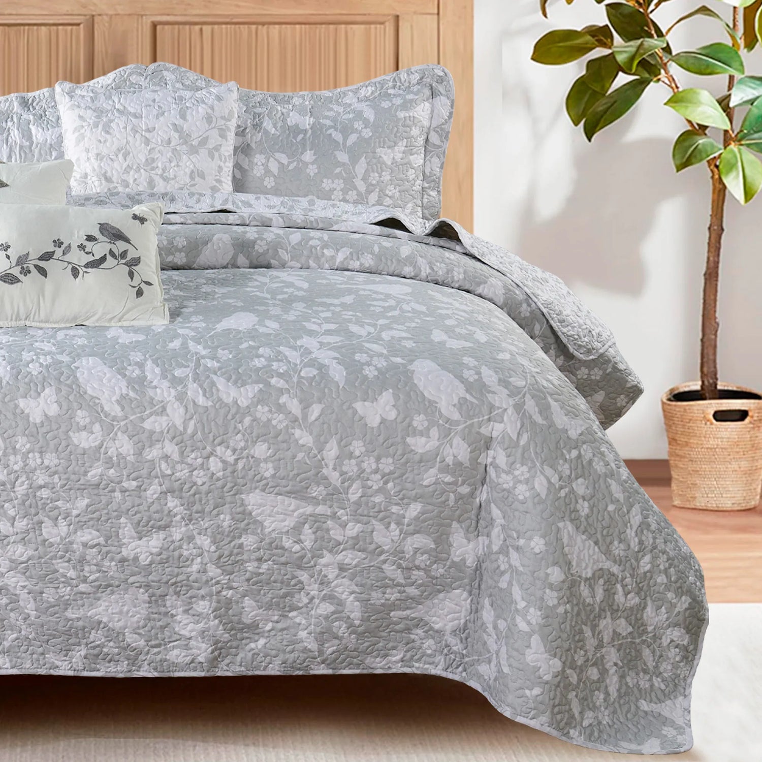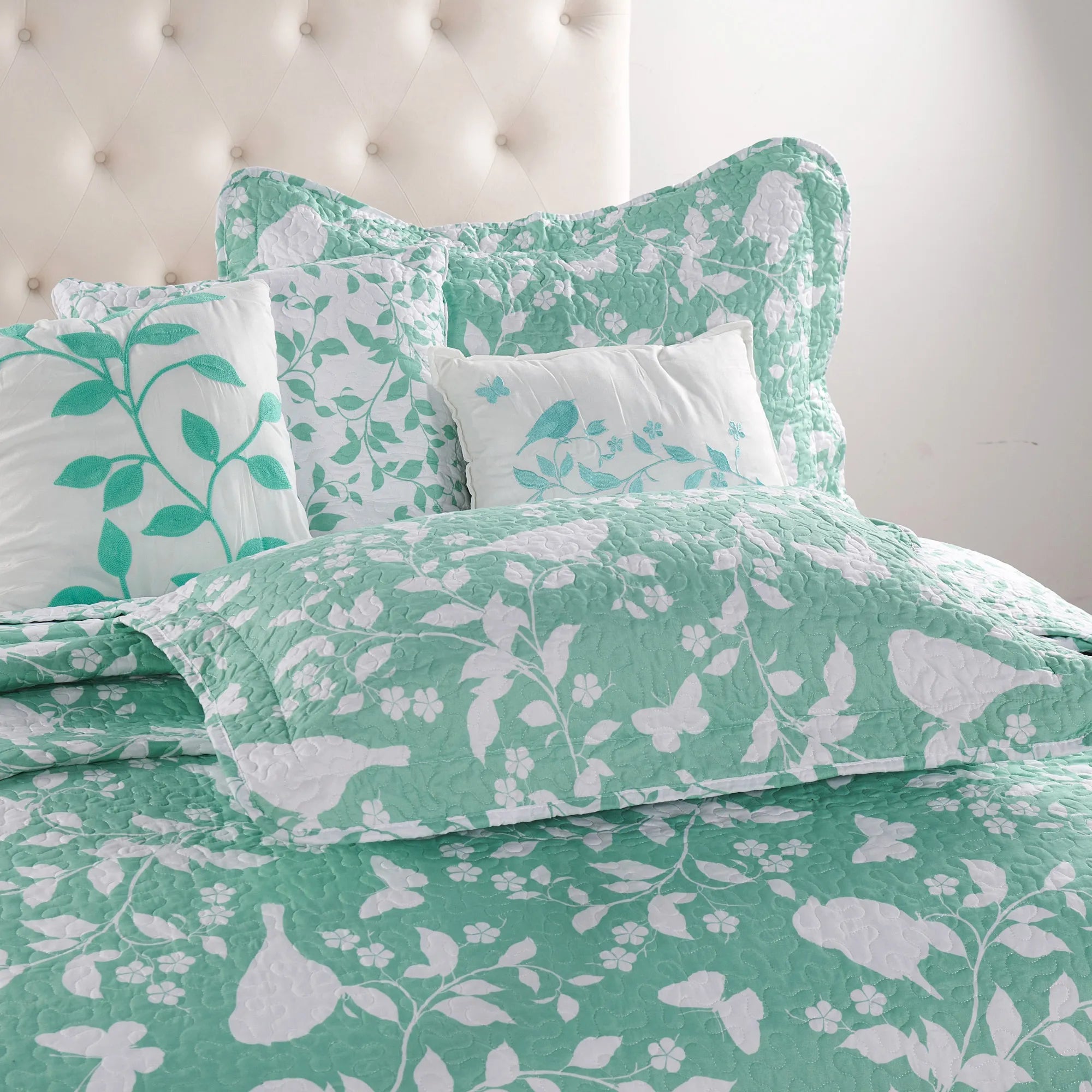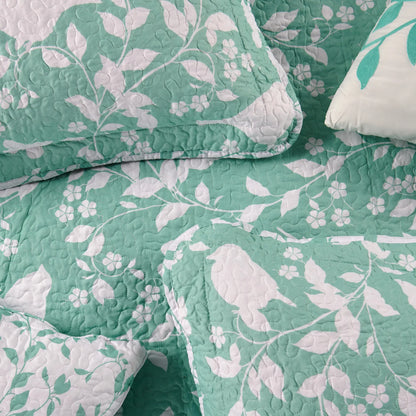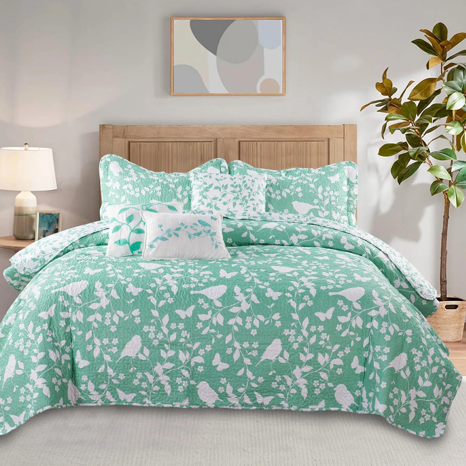 6 Piece Birdsong Printed Microfiber Quilt Set