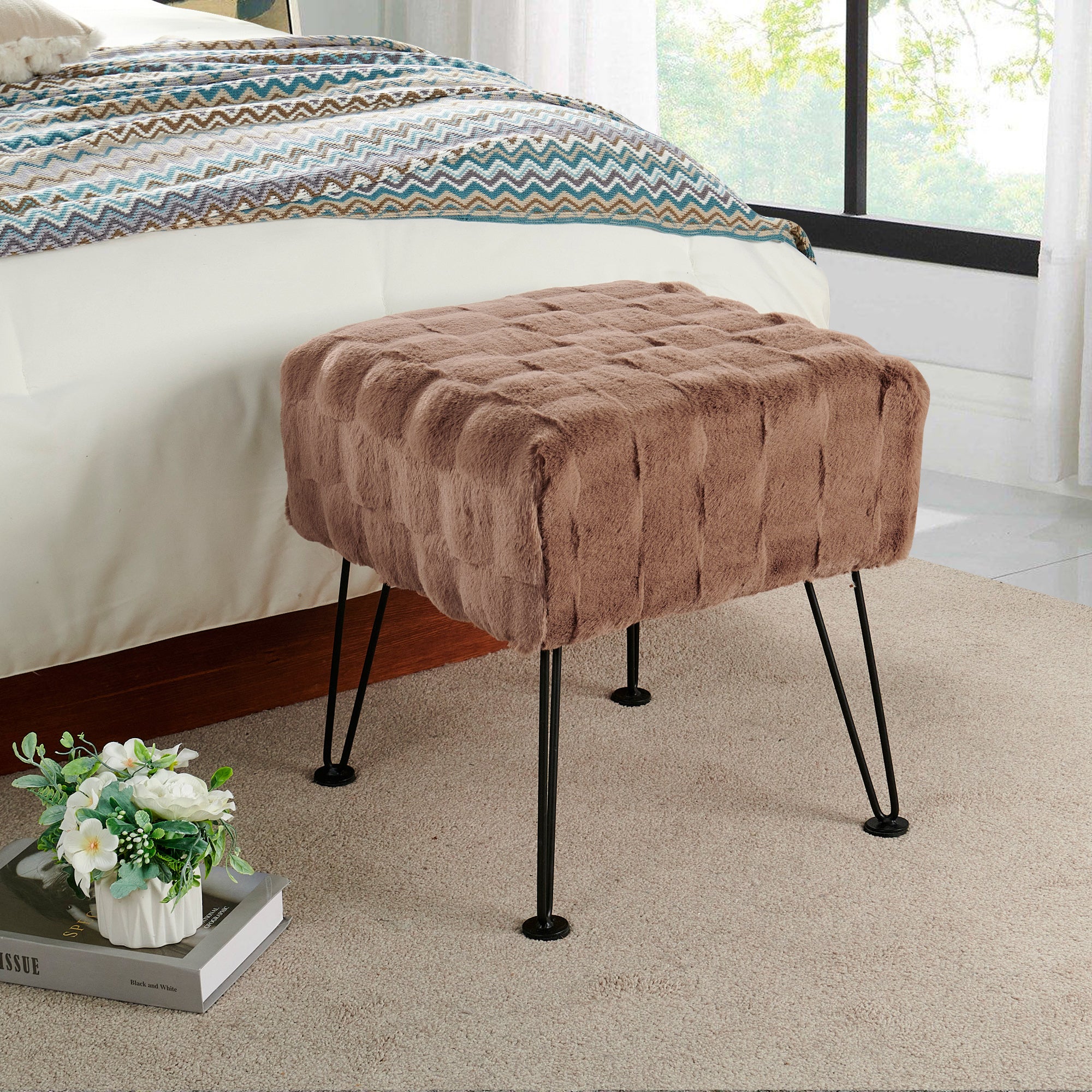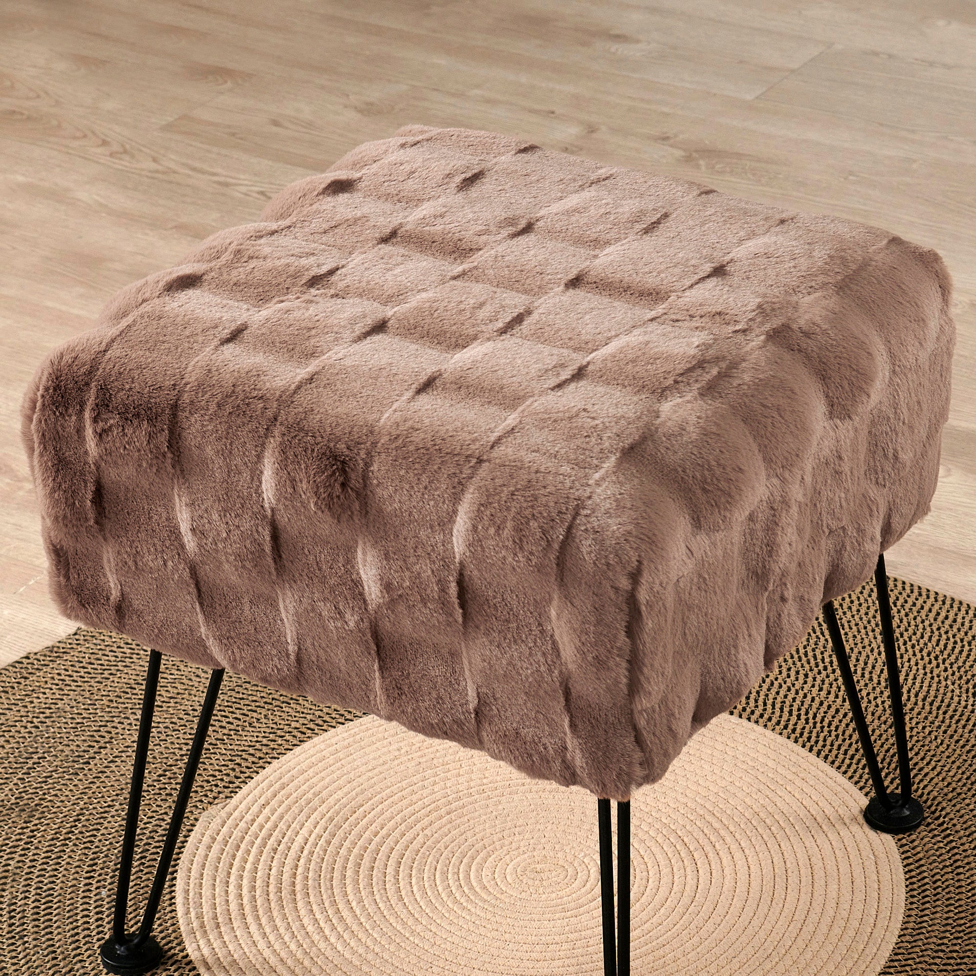 This Brick Faux Fur Stool is the perfect addition to any living space. Its 17 x 17 x 17-inch design and comfortable cushion make it safe and suitable for the entire family.