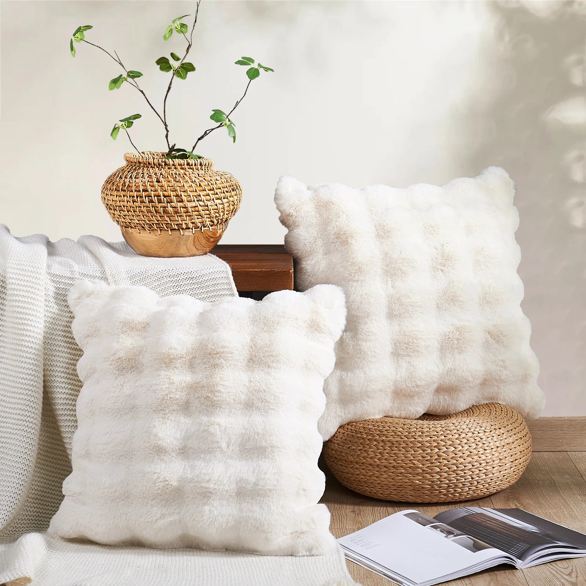 Bubble Textured Faux Fur 2 Piece Decorative Pillow Covers (20" x 20")