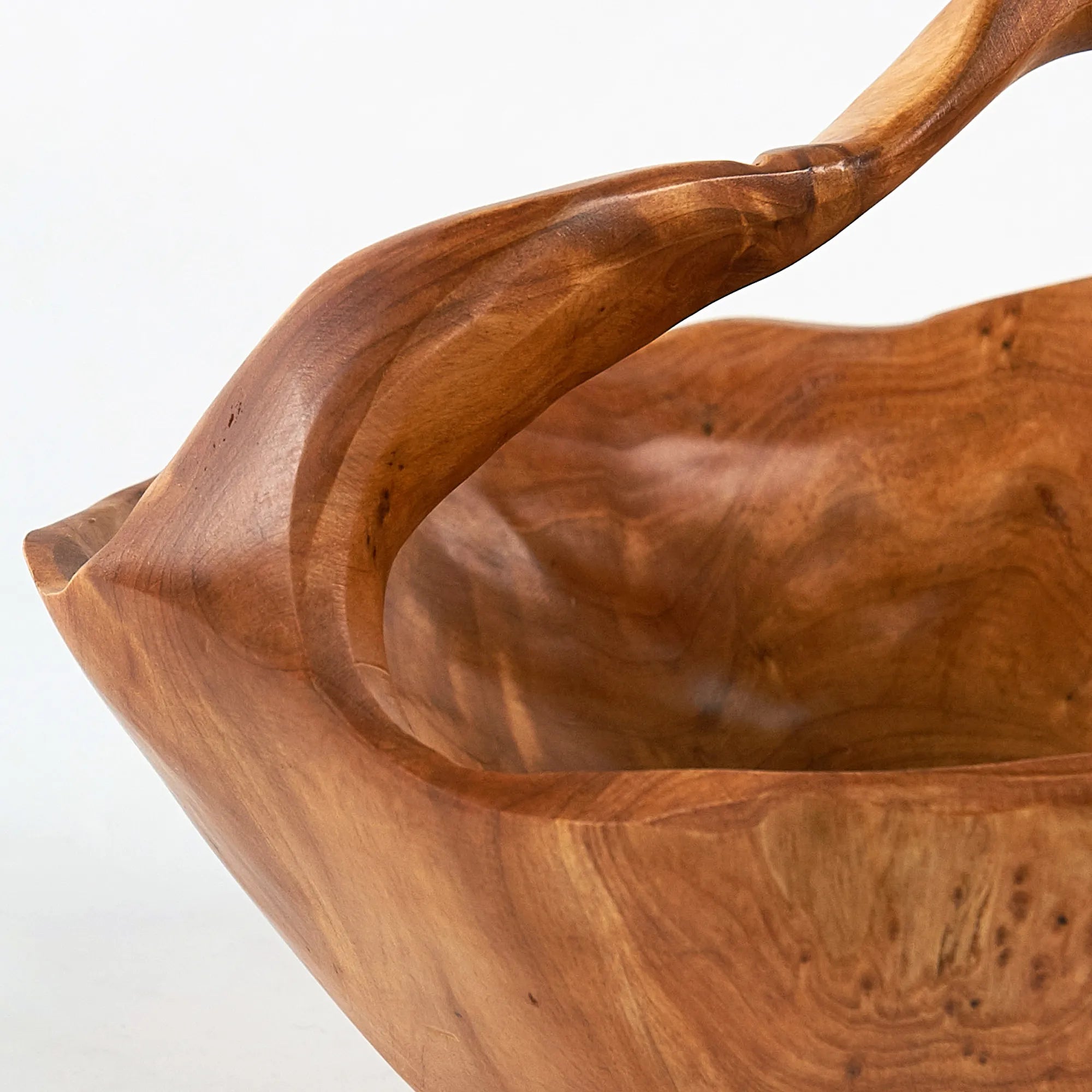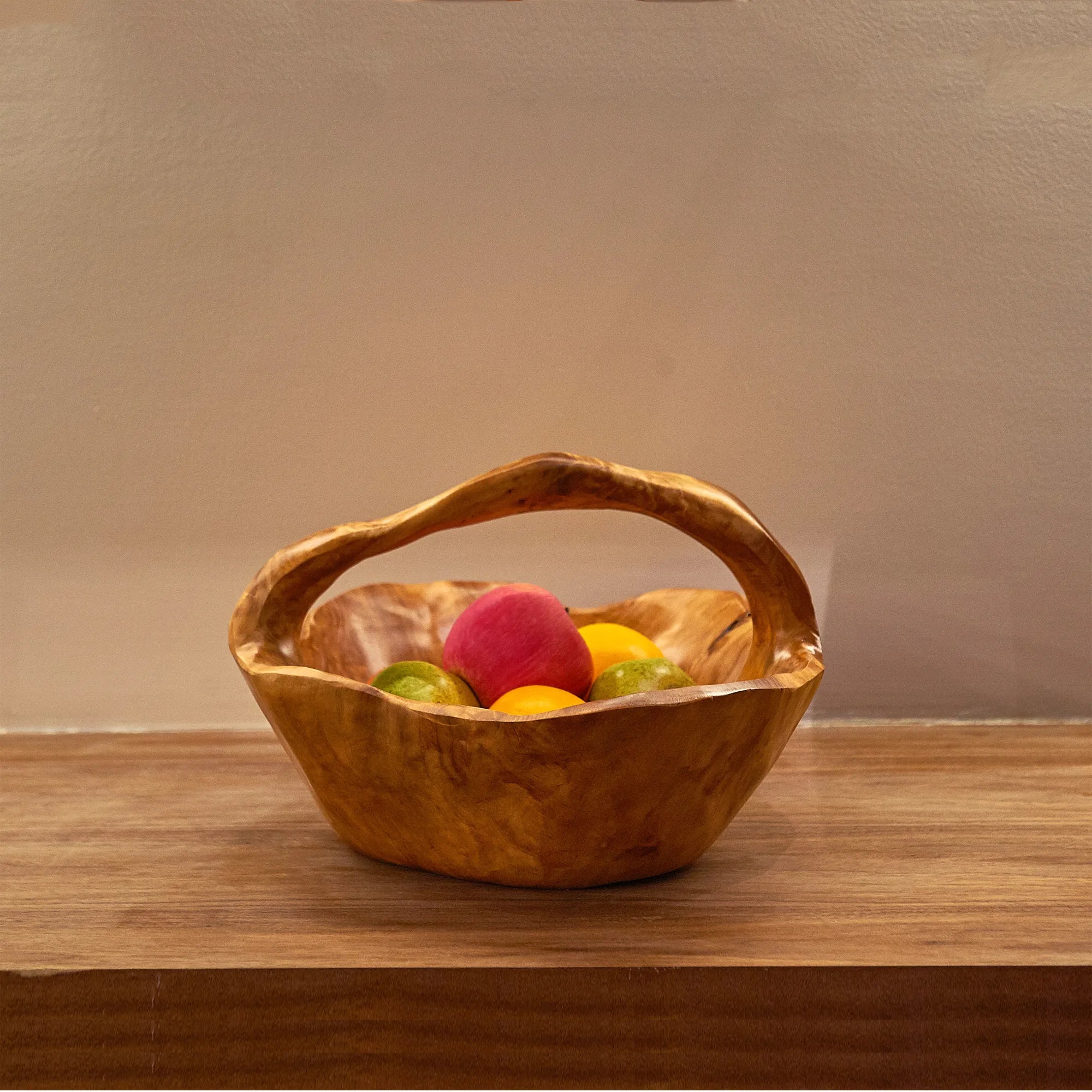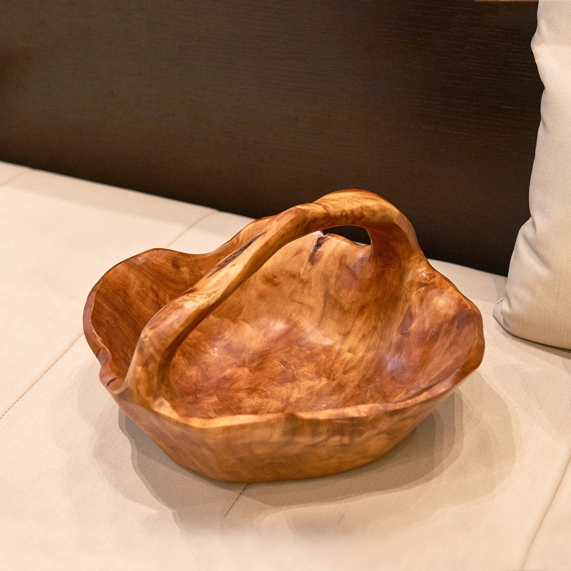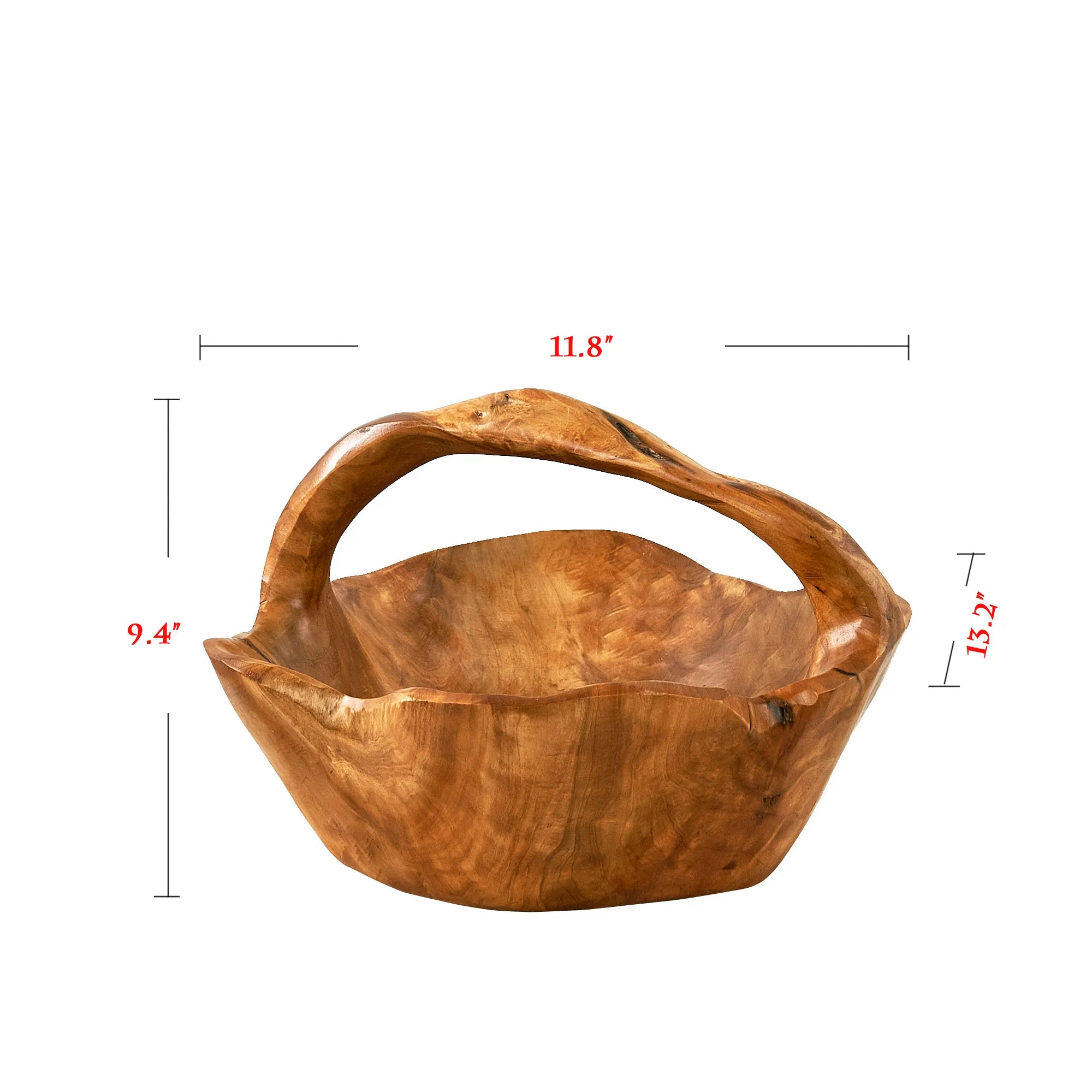 - Add a touch of nature to your home decor. This handcrafted cedar wood basket is tabletop addition. With its unique shape and distinctive grain, this decorative wood basket is ready to become the centerpiece.