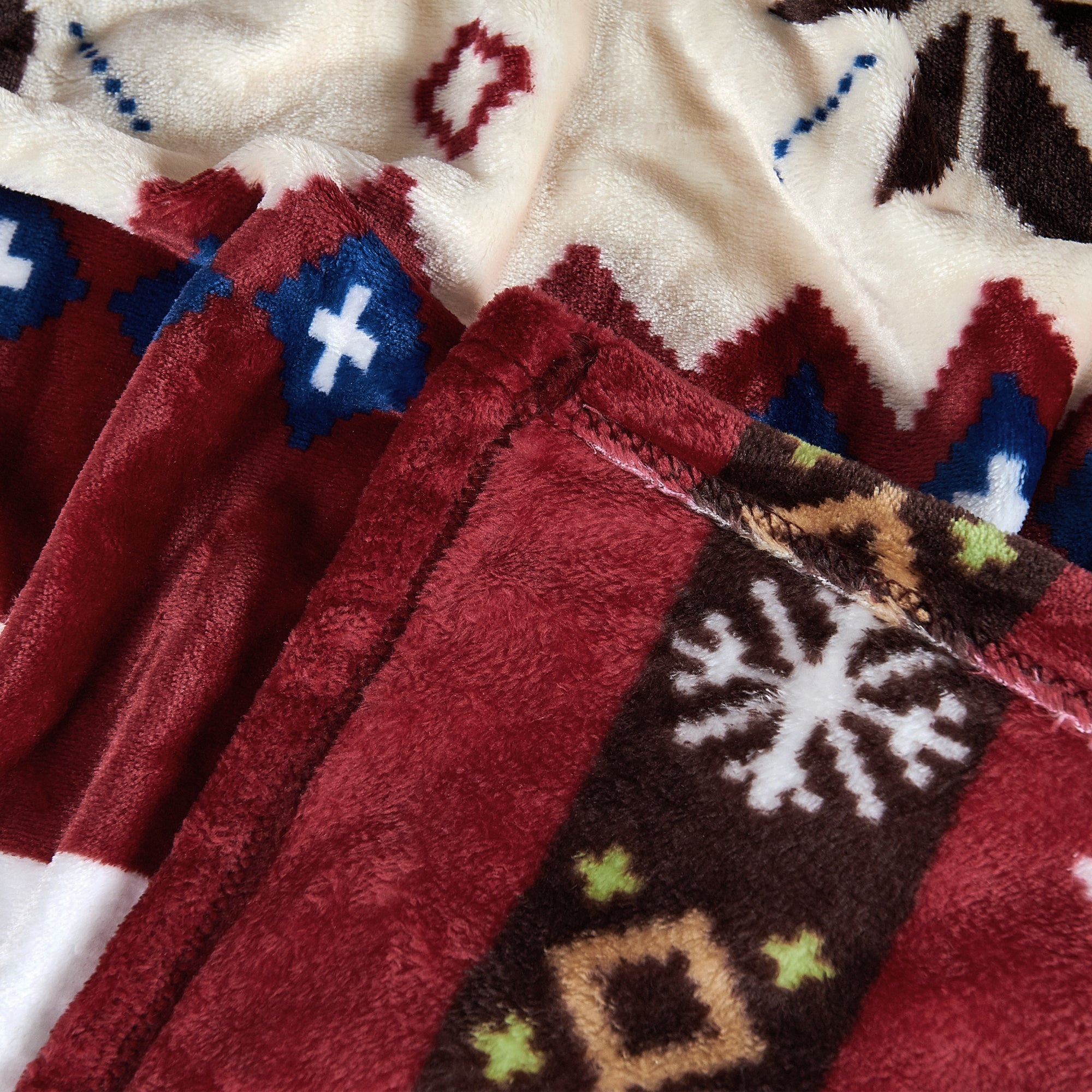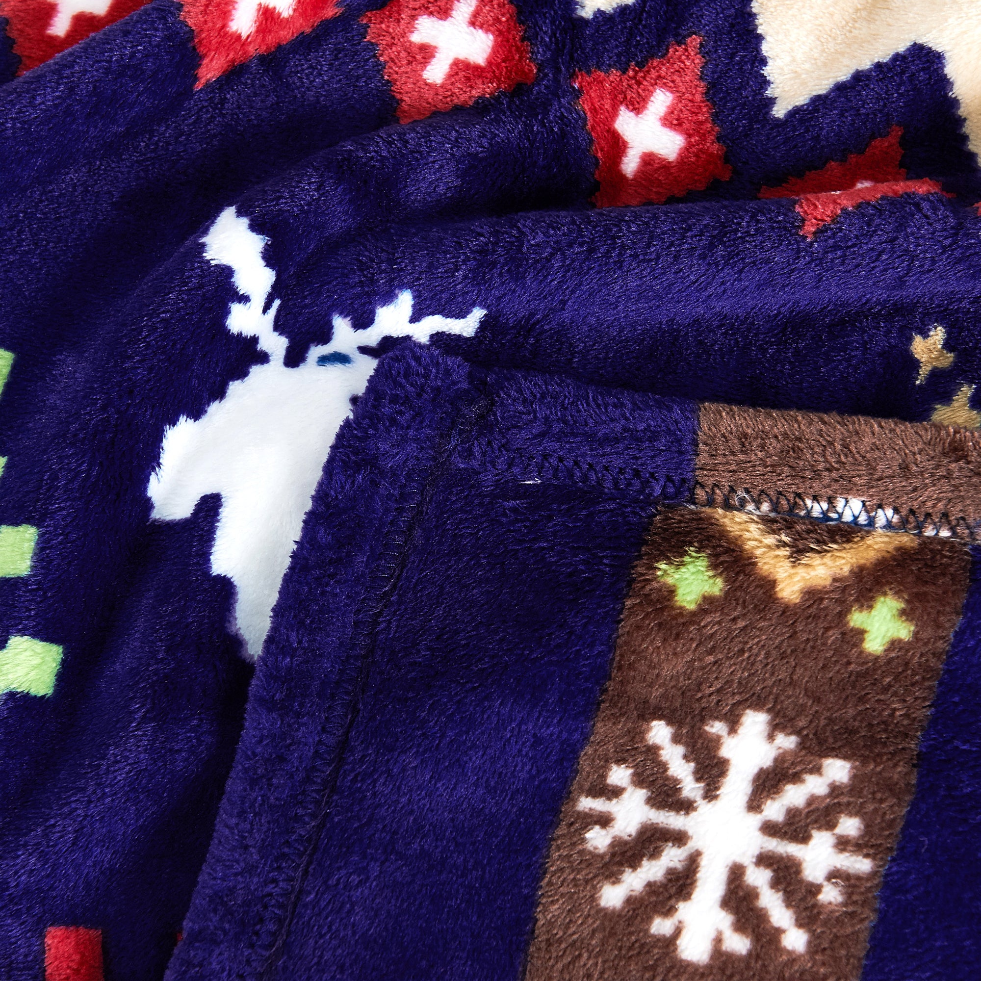 - GREAT VALUE! 2 Sizes and prints available to better suit your needs! Offered in Twin (90" x 60") and Queen (90" x 90") sizes. Christmas Deer - Striped pattern with white reindeer and snowflakes, green Christmas trees, and various printed shapes and colors throughout, offered in main colors of Blue and Burgundy. Snowflake Deer - Striped pattern with white reindeer and snowflakes with a classic pattern touch offered in Blue, Burgundy/ Pink, and Chocolate.