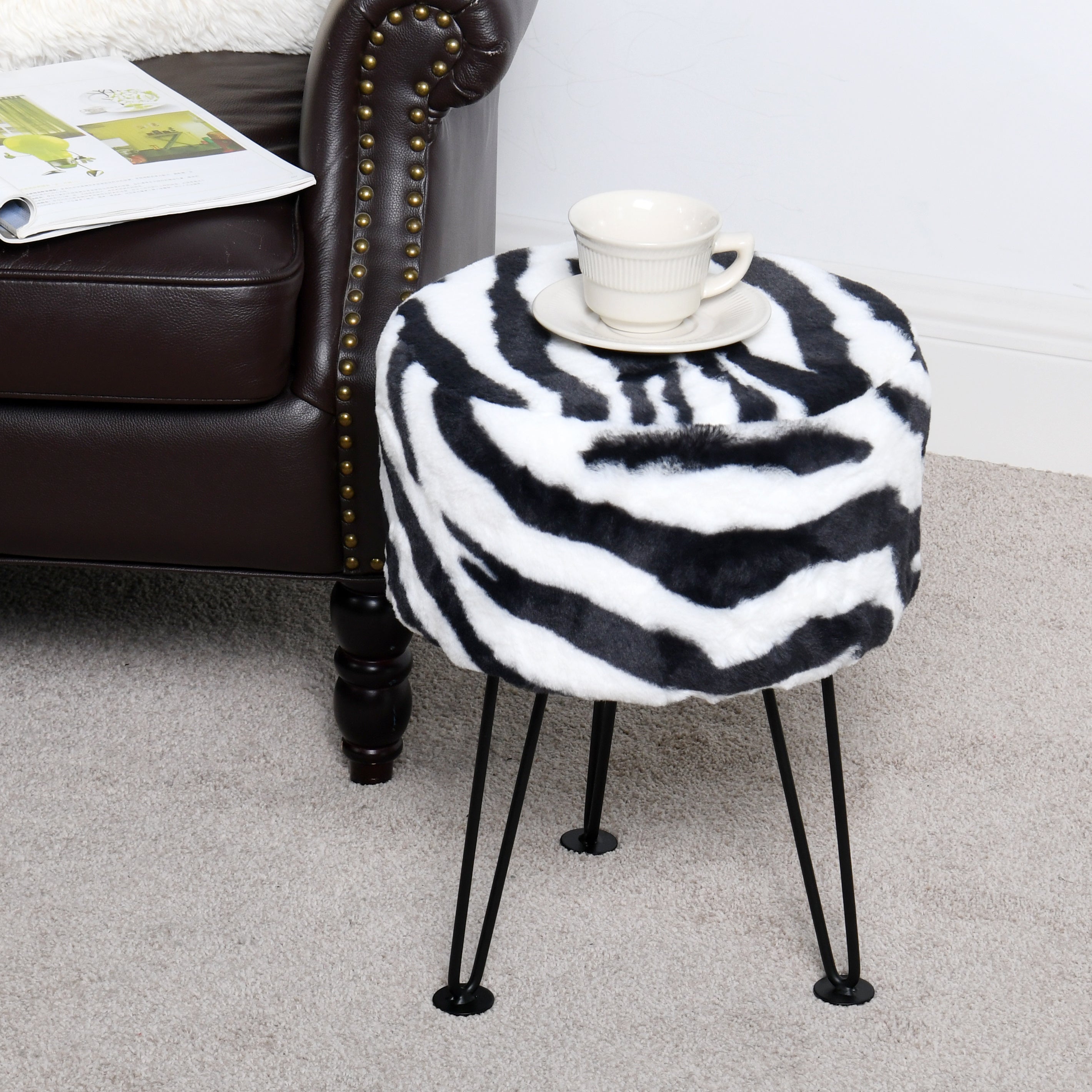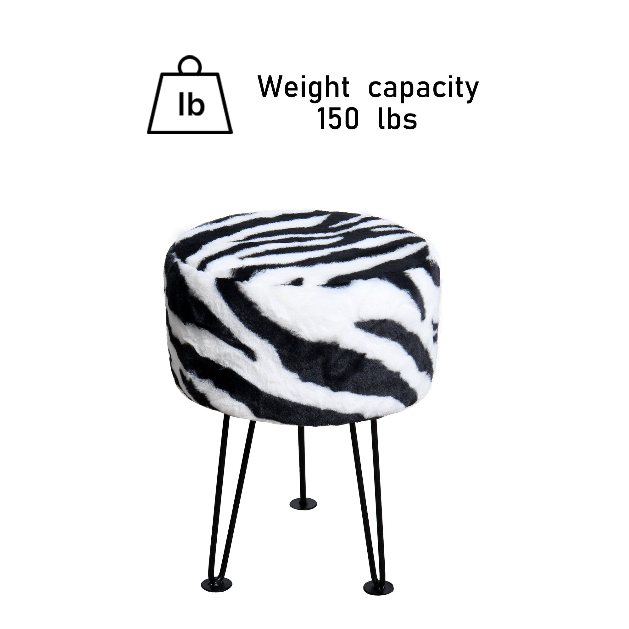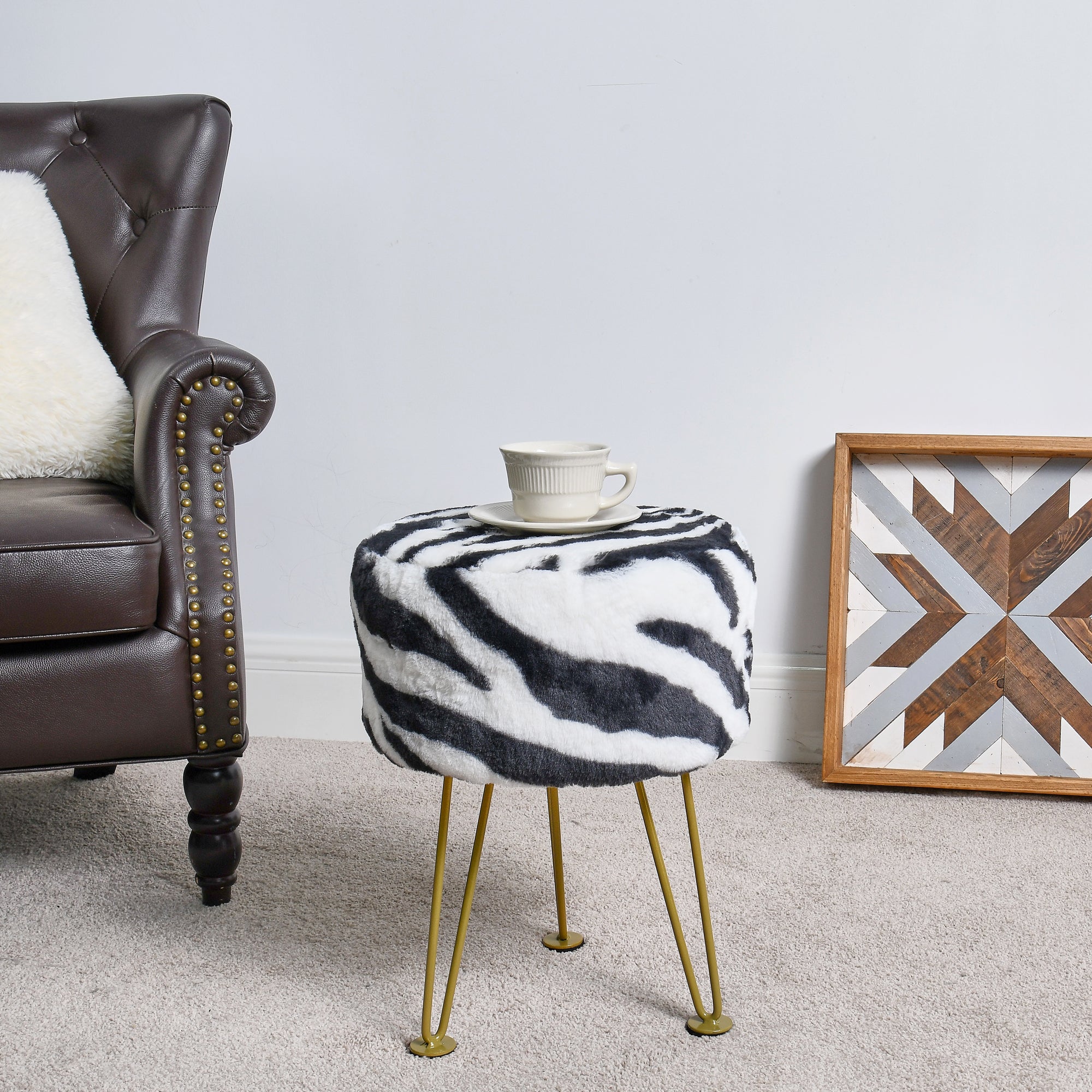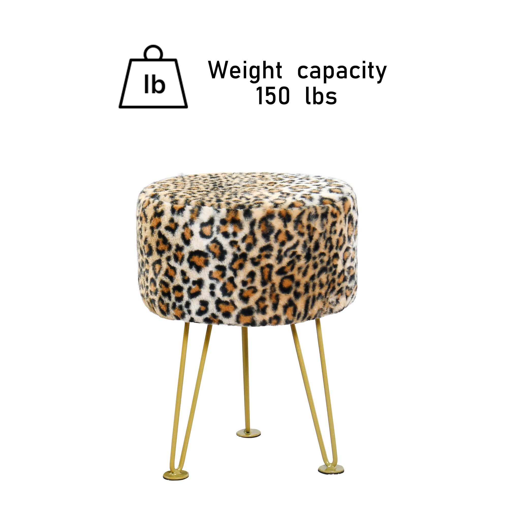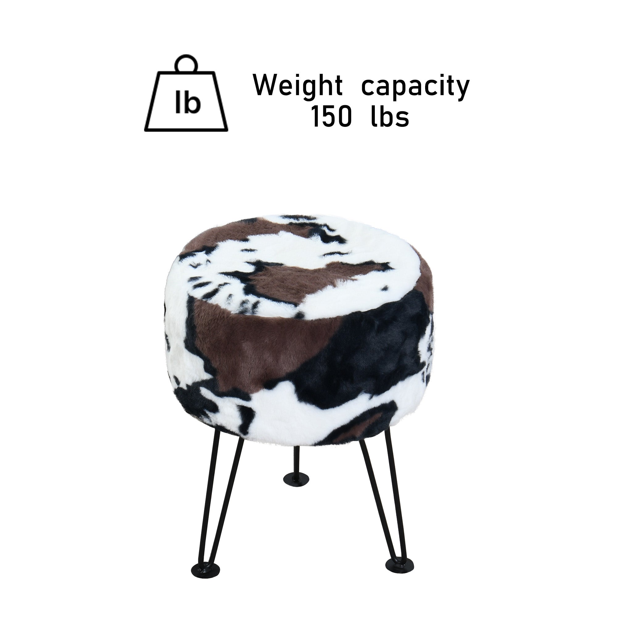 Animal Print Faux Fur Round Stool (13" x 13" x 17")