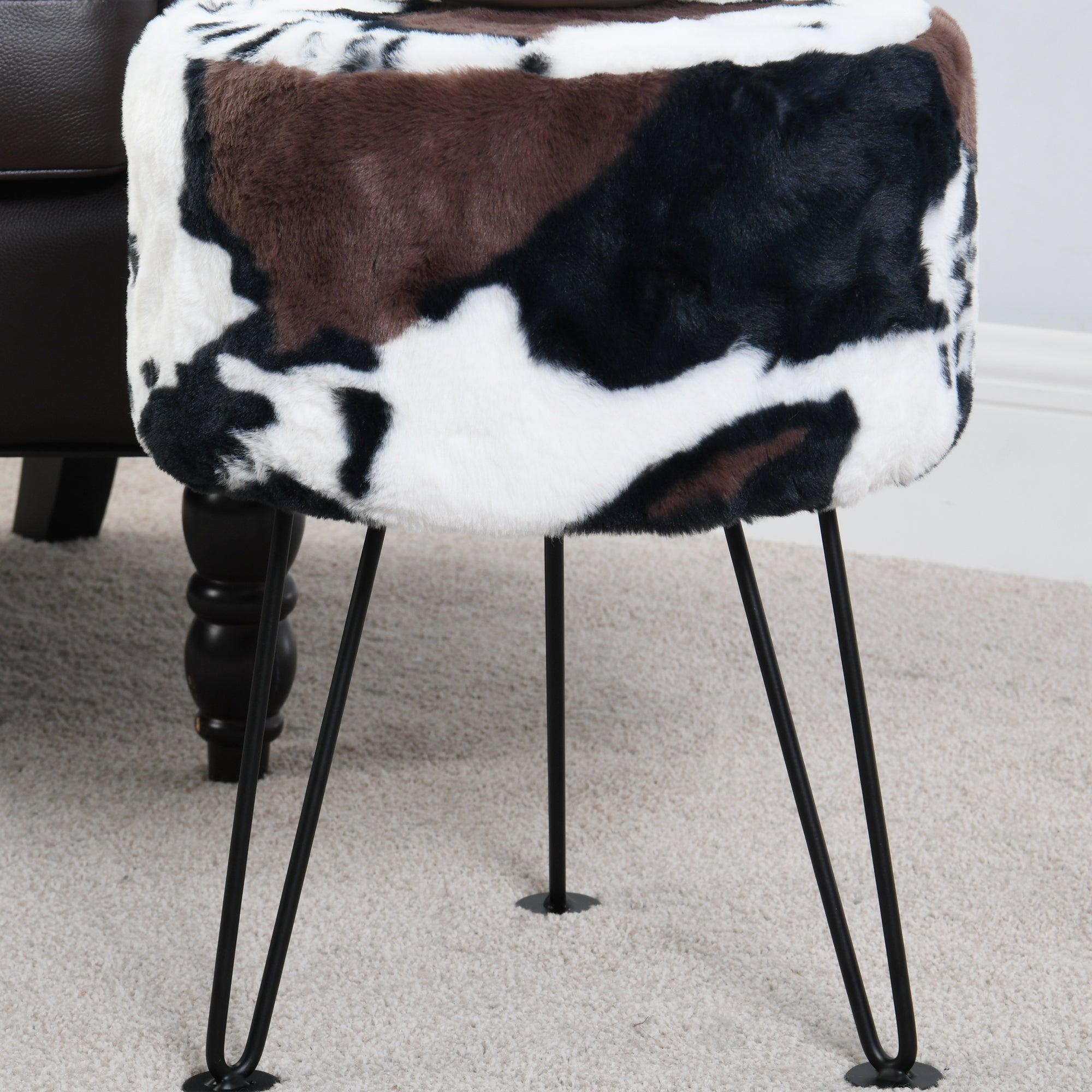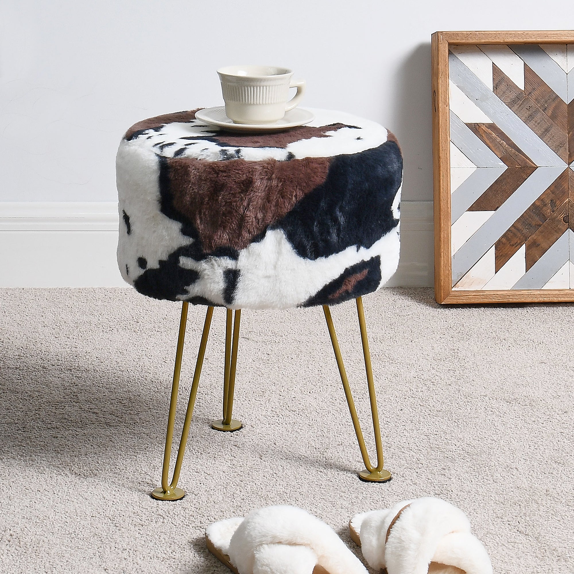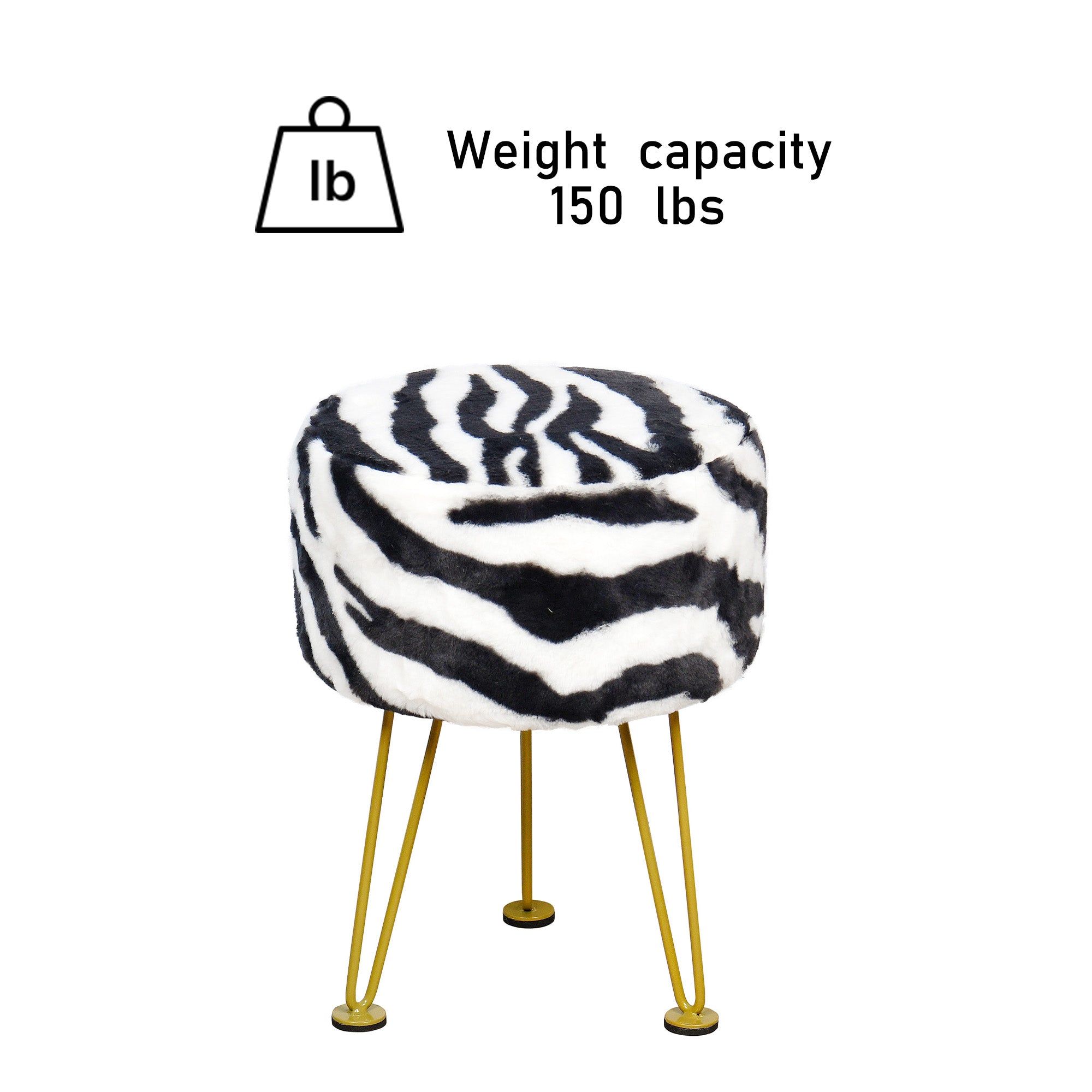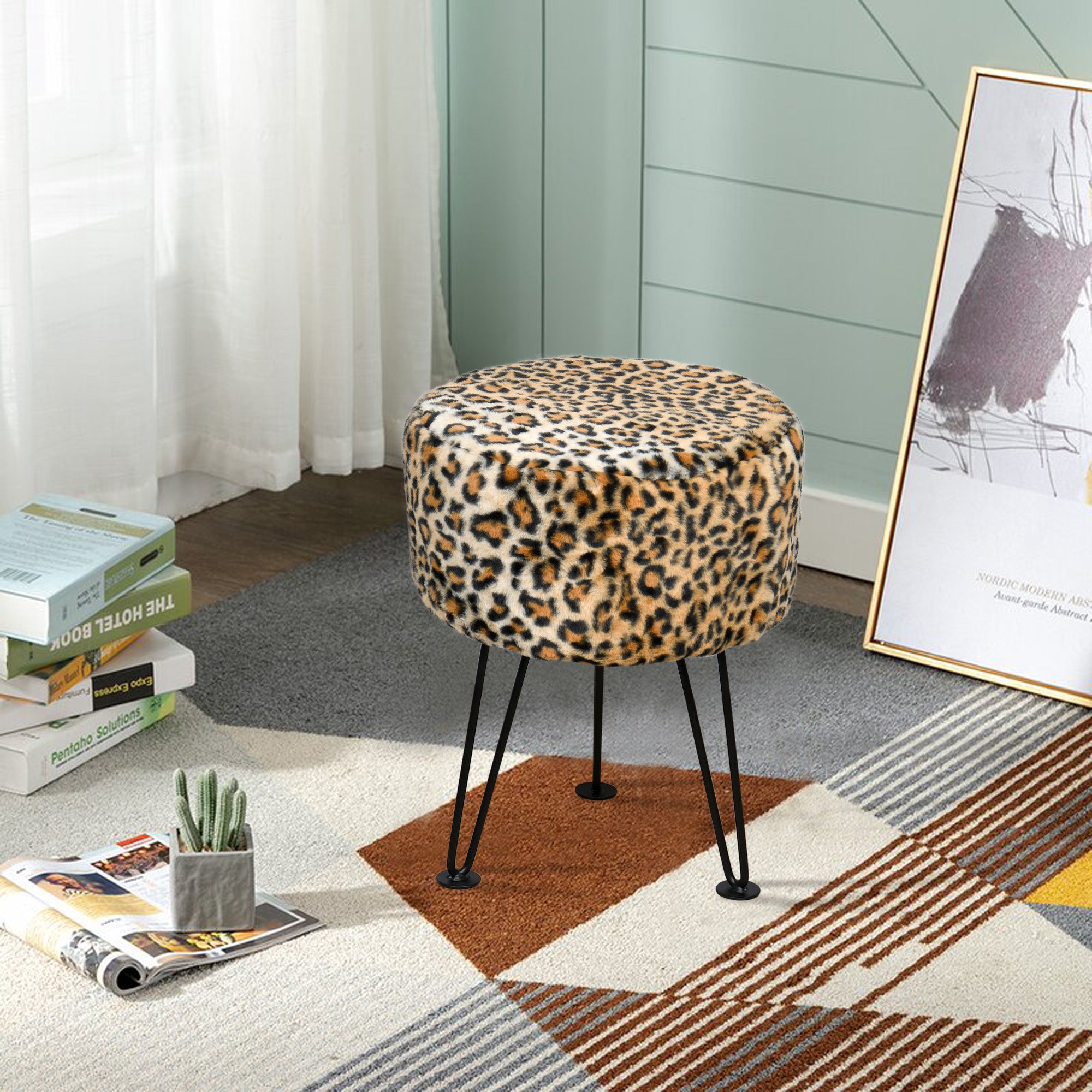 Animal Print Faux Fur Round Stool (13" x 13" x 17")