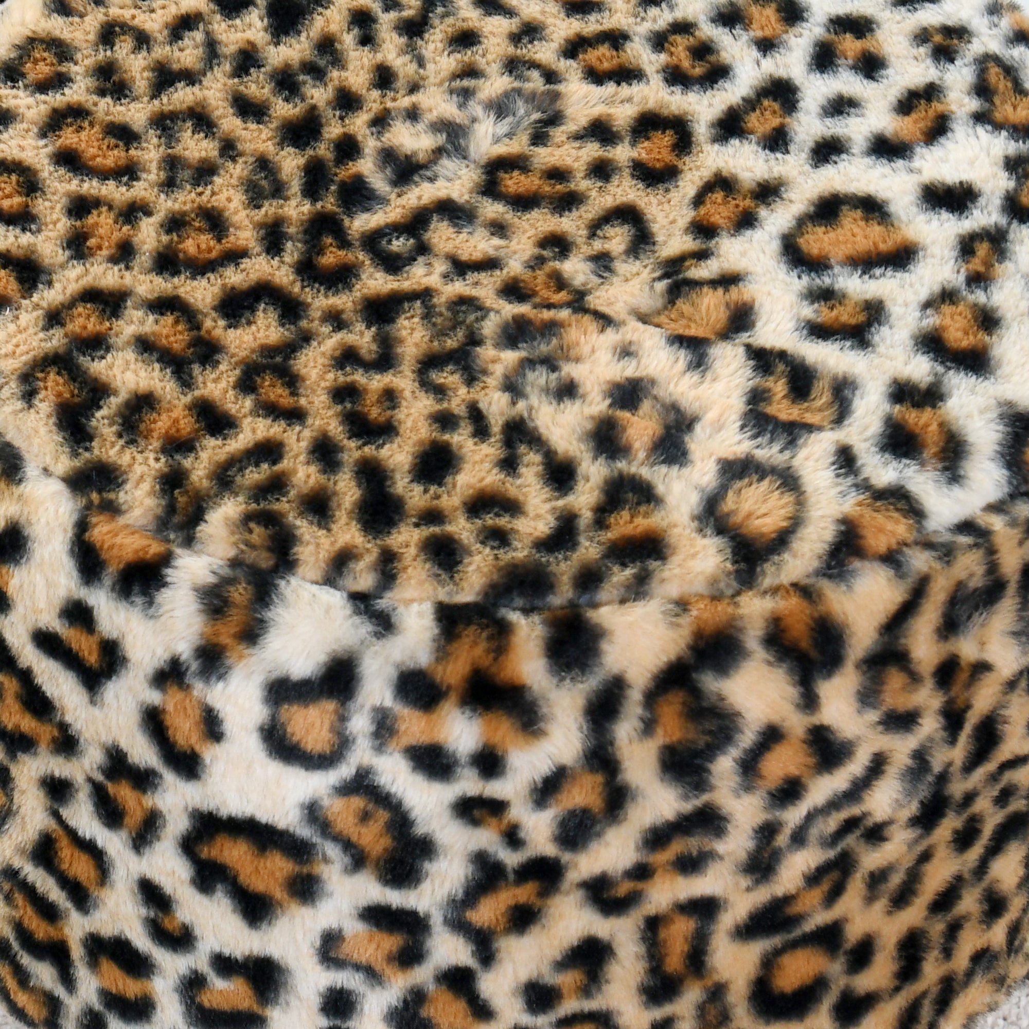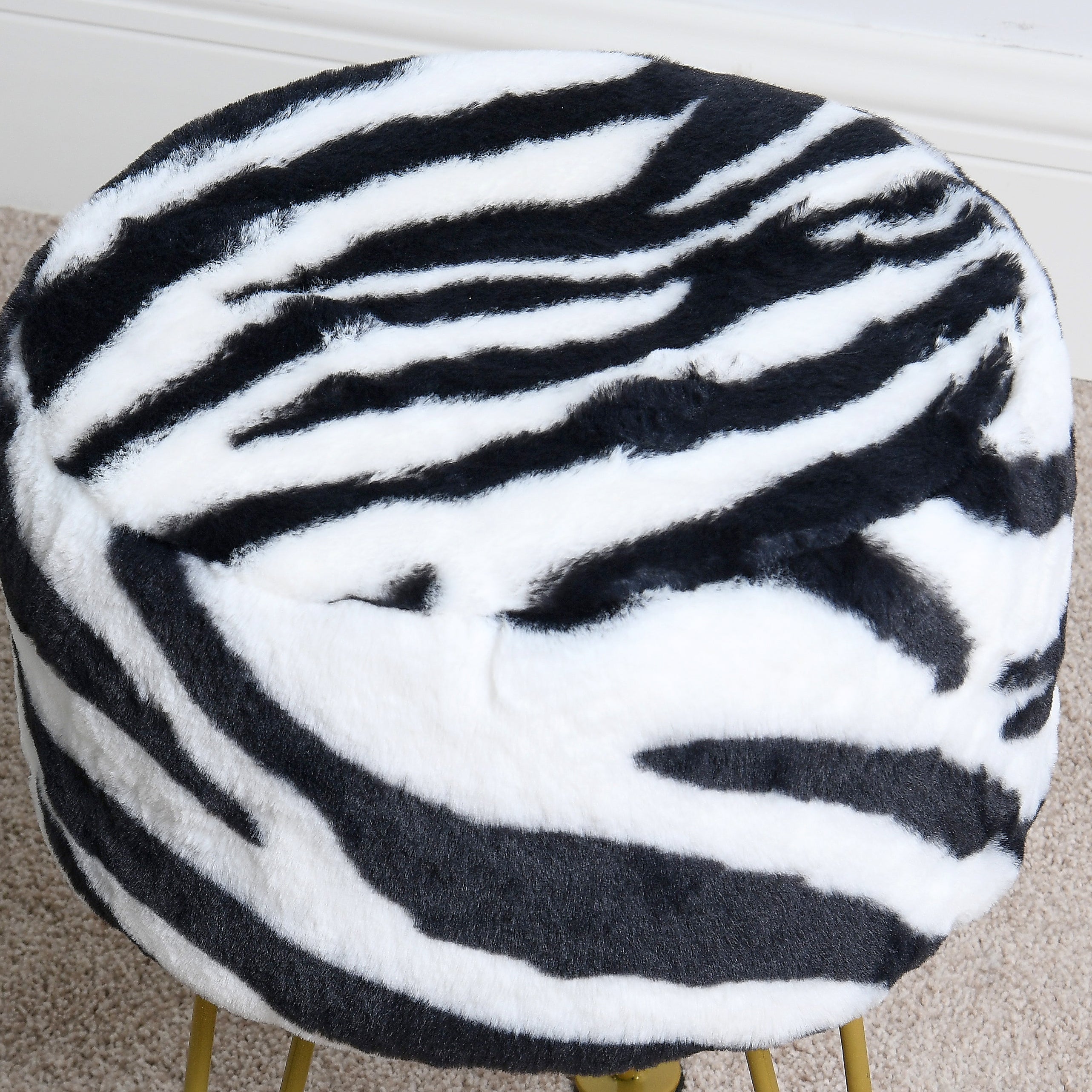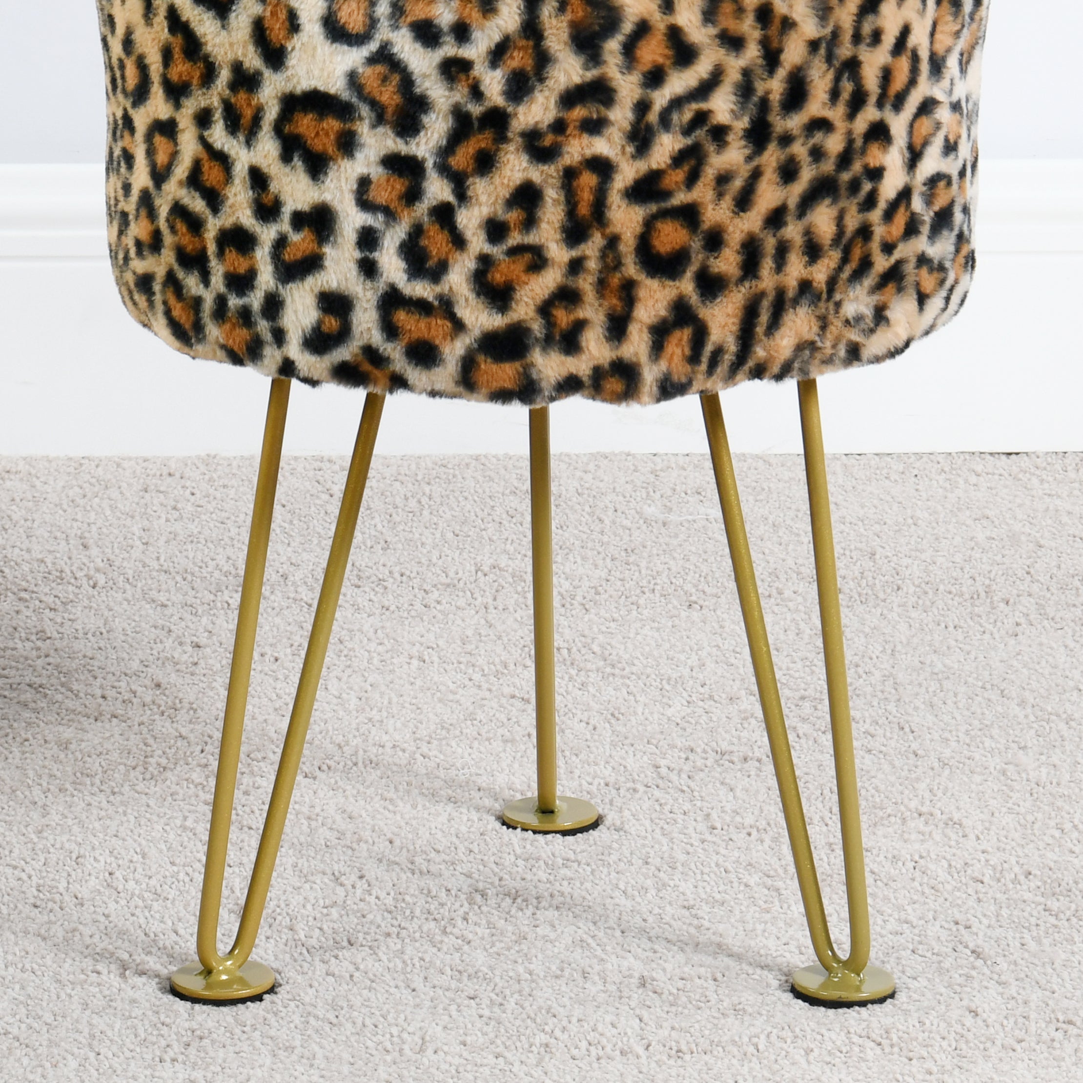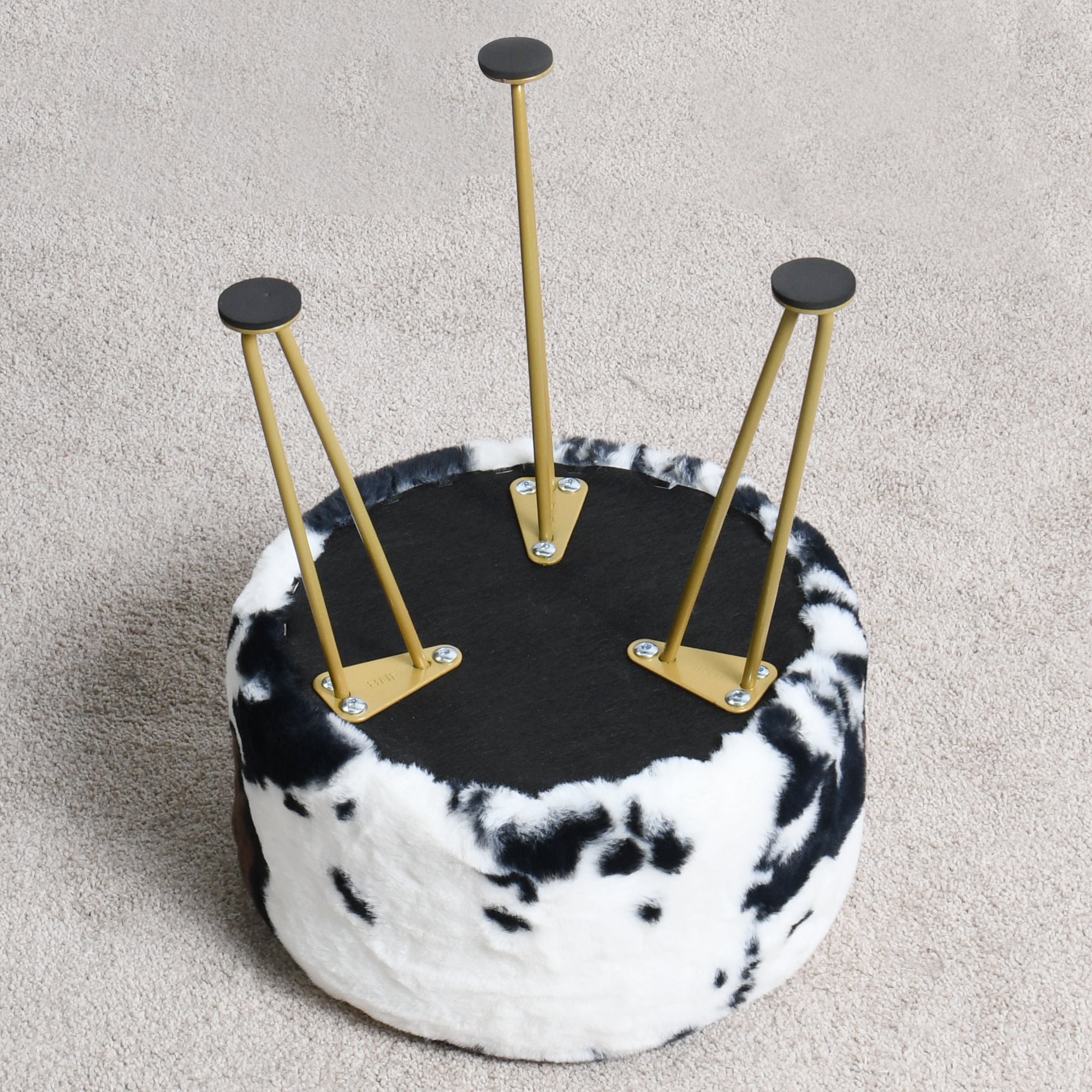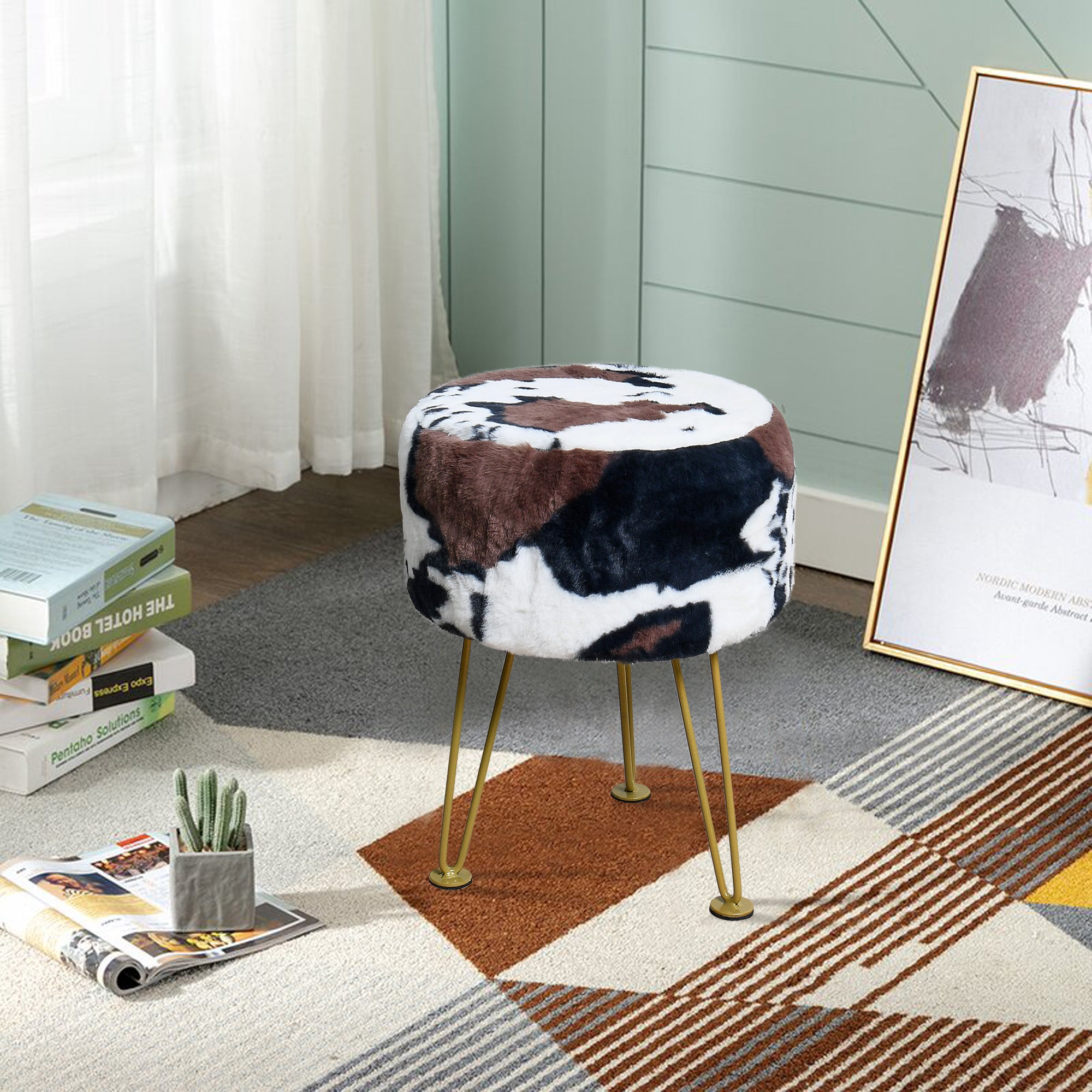 Animal Print Faux Fur Round Stool (13" x 13" x 17")