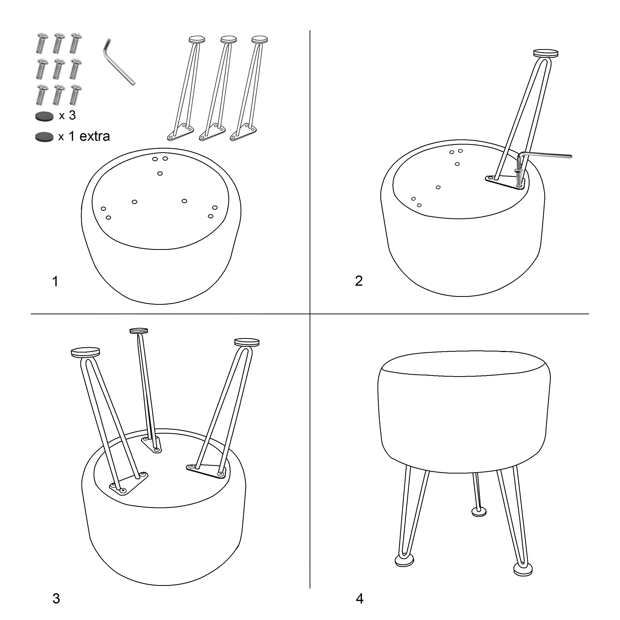 - MINOR ASSEMBLY! Simply screw metal hairpin legs into each corner of the bench with the provided screws and your bench is ready to enjoy. Be prepared with a Phillips screwdriver. Hairpin legs and screws arrive in the hidden zipper compartment under the seat. Designed and manufactured by Home Soft Things, the trusted source for stylish textile goods and furniture.