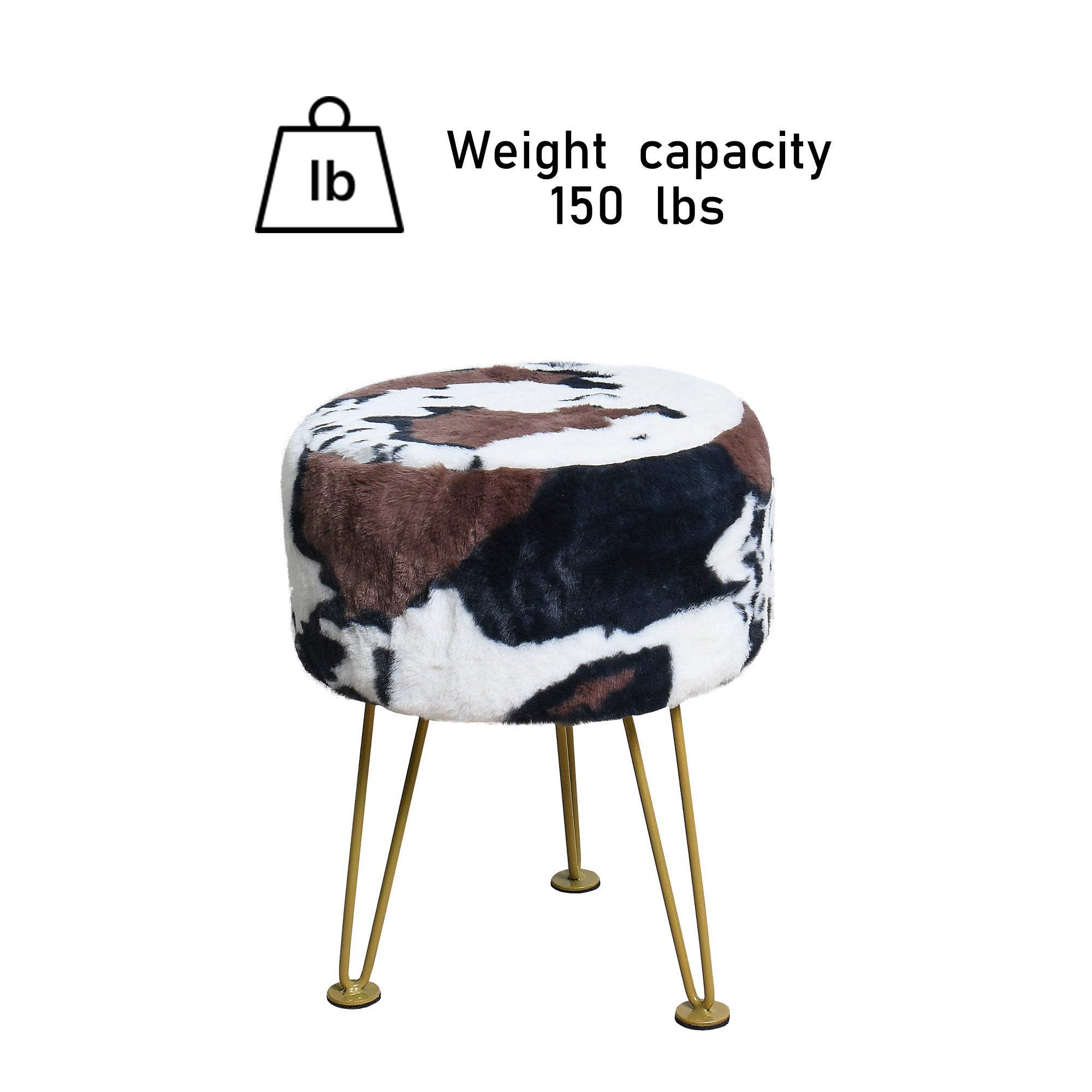 - DIMENSION! This cow ottoman measurement is 13 L x 13 W x 17 H inches when assembled and offers a 150-pound capacity. Metal hairpin legs are sturdy and durable to withstand full weight capacity.