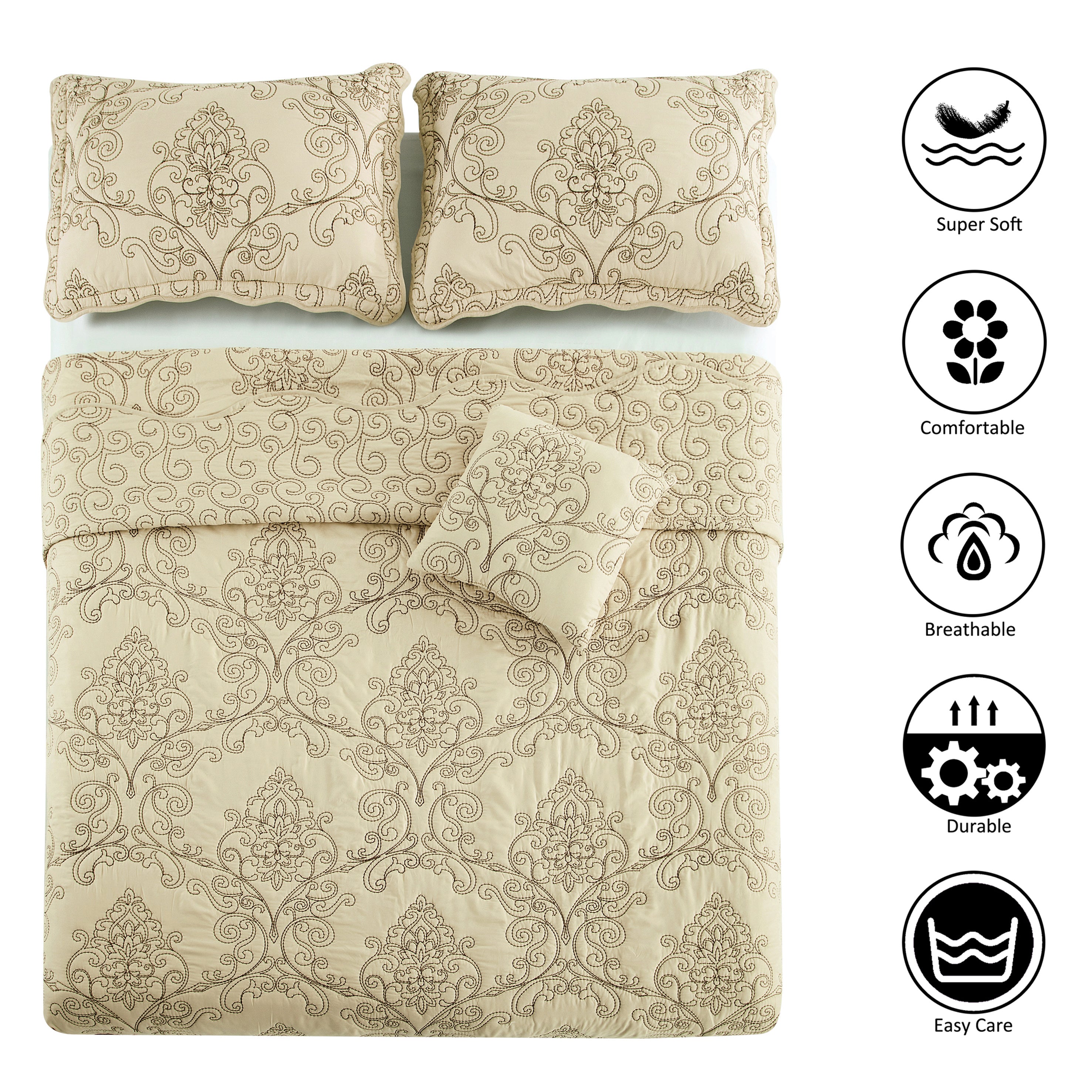 • Universal Style: With its classic embroidery and refined design, this bedspread set complements a wide range of décor styles, from minimalist to traditional, making it a versatile addition to any bedroom aesthetic.