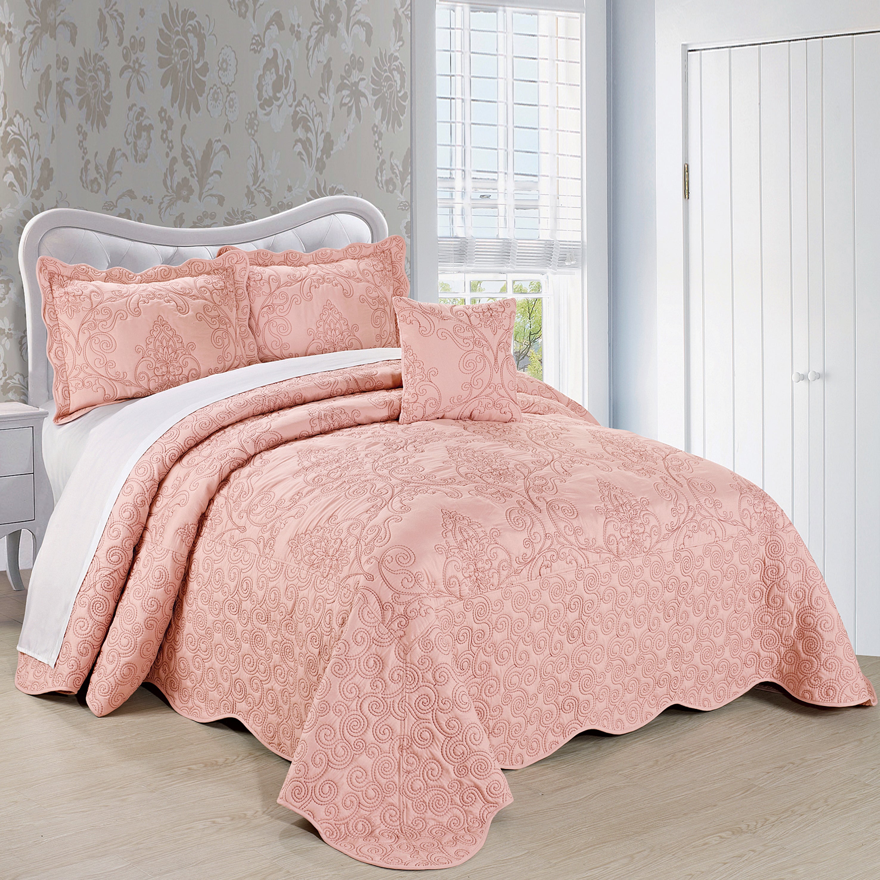 • Oversize King Set includes: 1 Bedspread (120" x 120") , 2 Pillow Shams (36" x 20" +2") and 1 Decorative Pillow: 16” x 16”; Oversize Queen Set includes: 1 Bedspread (110" x 120"), 2 Pillow Shams (26" x 20" +2") and 1 Decorative Pillow: 16” x 16”; King Set includes: 1 Bedspread (102" x 90"), 2 Pillow Shams (36" x 20" +2") and 1 Decorative Pillow: 16” x 16”; Queen Set includes: 1 Bedspread (90" x 90"), 2 Pillow Shams (26" x 20" +2") and 1 Decorative Pillow: 16” x 16”