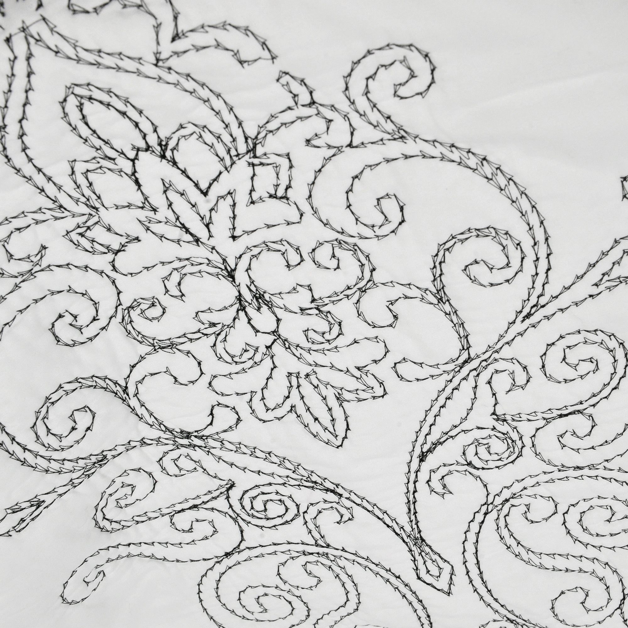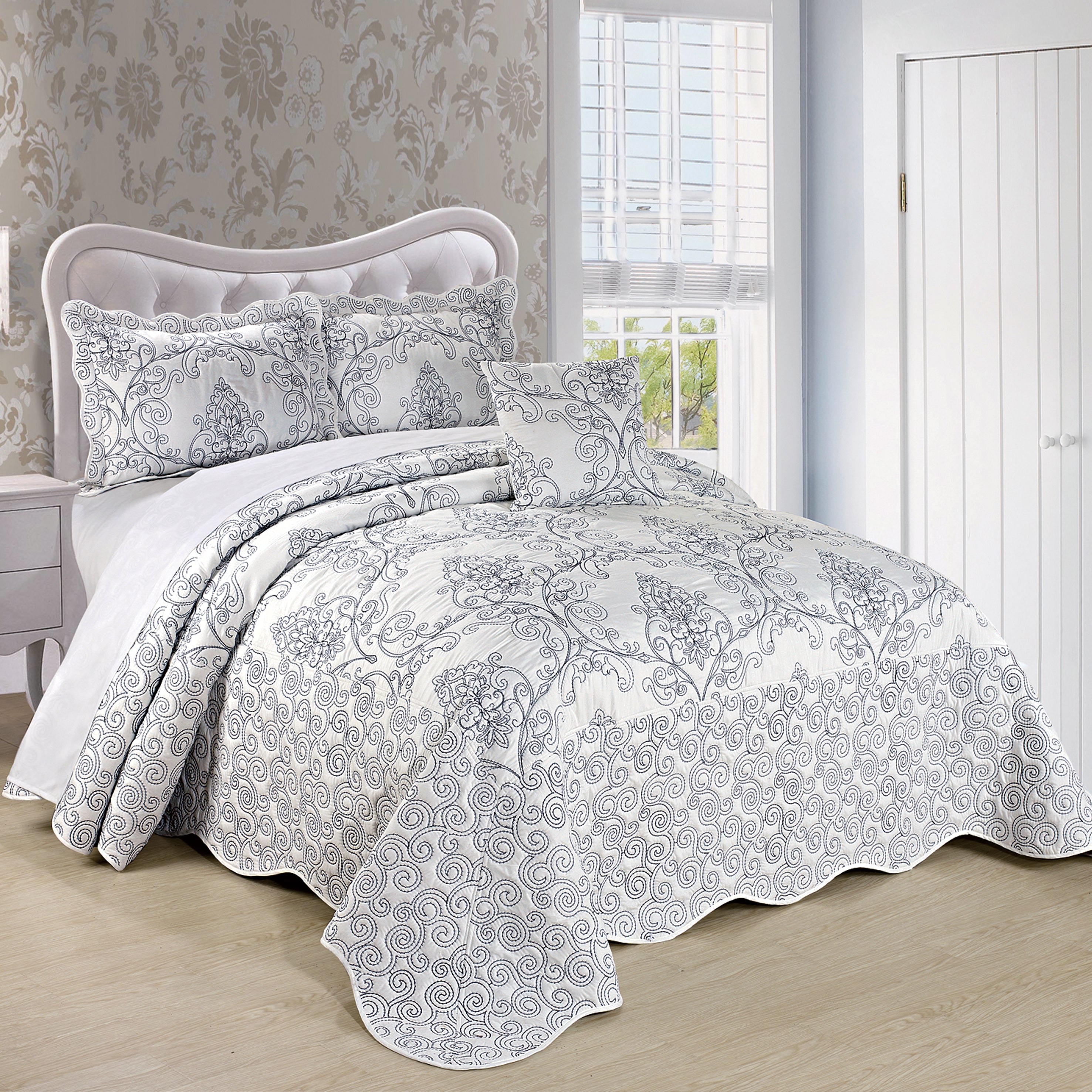 • Construction: Expertly embroidered with intricate detailing and finished with elegant scalloped edges. The oversized quilted design drapes beautifully to the floor, eliminating the need for a bed skirt, offering a luxurious, seamless look.