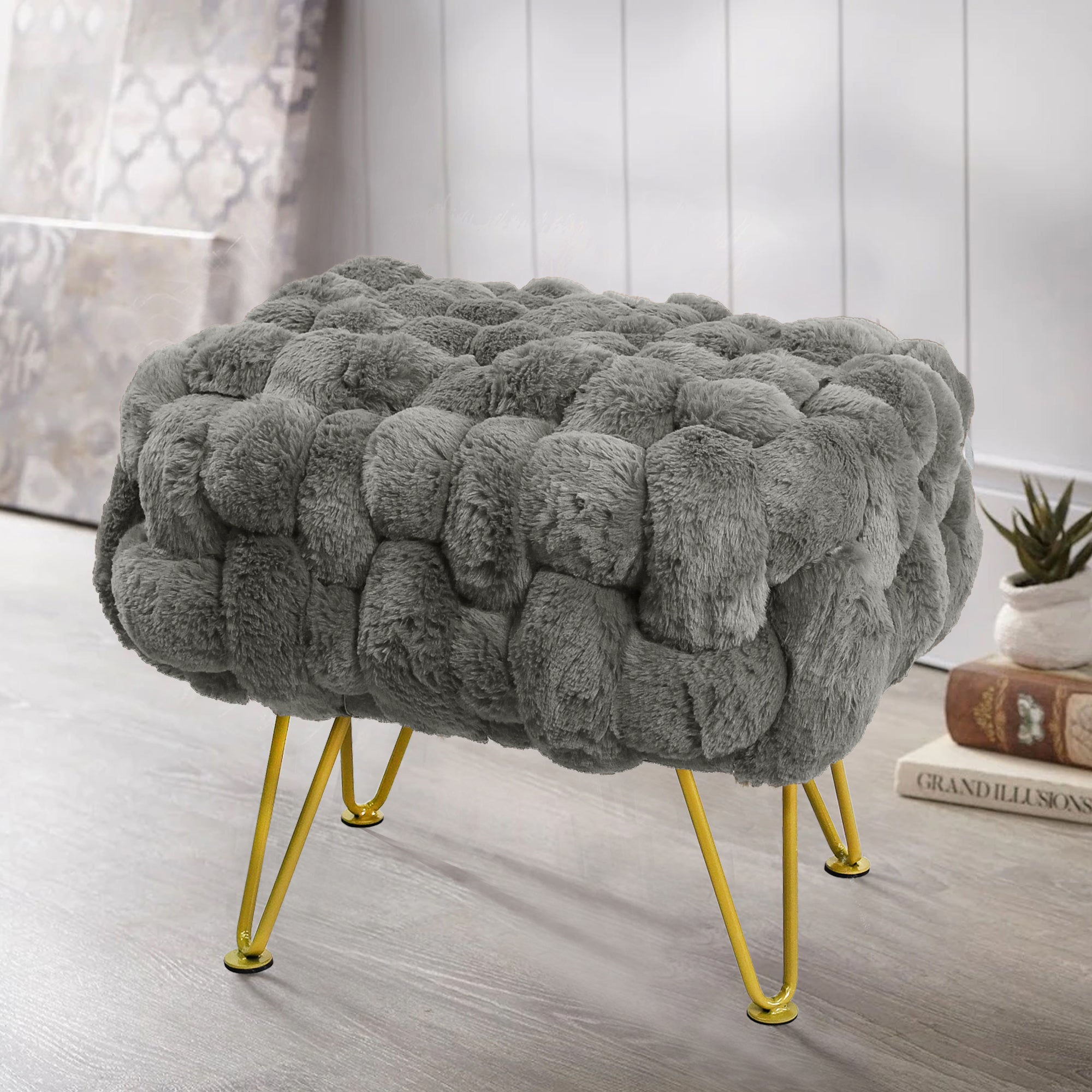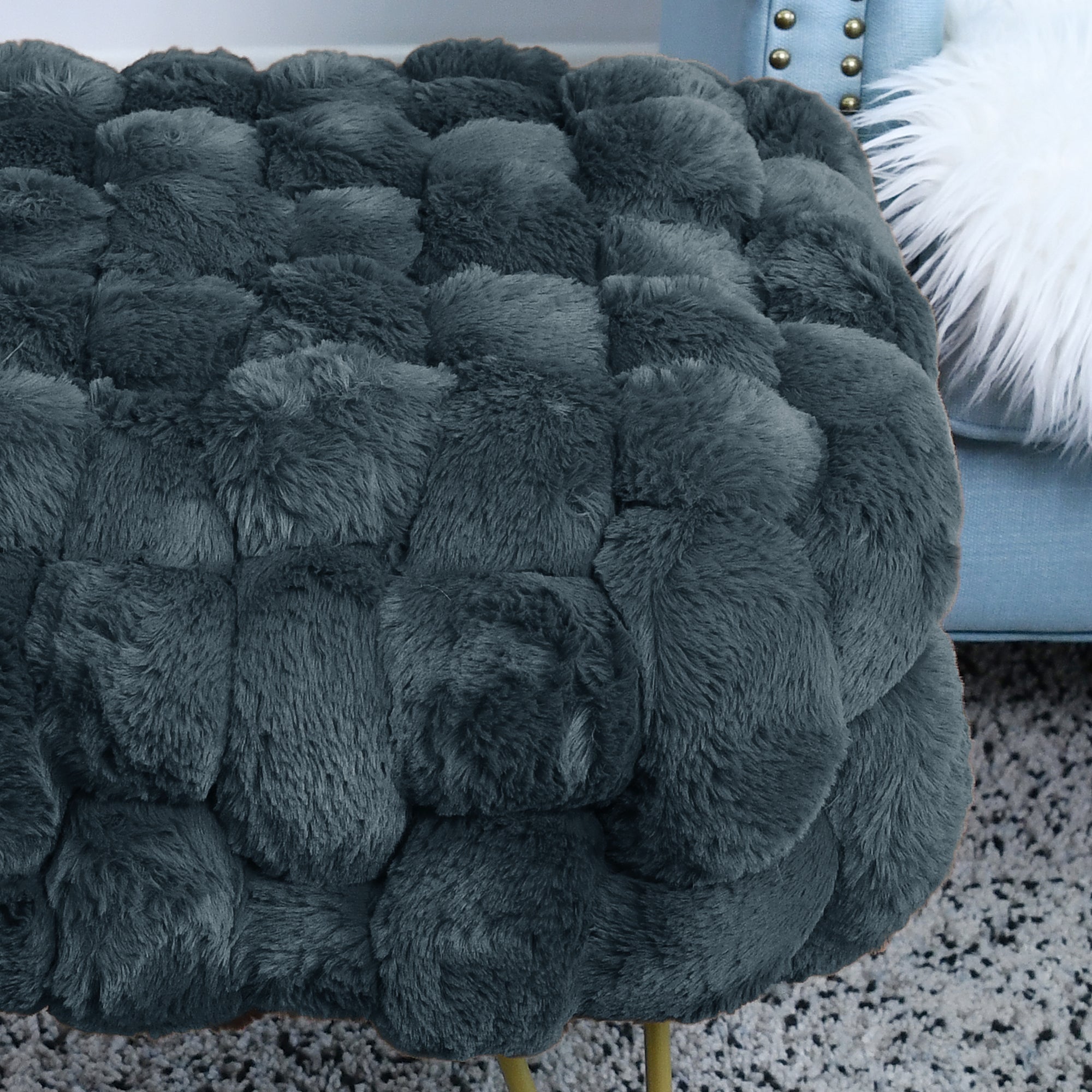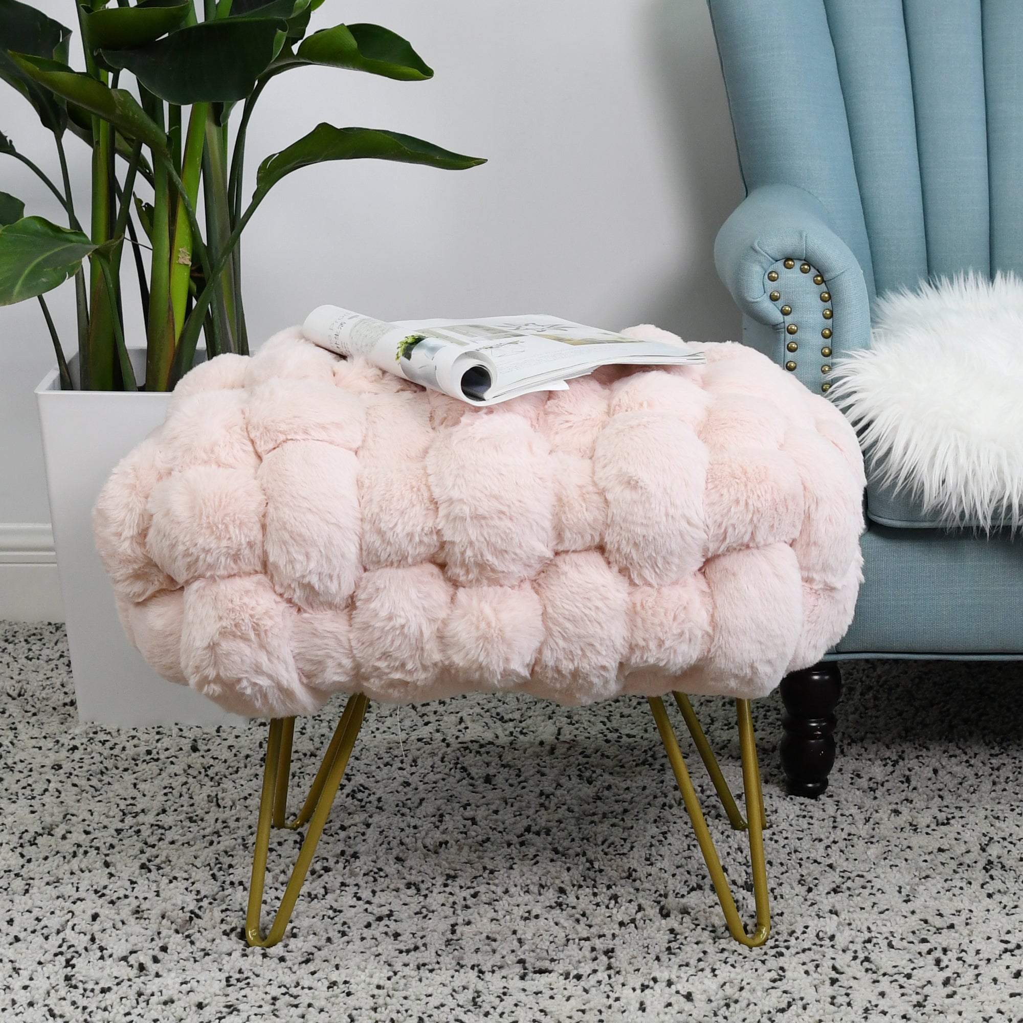 Faux Fur Pouf Stool (27" x 20" x 10")
