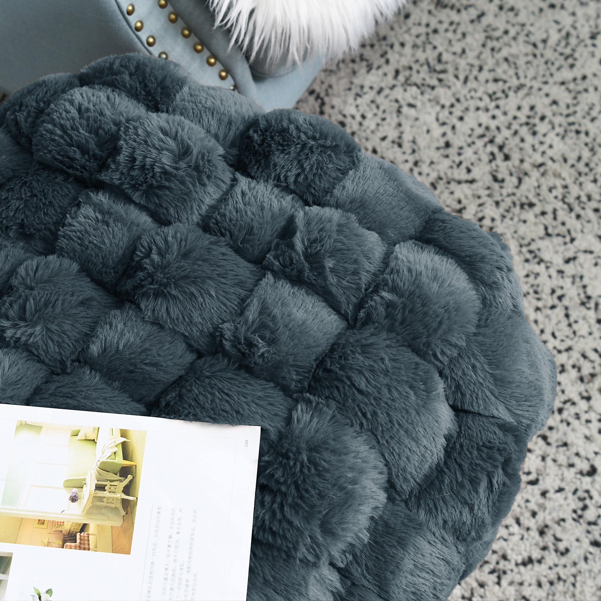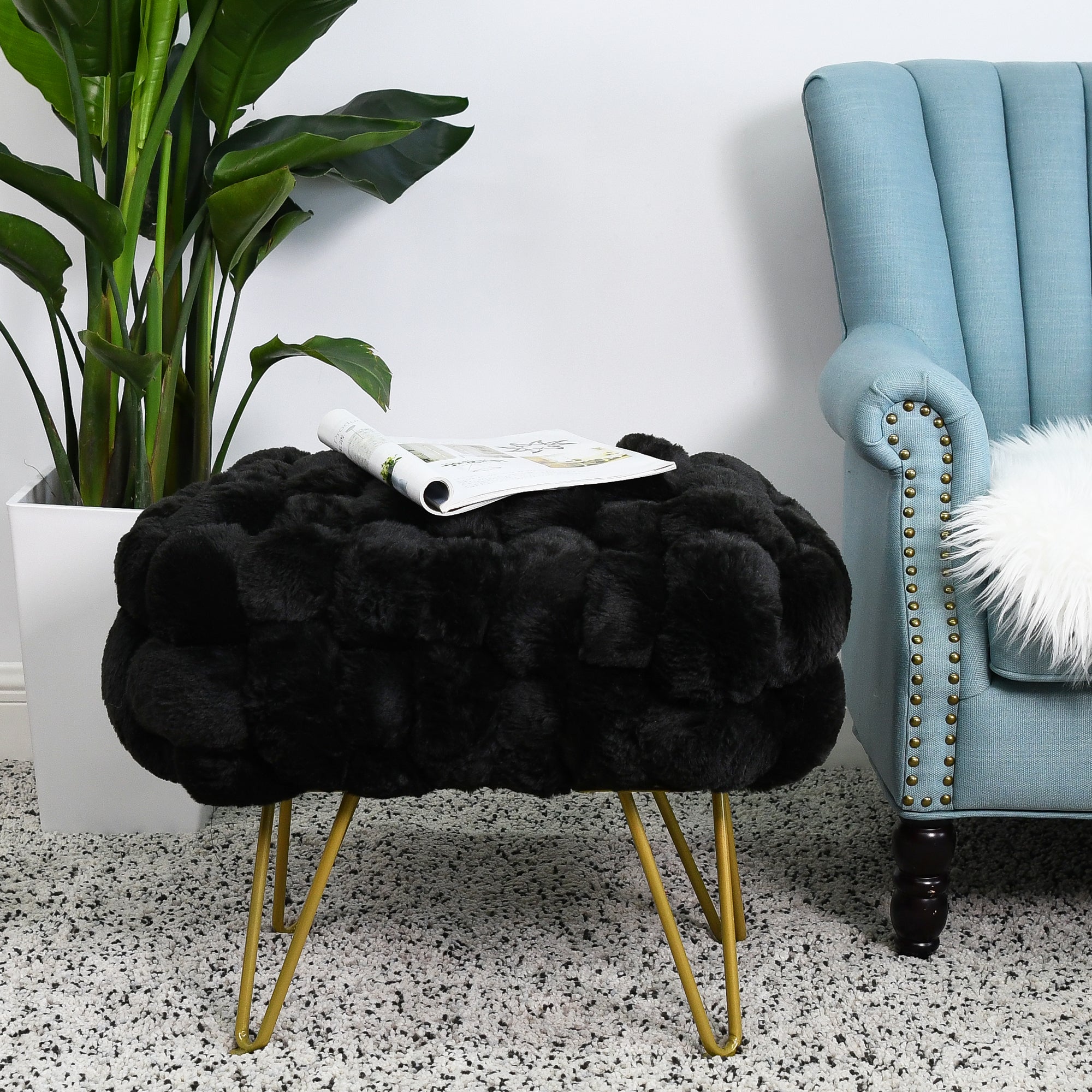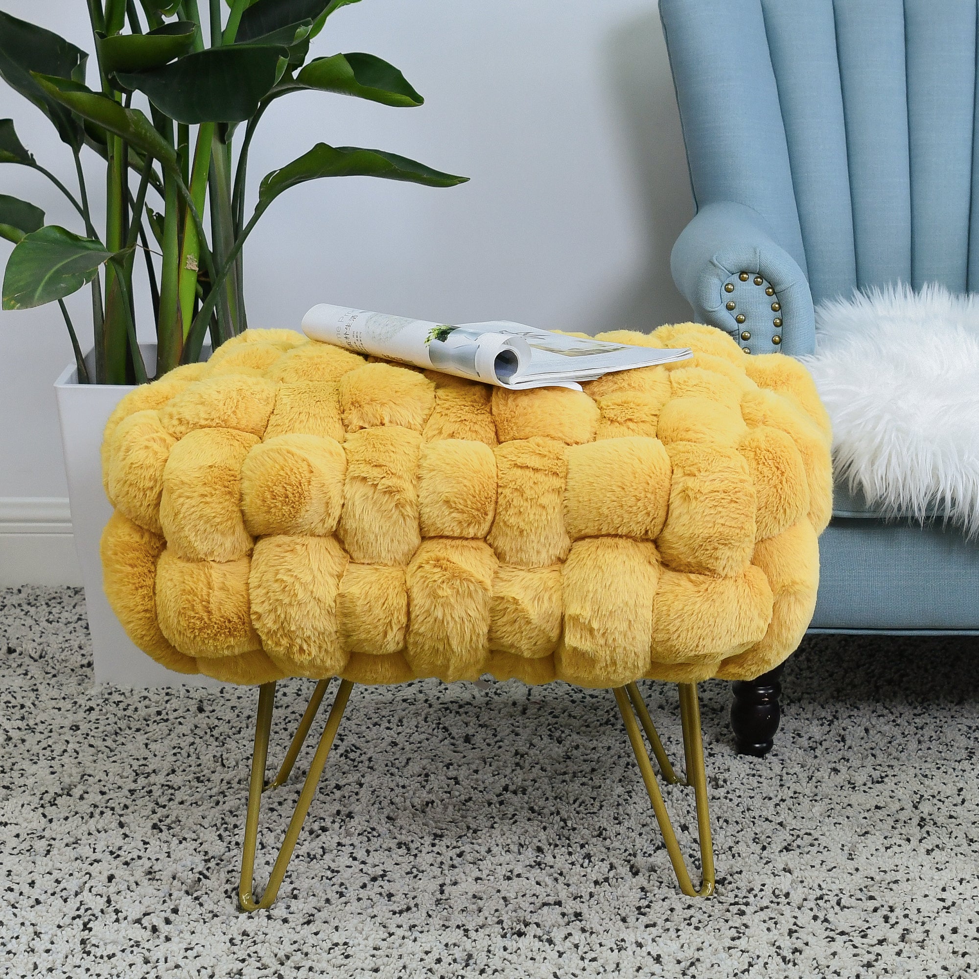 Faux Fur Pouf Stool (27" x 20" x 10")