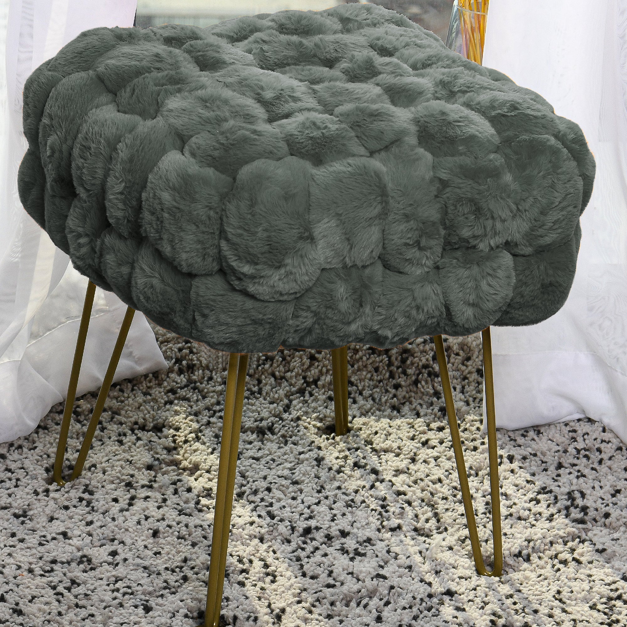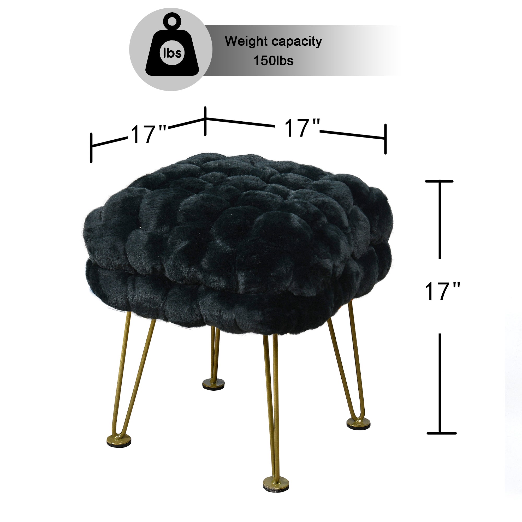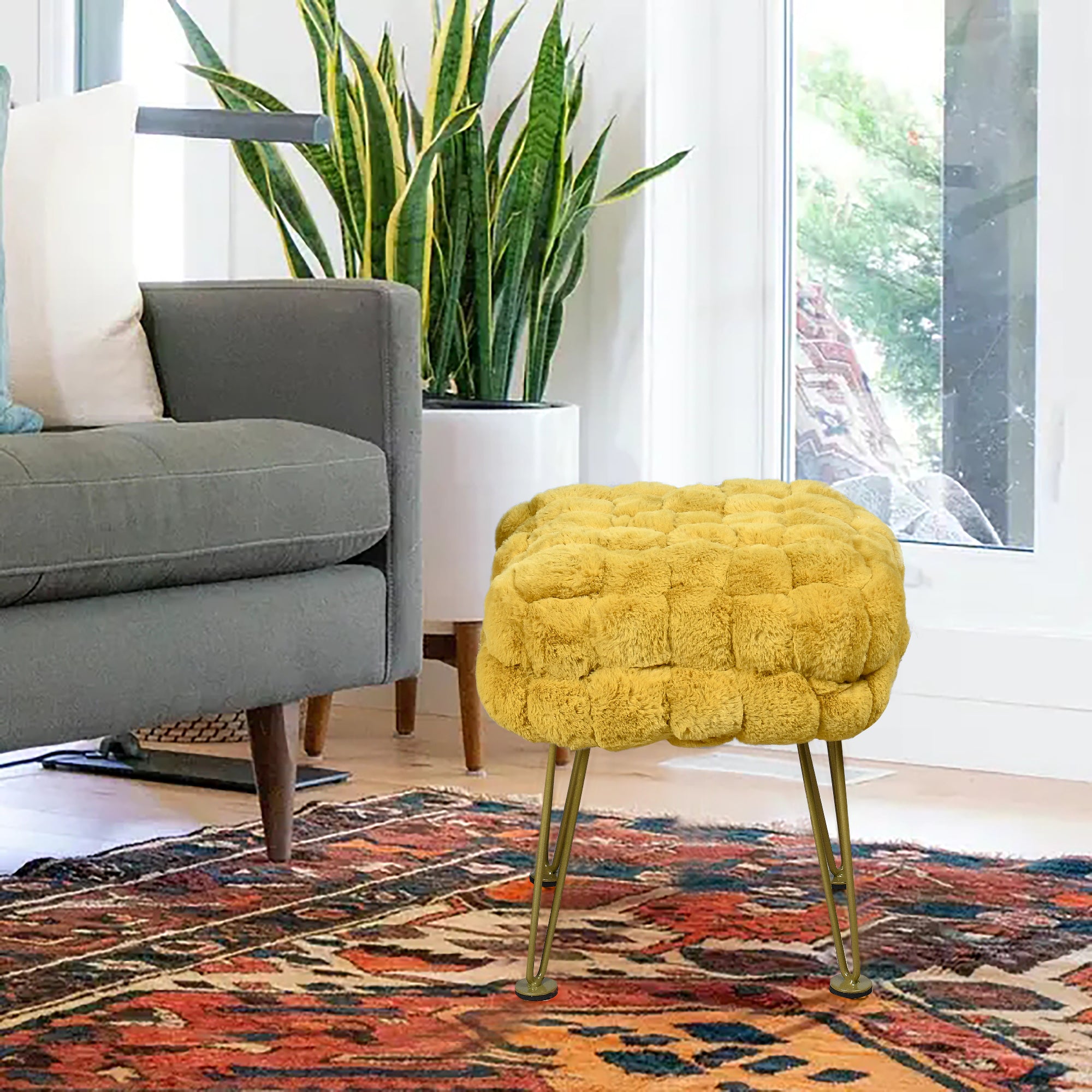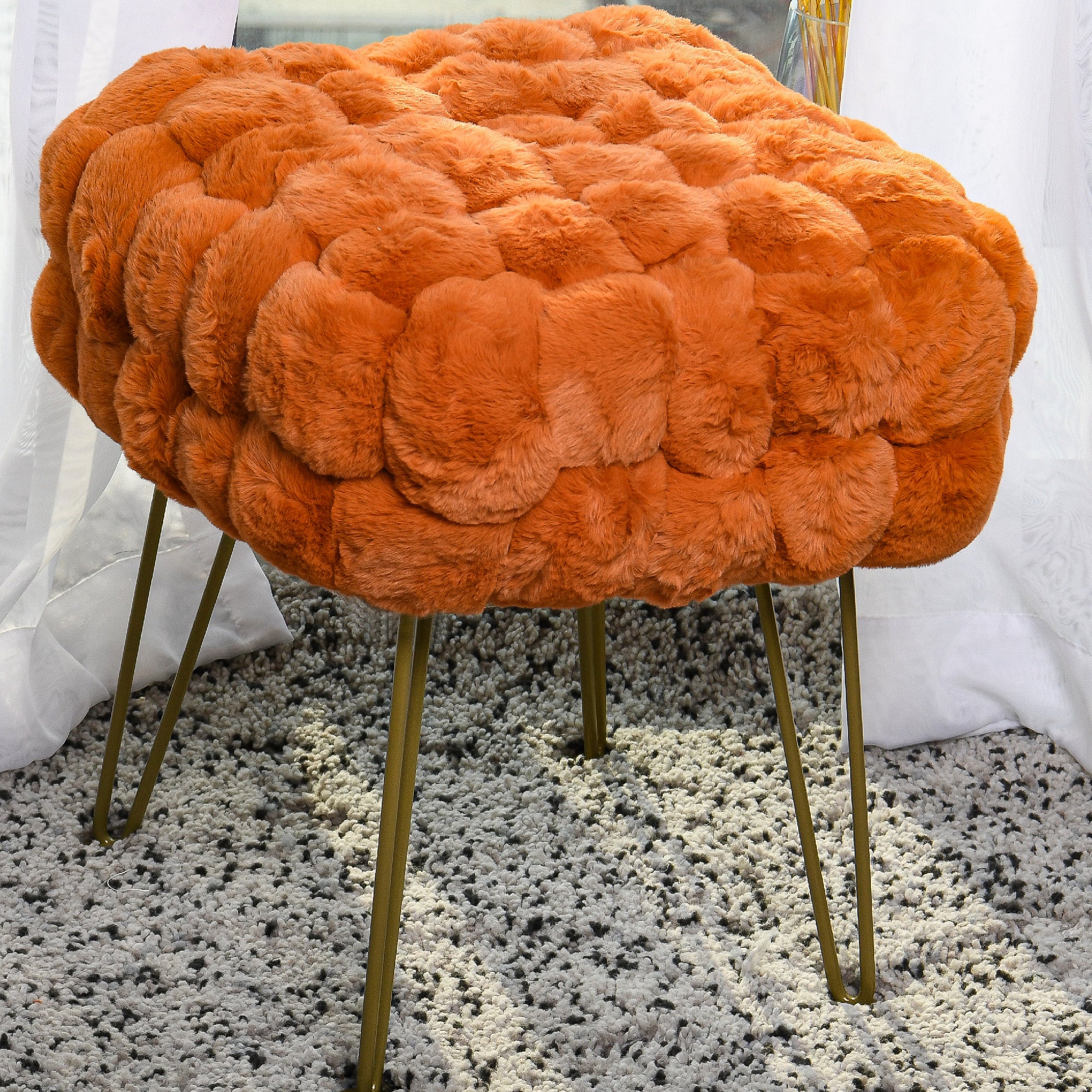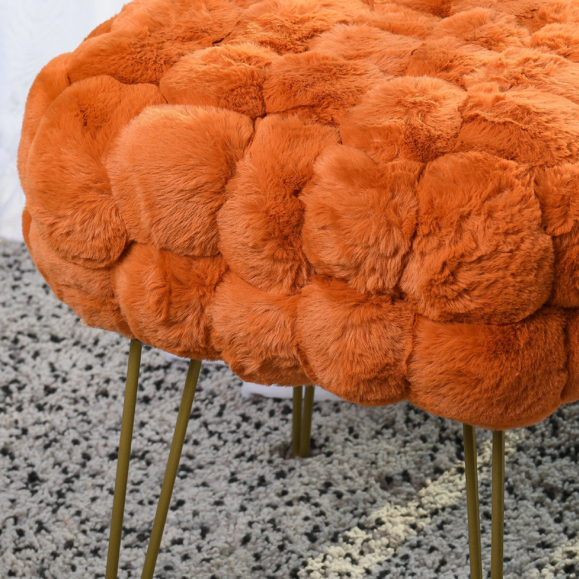 • This Fox Faux Fur Ottoman, featuring gold metal legs, provides the perfect balance of comfort and style. Its durable upholstery is designed to be both classic and long-lasting, while its small footprint makes it perfect for any living space.