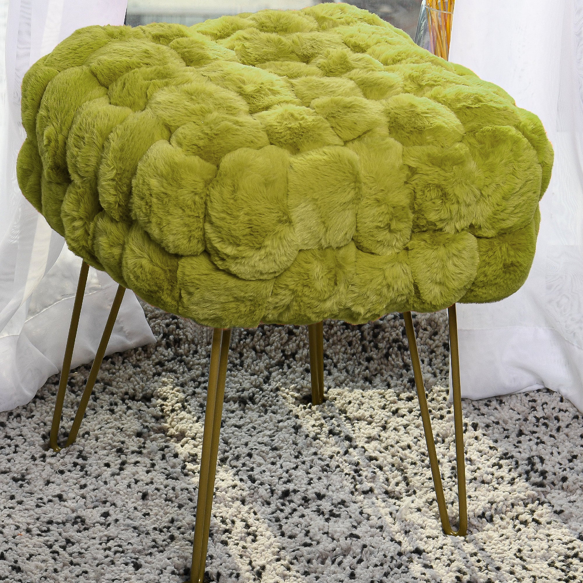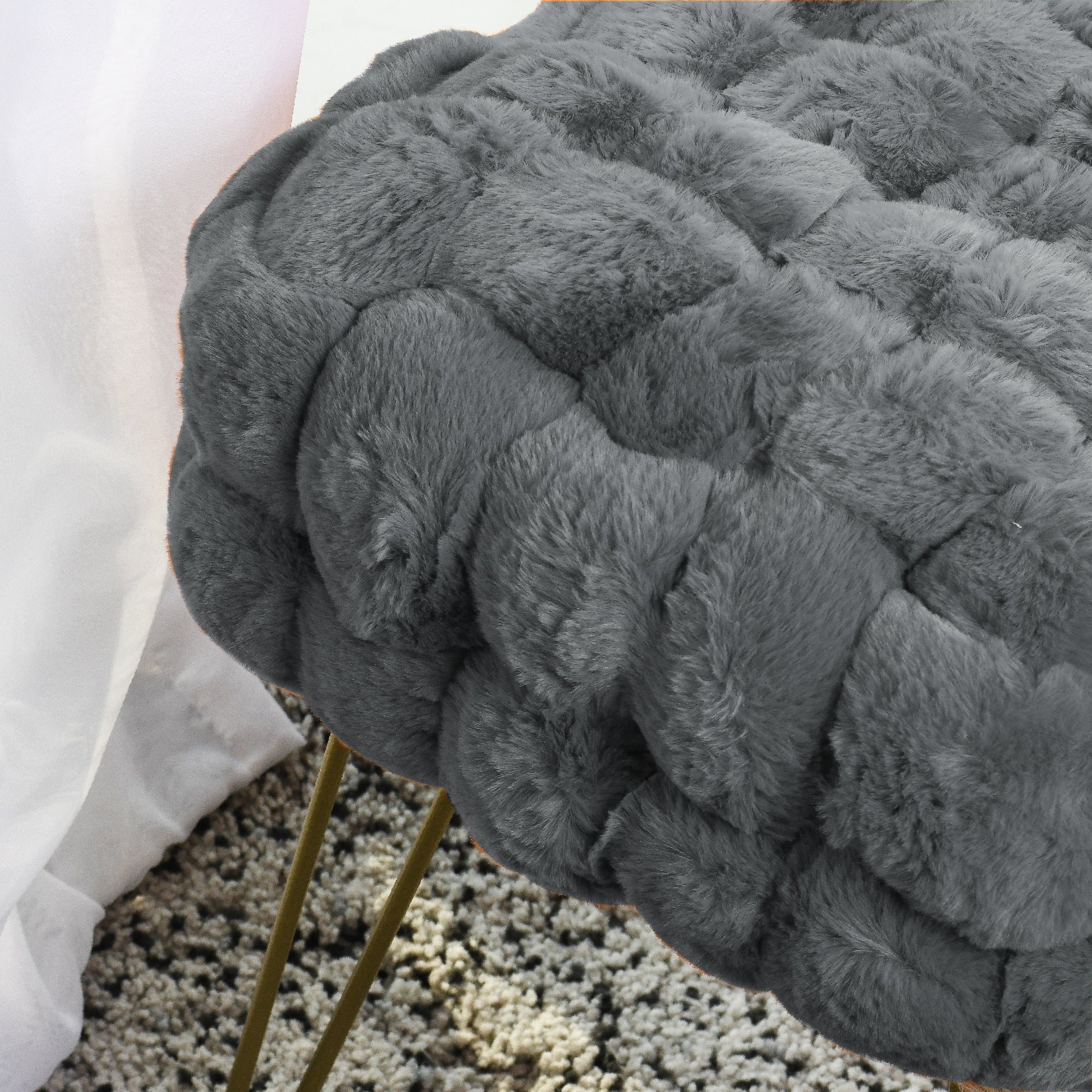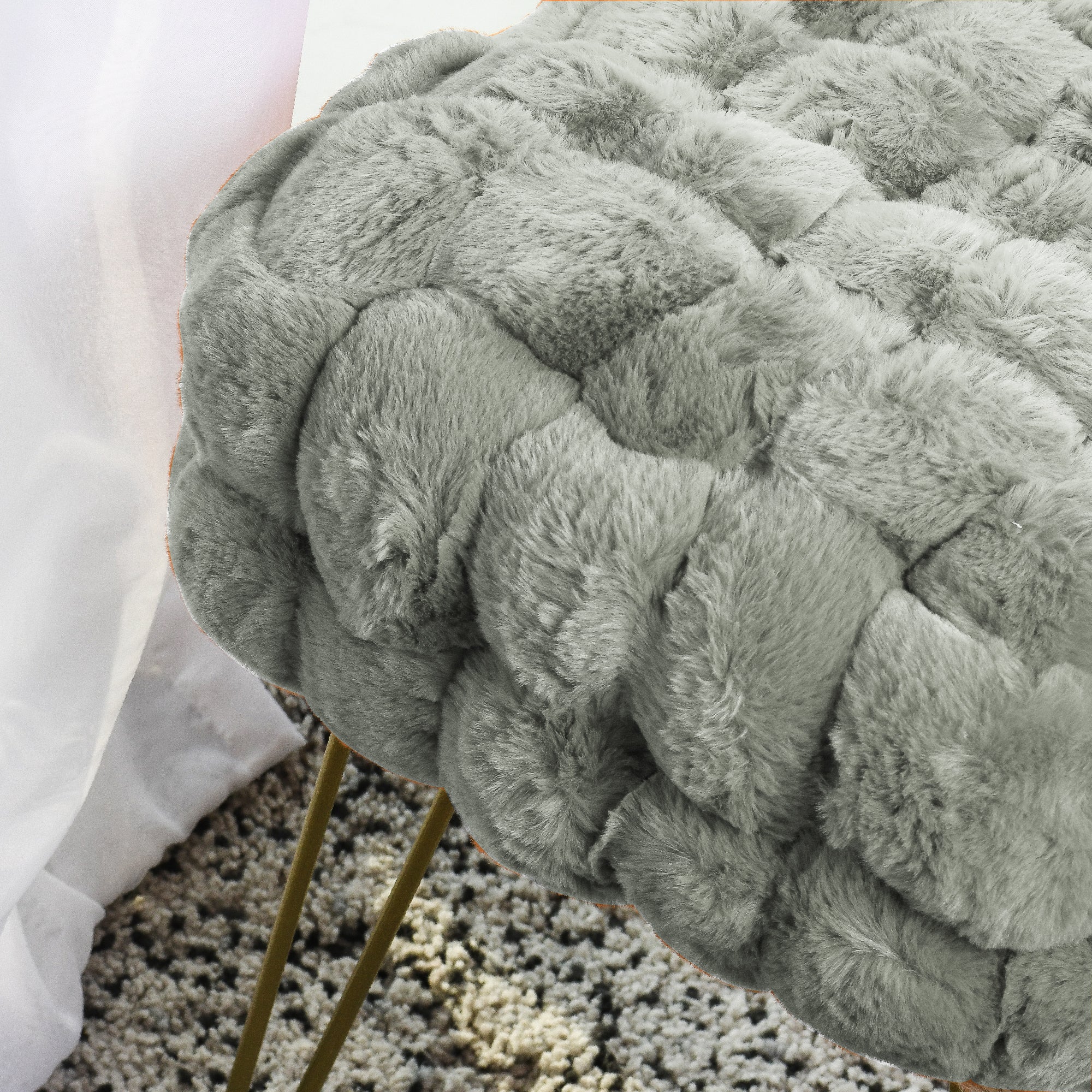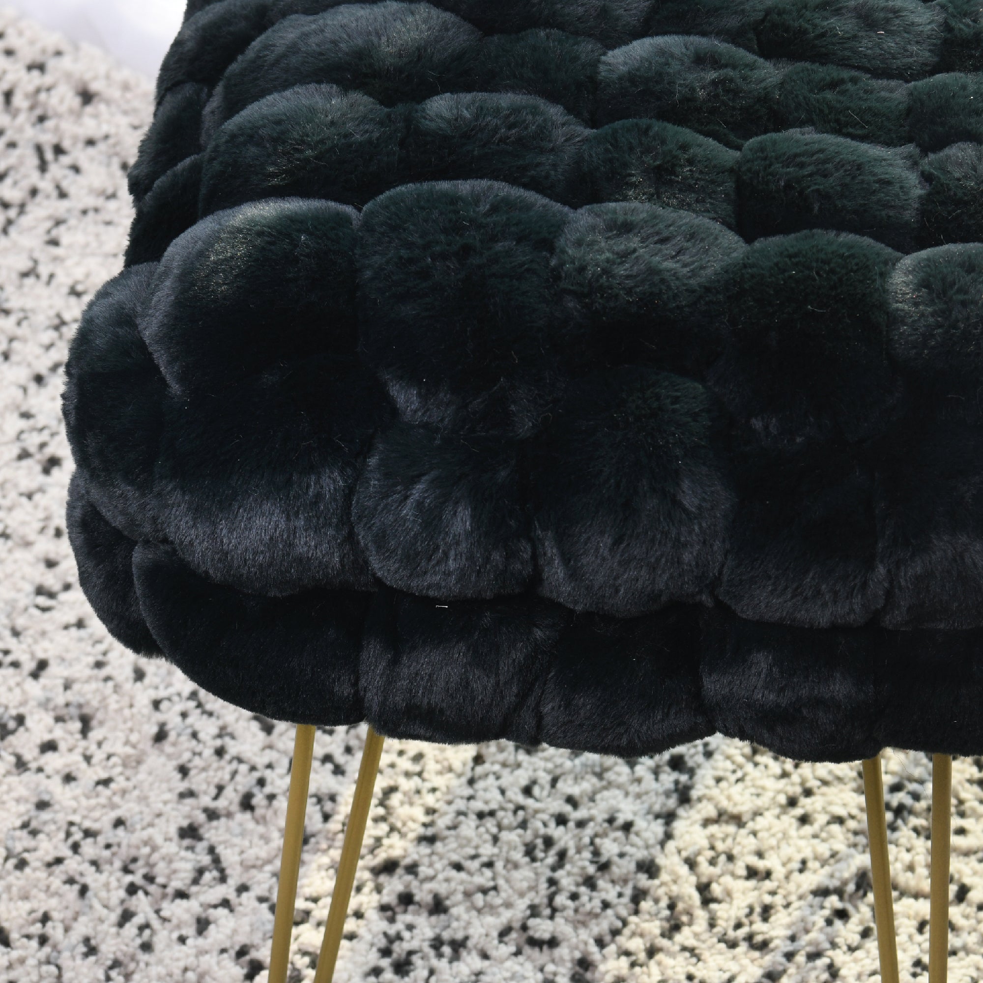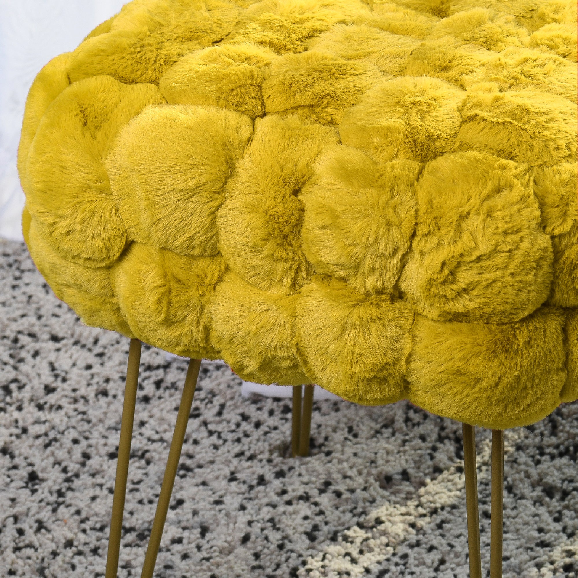• This Fox Faux Fur Ottoman, featuring gold metal legs, provides the perfect balance of comfort and style. Its durable upholstery is designed to be both classic and long-lasting, while its small footprint makes it perfect for any living space.