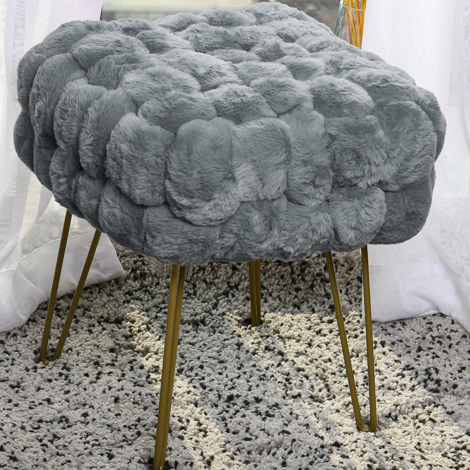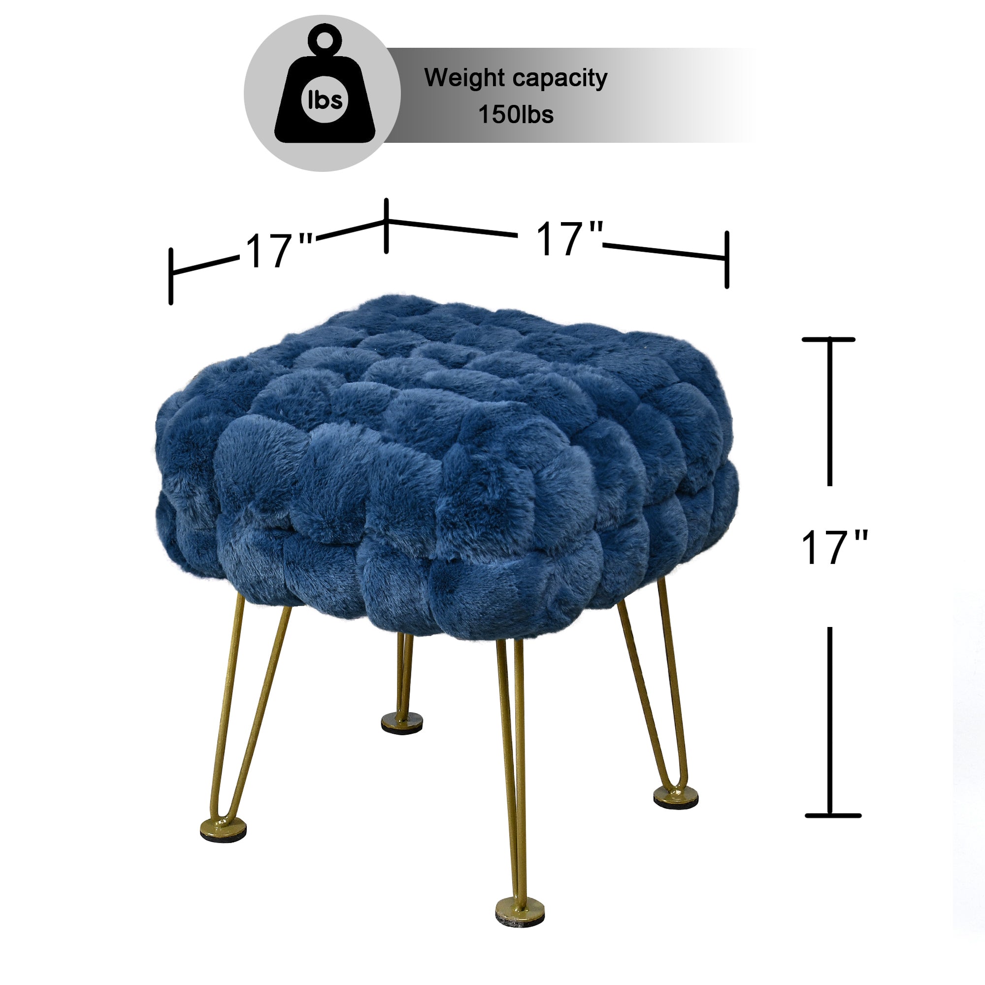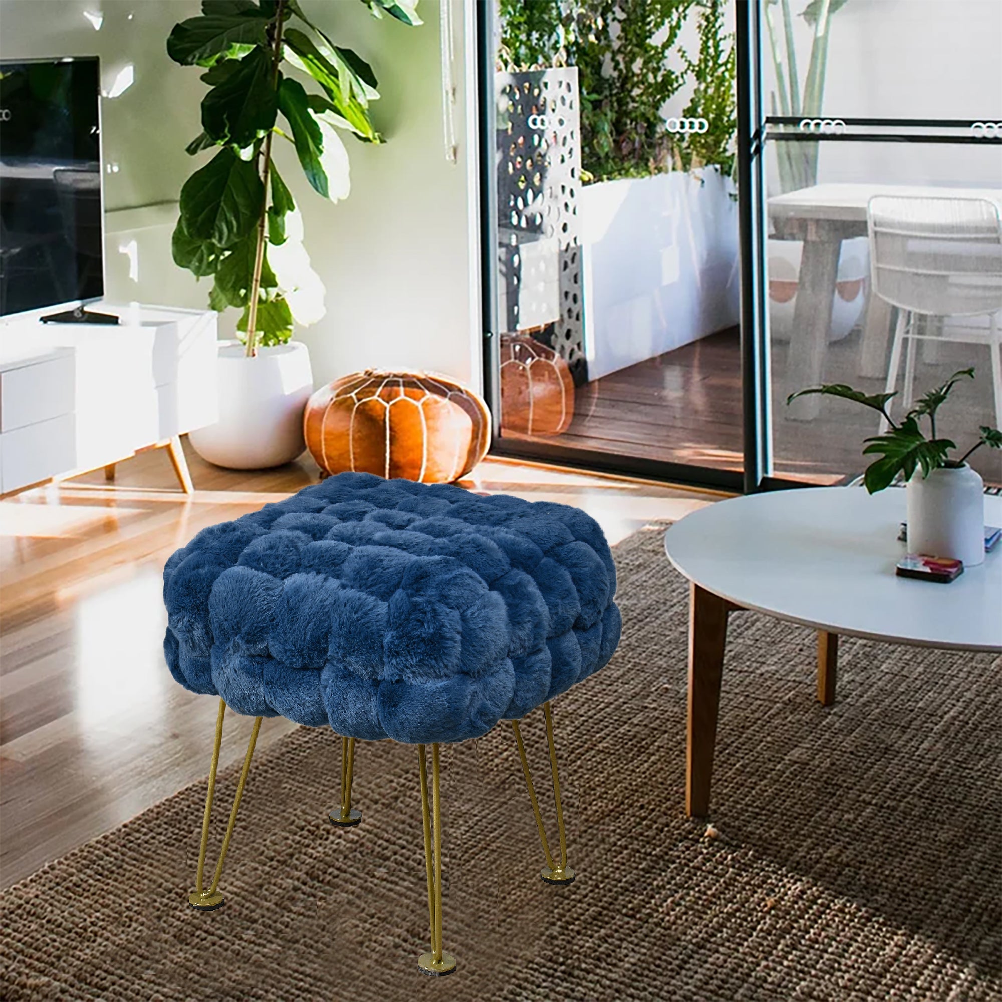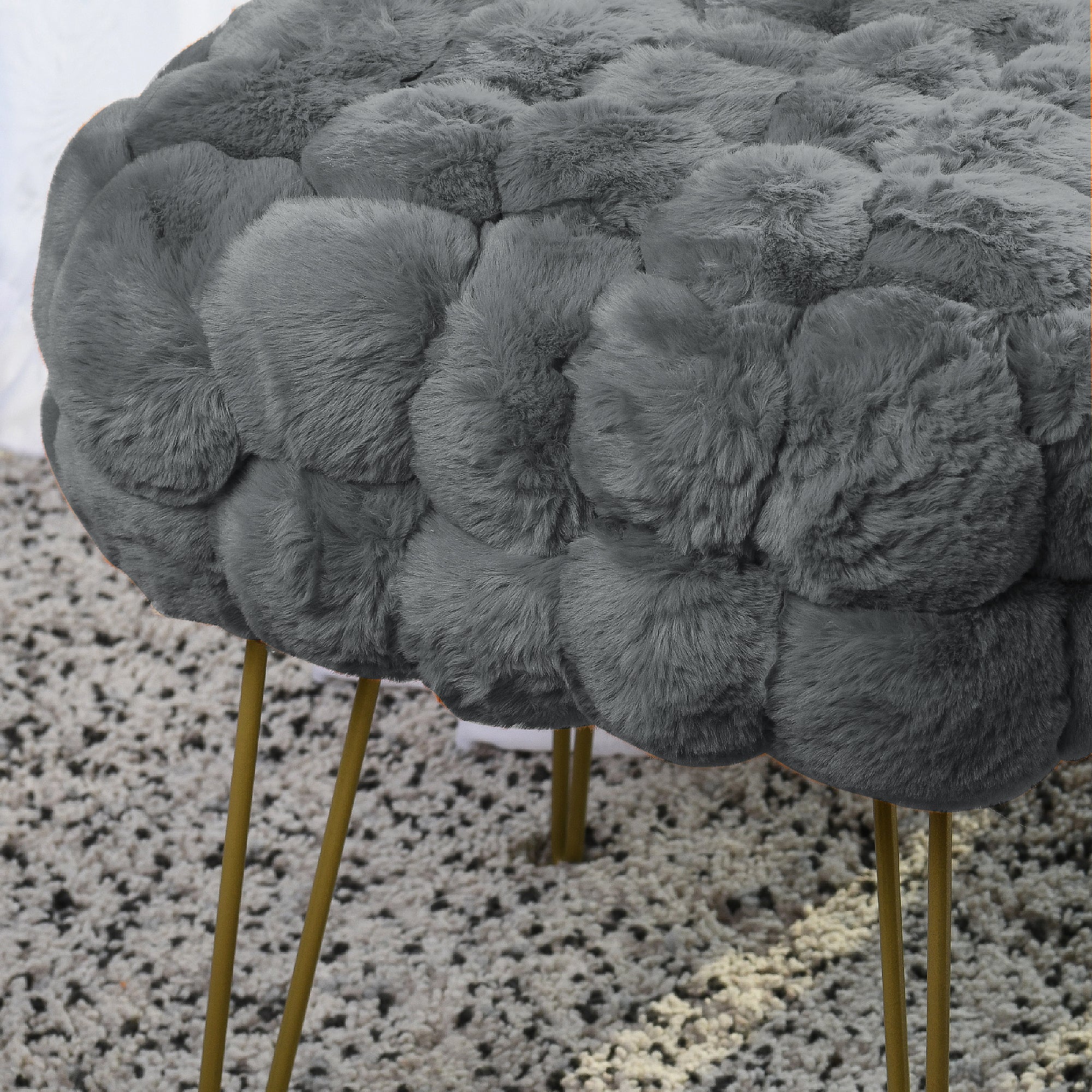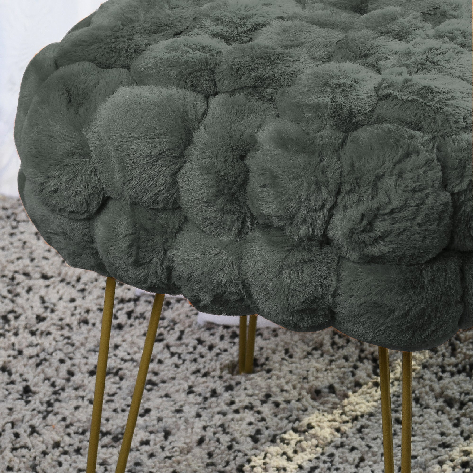 • This stylish ottoman provides a cozy, comfortable seat with its luxurious fauxfur upholstery. Its gold metal legs give the ottoman an elegant, dynamic look that is perfect for any room needing extra seating or a place to rest one's feet. Enjoy the plush, inviting feel of this accent piece.