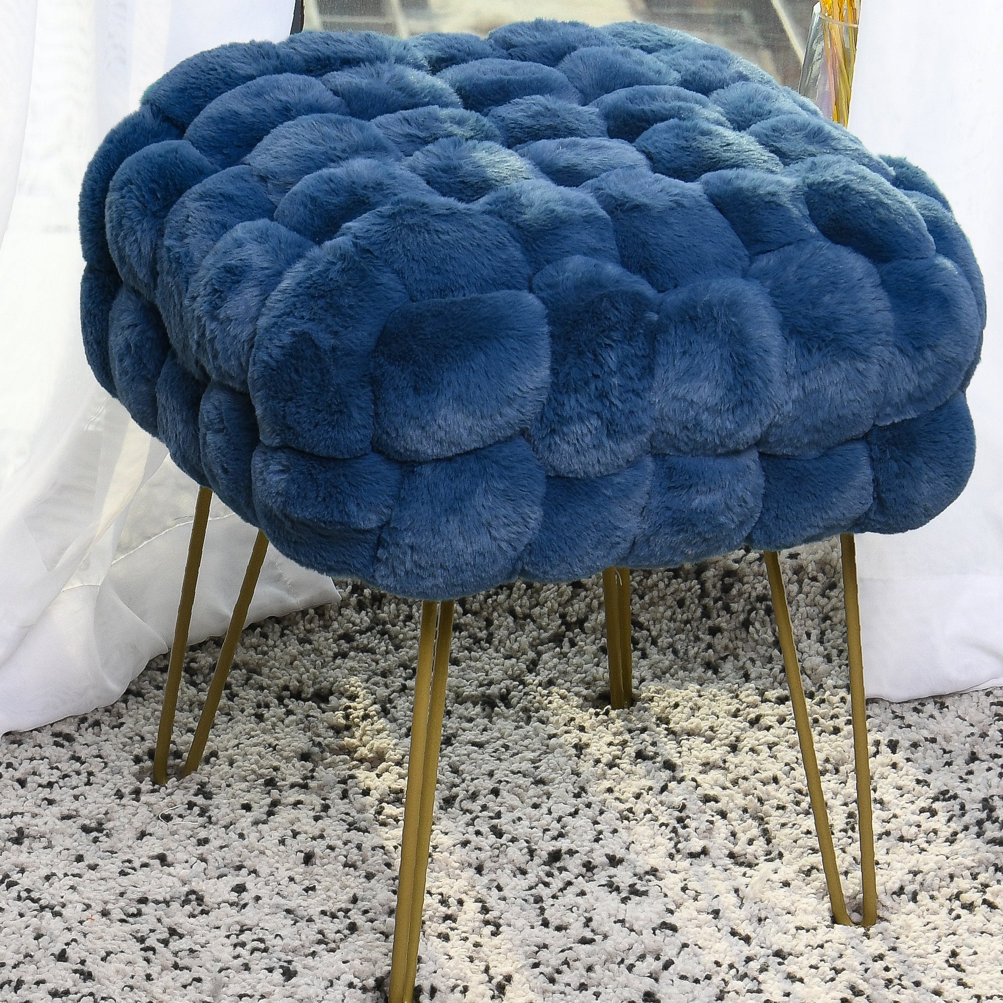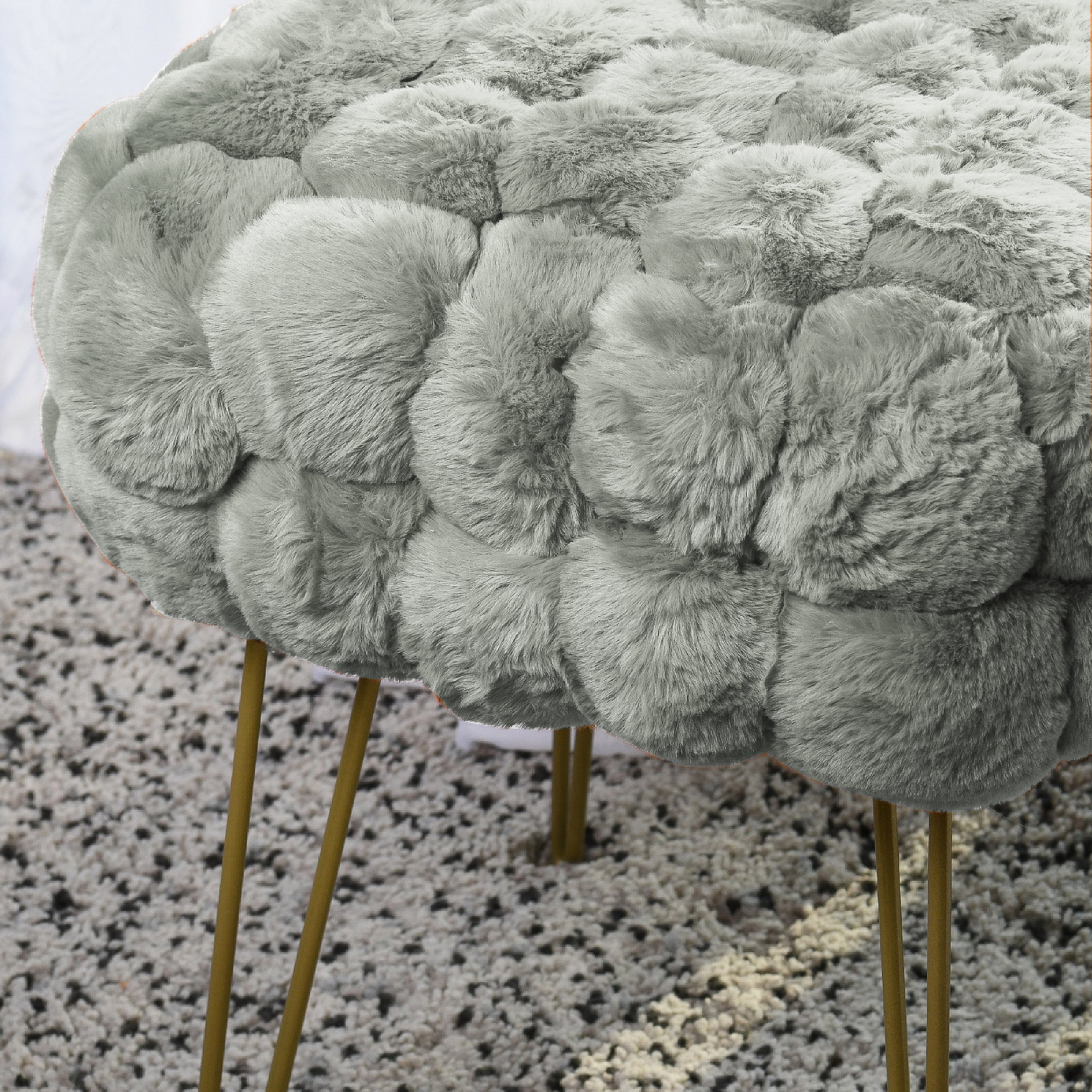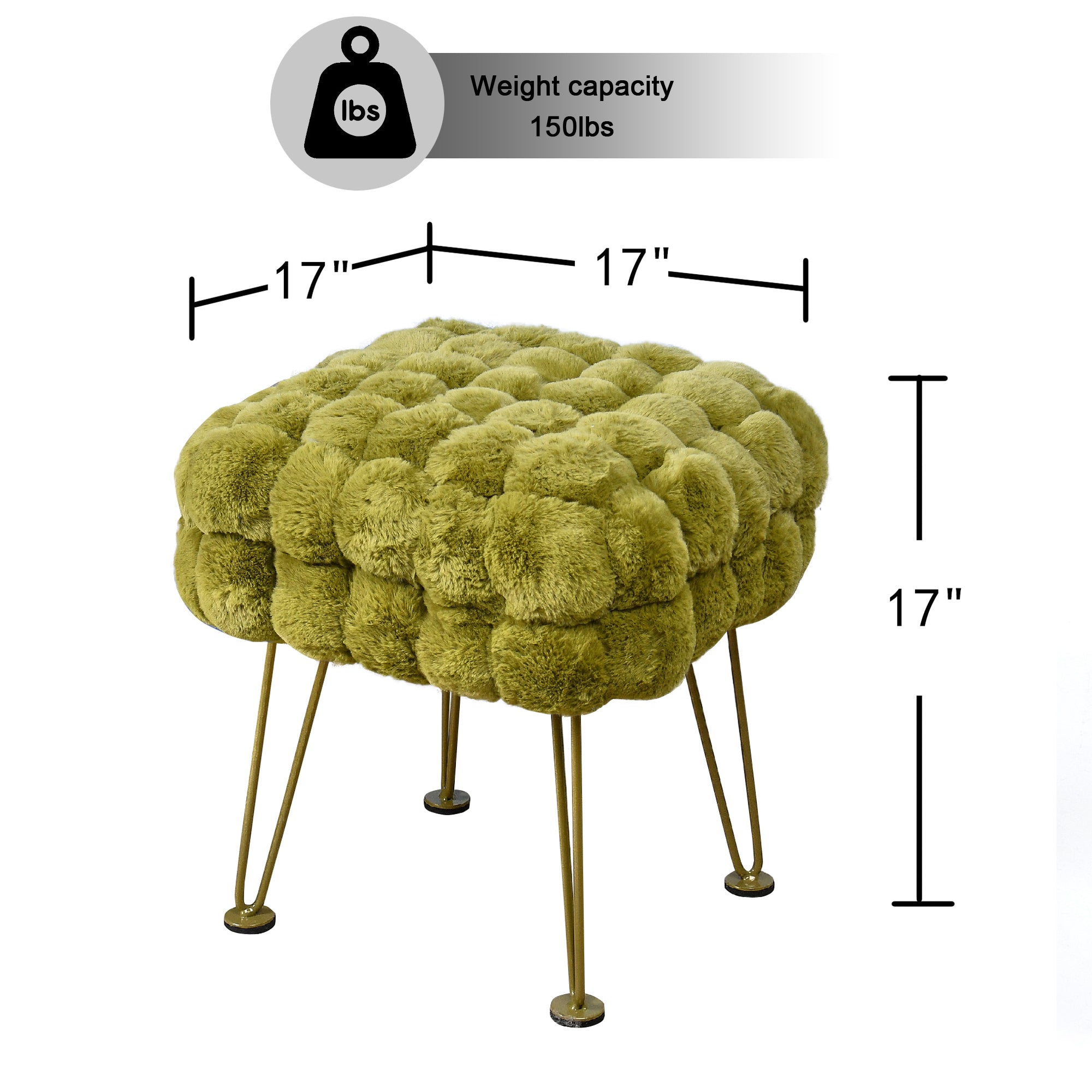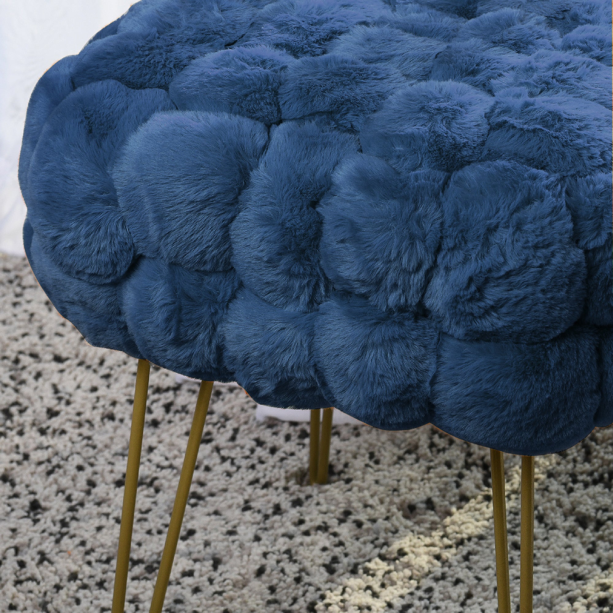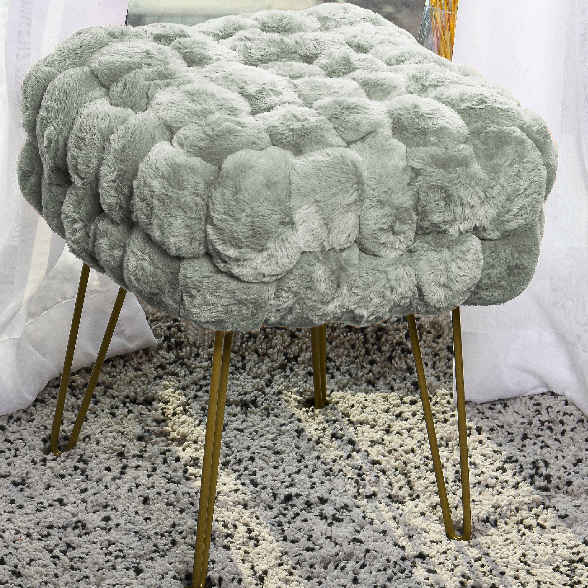 • This stylish ottoman provides a cozy, comfortable seat with its luxurious fauxfur upholstery. Its gold metal legs give the ottoman an elegant, dynamic look that is perfect for any room needing extra seating or a place to rest one's feet. Enjoy the plush, inviting feel of this accent piece.