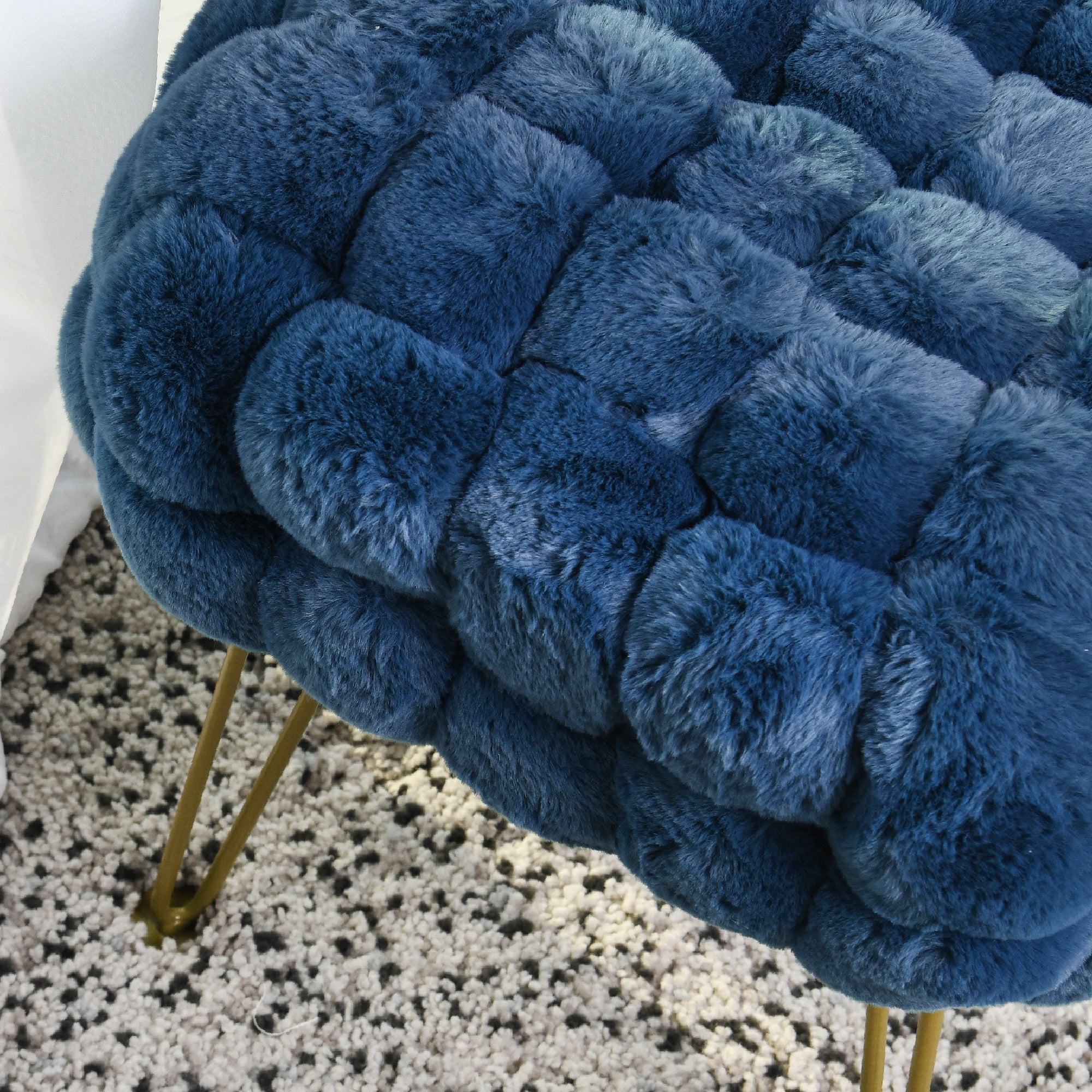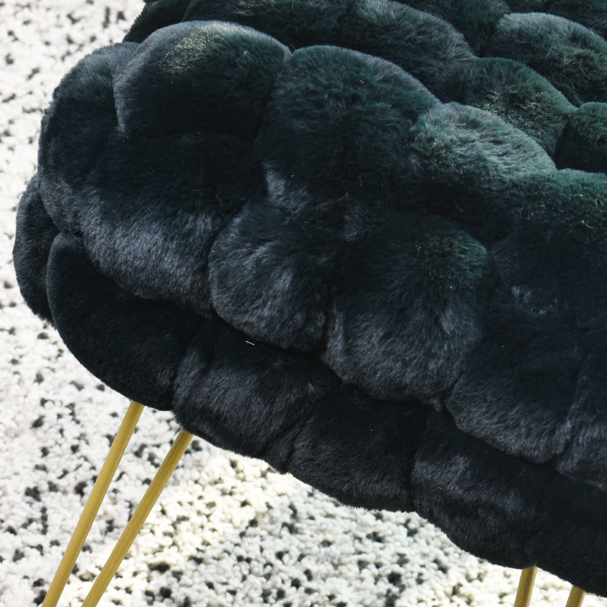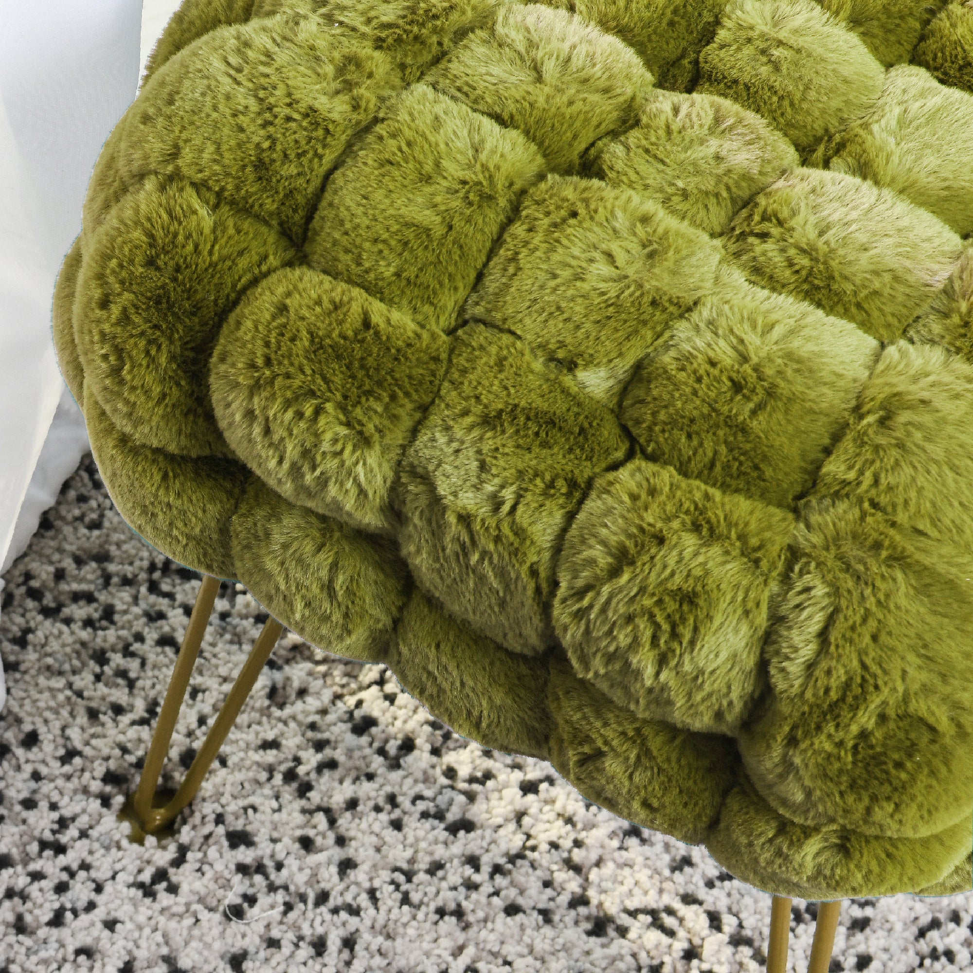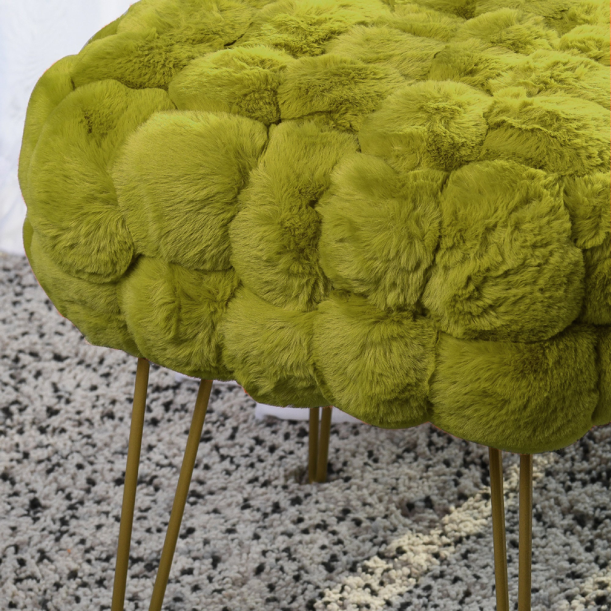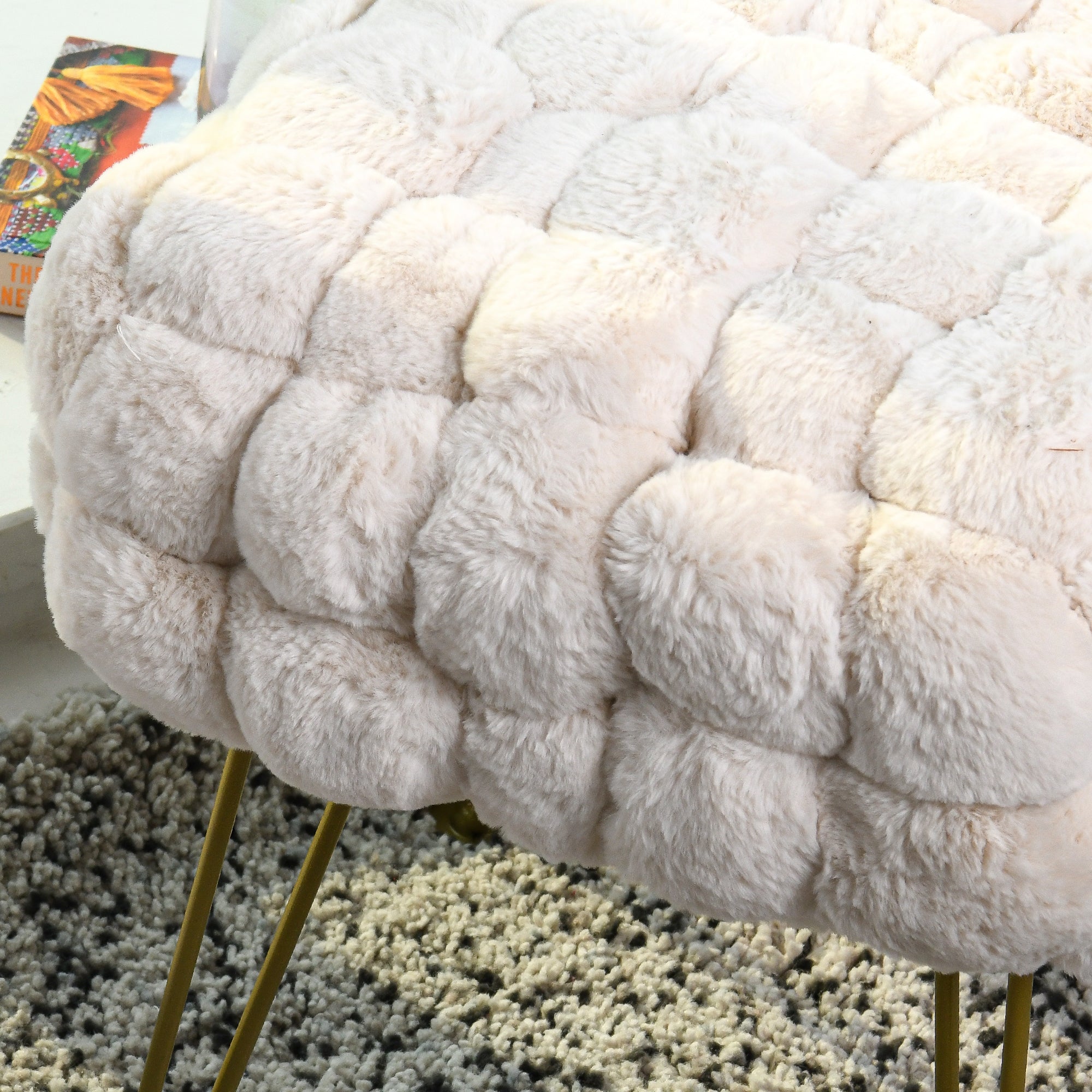 • This stylish ottoman provides a cozy, comfortable seat with its luxurious fauxfur upholstery. Its gold metal legs give the ottoman an elegant, dynamic look that is perfect for any room needing extra seating or a place to rest one's feet. Enjoy the plush, inviting feel of this accent piece.