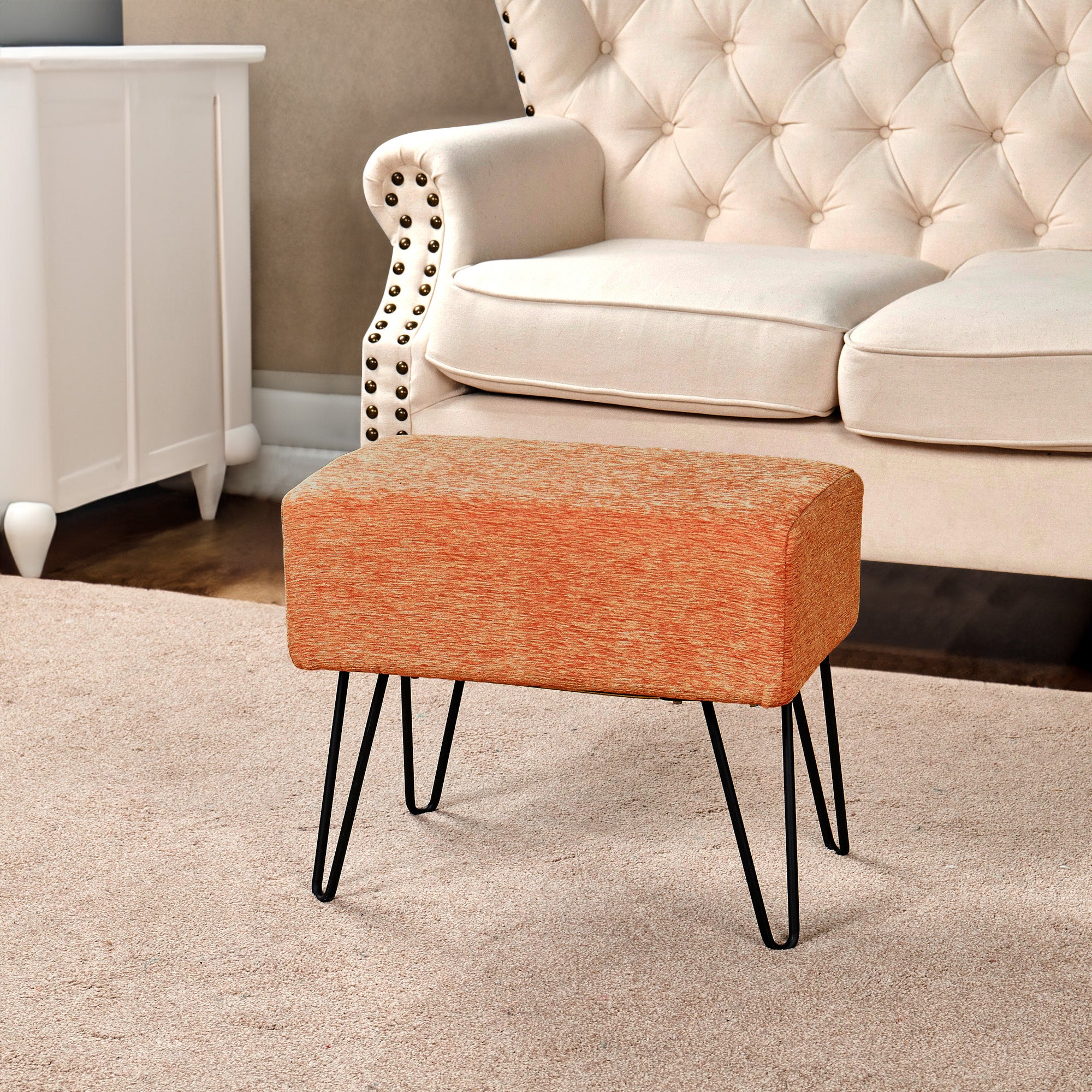 • Versatile Placement: Perfect for the bedroom, living room, dressing room, or office, this ottoman serves as a stylish stool or a footrest. Its height is ideal for pairing with your sofa or chair, adding both comfort and function.