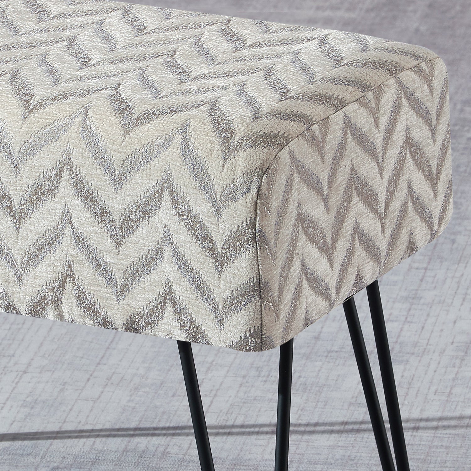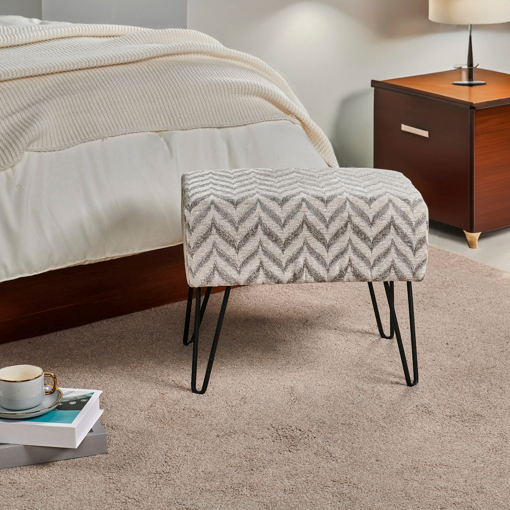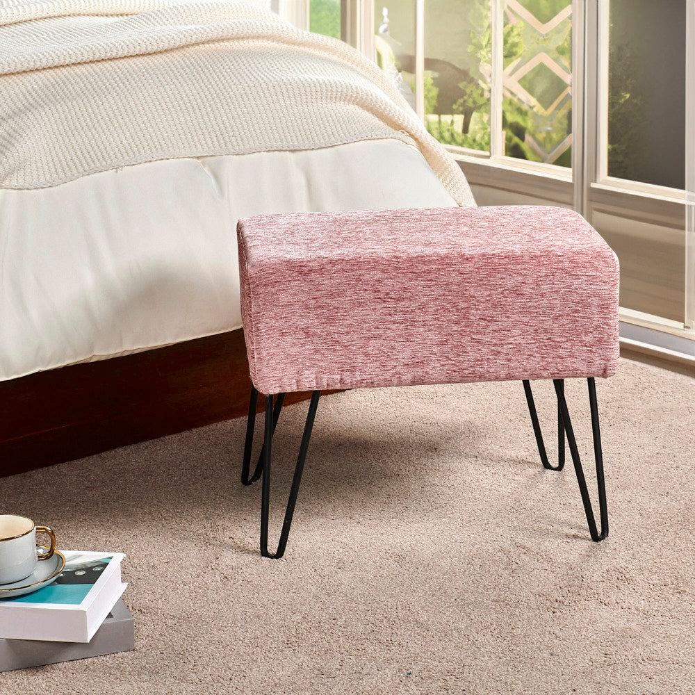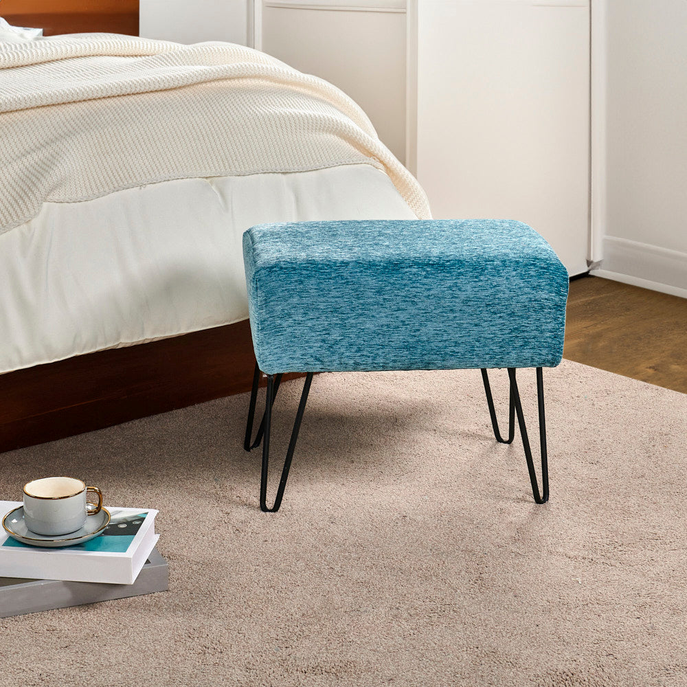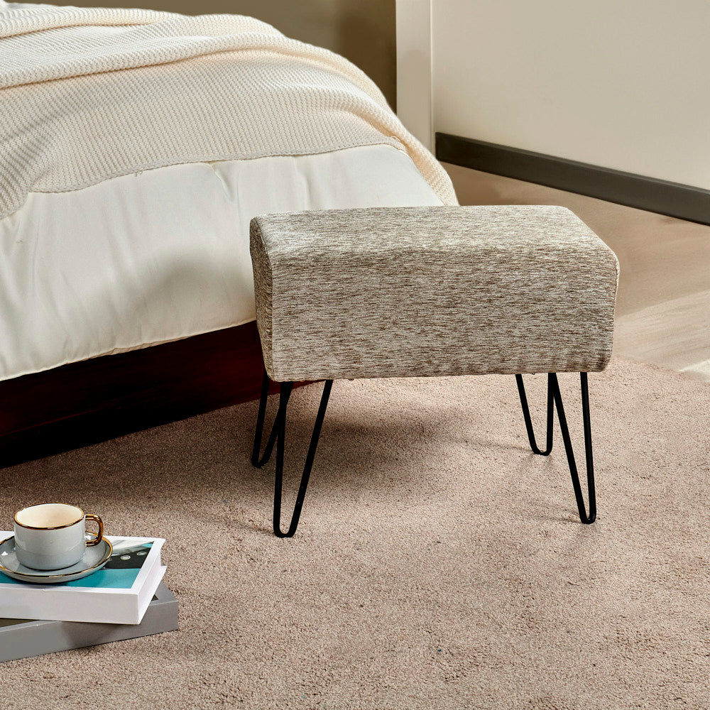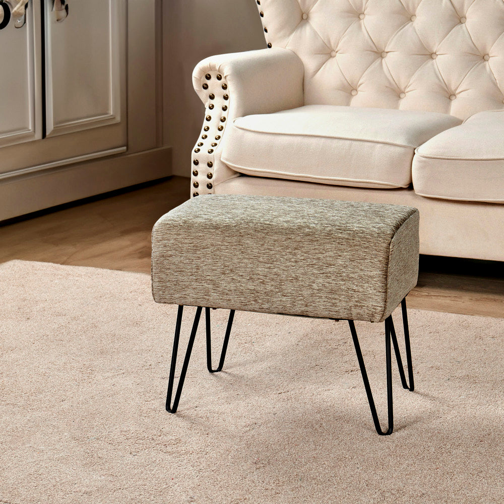 • Easy Assembly: Simply screw the metal hairpin legs into each corner of the ottoman using the provided screws. The hairpin legs and screws are conveniently stored in a hidden zipper compartment under the seat.
