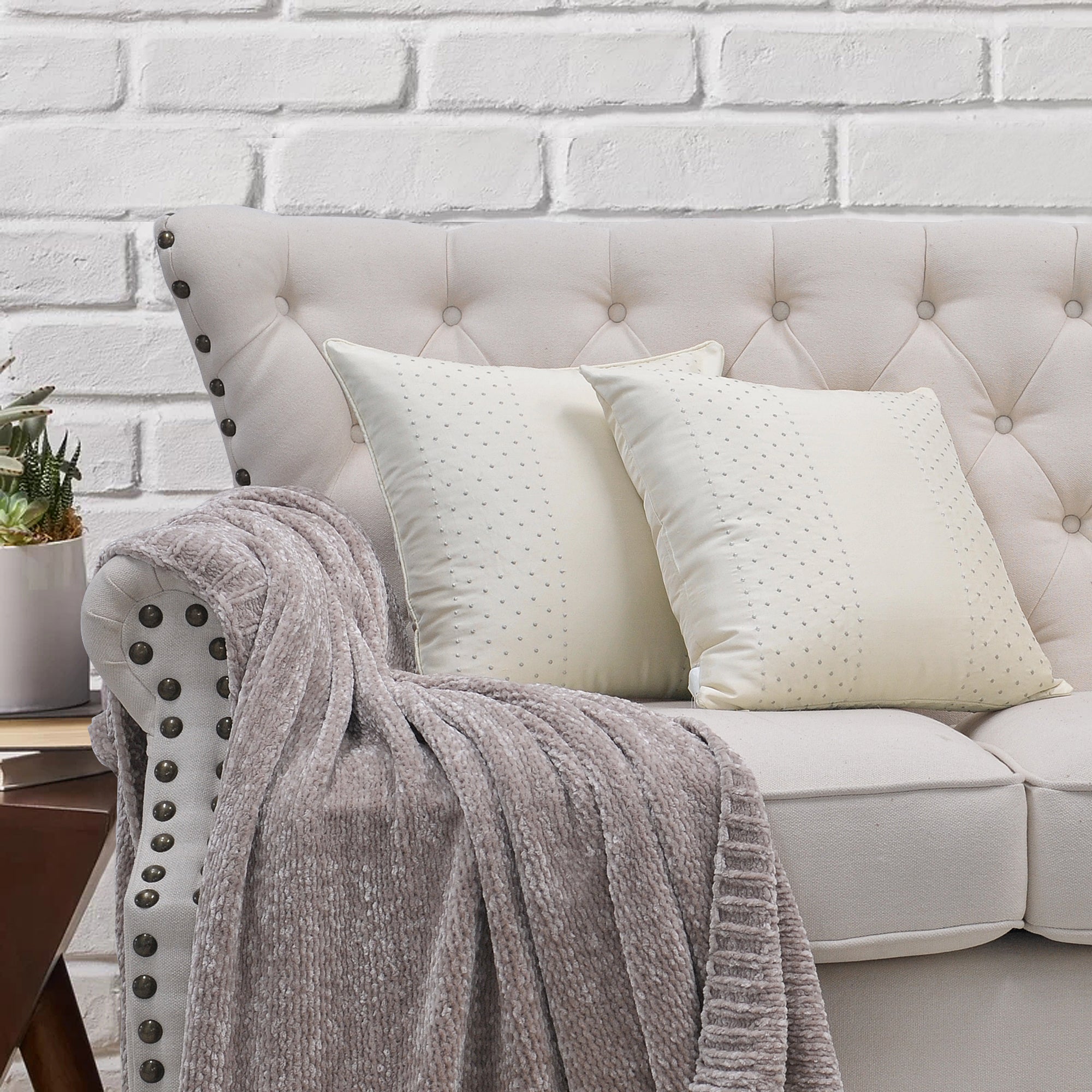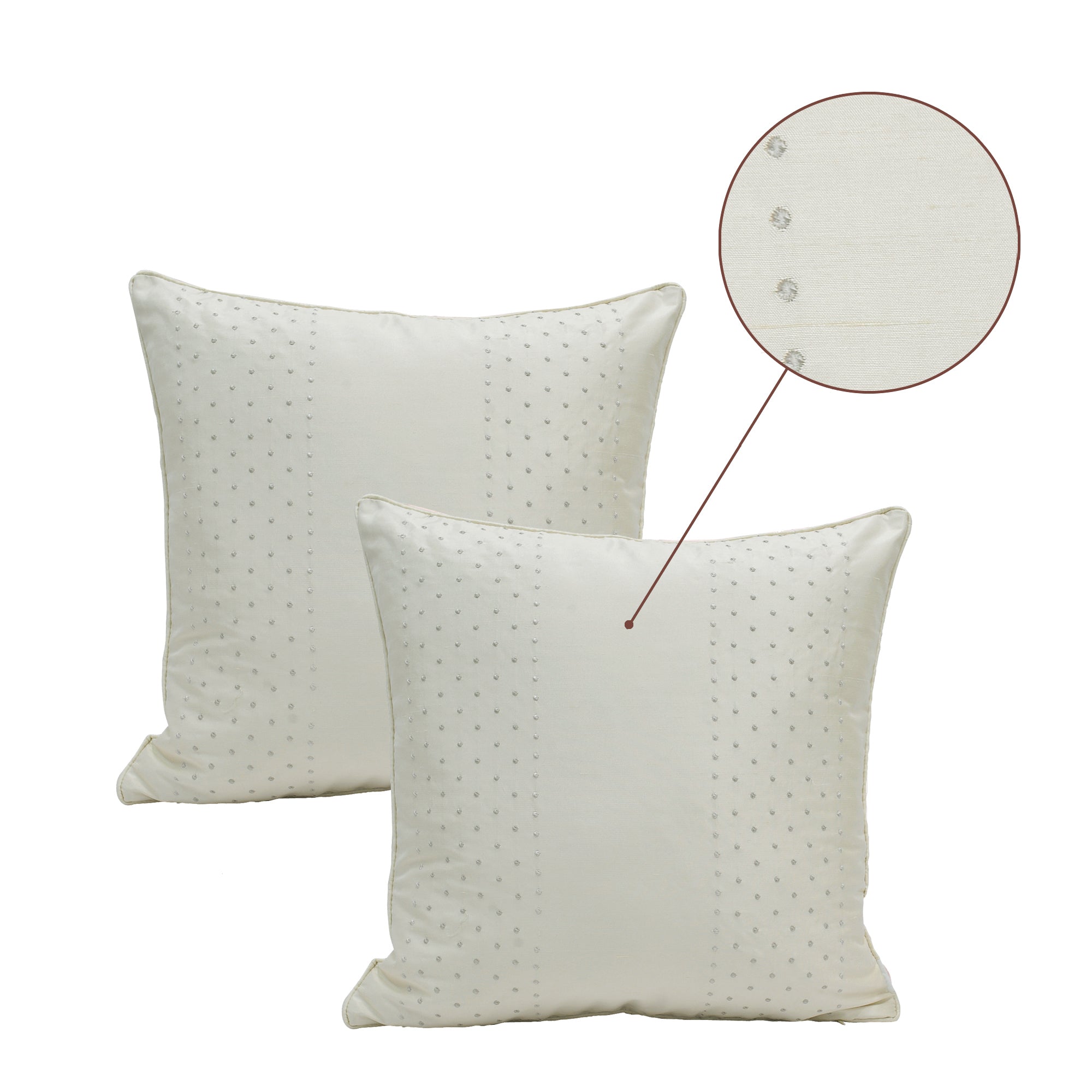 Marquesa Dots Embroidery Silk Filled 2 Piece Decorative Pillow Covers (18" x 18")