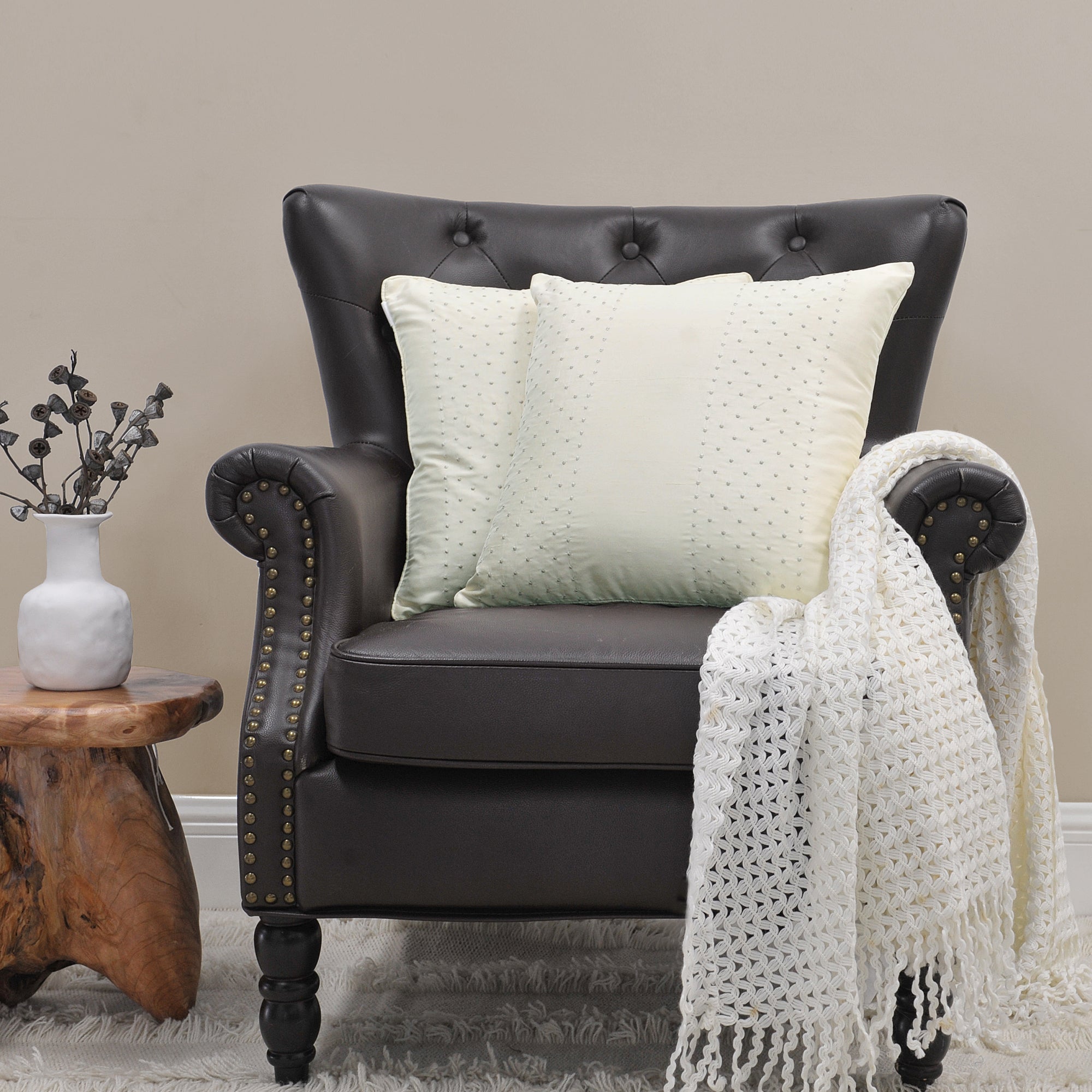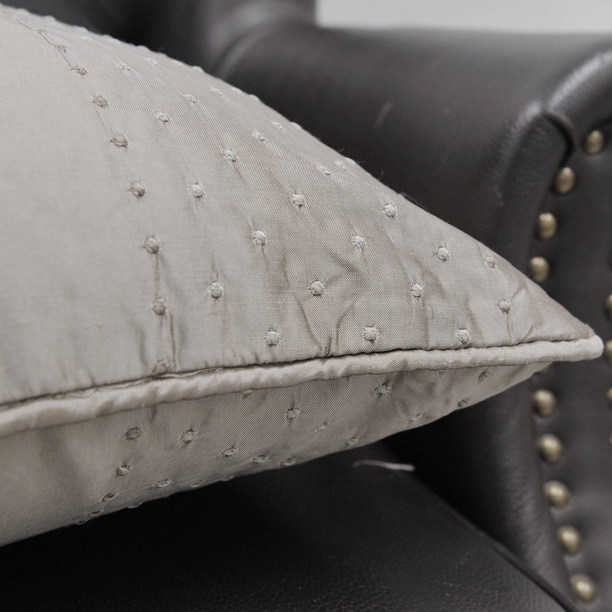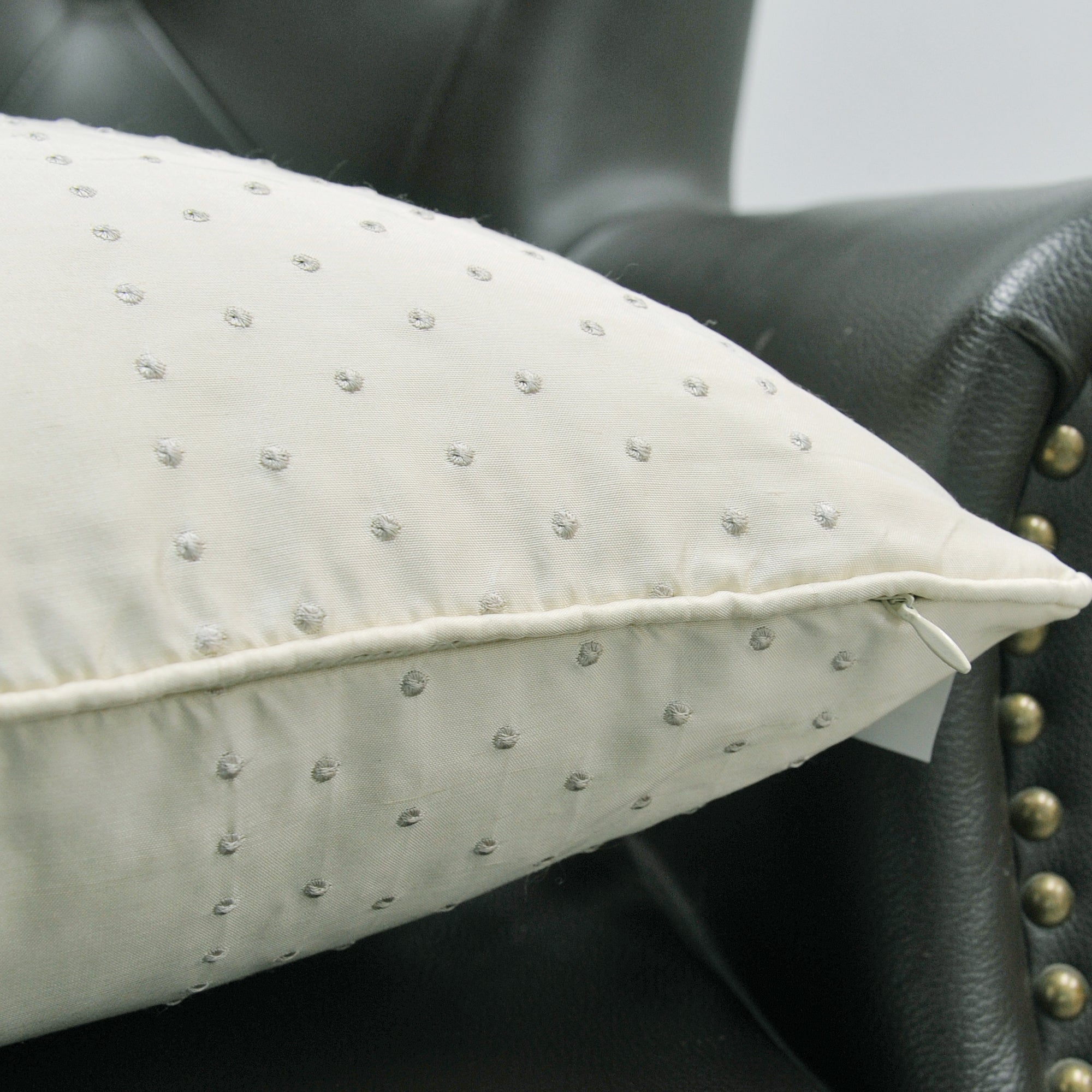 • TOP QUALITY FABRIC! Enhanced breathability and durability, woven silk offers beauty benefits. Since silk is not a manmade product, it is entirely natural therefore is considered hypoallergenic and friendly to human skin. Hair also glides on silk rather rubbing preventing binding or catching the way manmade fabrics can. Piping finish all the way around with same embroidered dot design on each side. Pillow Shell: 80% Silk 20%