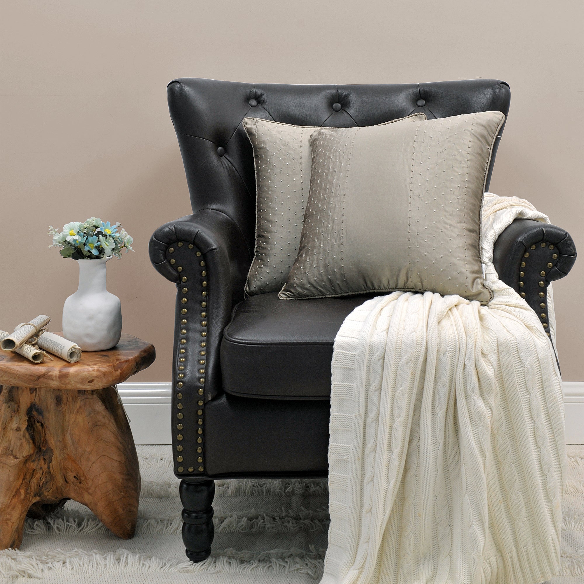 • SHIMMERING SILK COLORS! Pillows are offered in Pewter (Stone), Ivory, Blue, Gold, Pink OR Coffee. Each pillow measures 18” x 18” and comes as a set of 2 Pillows.